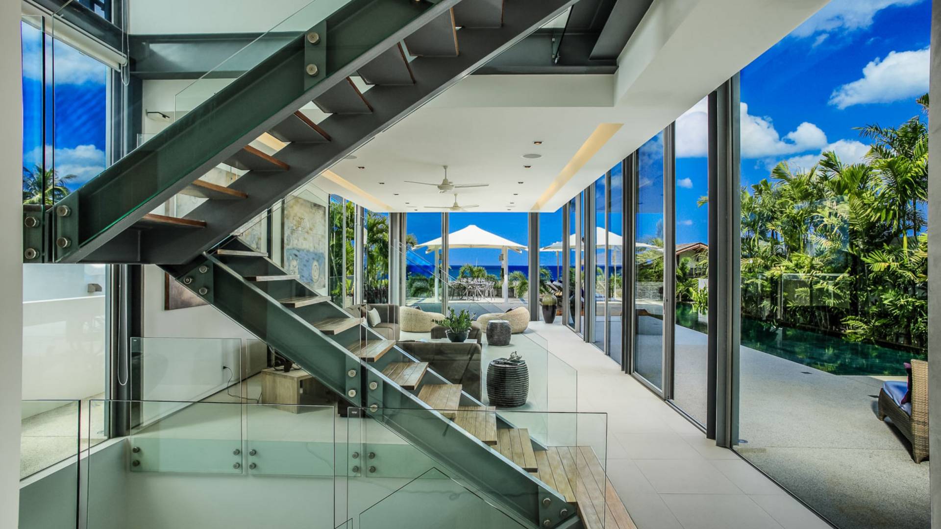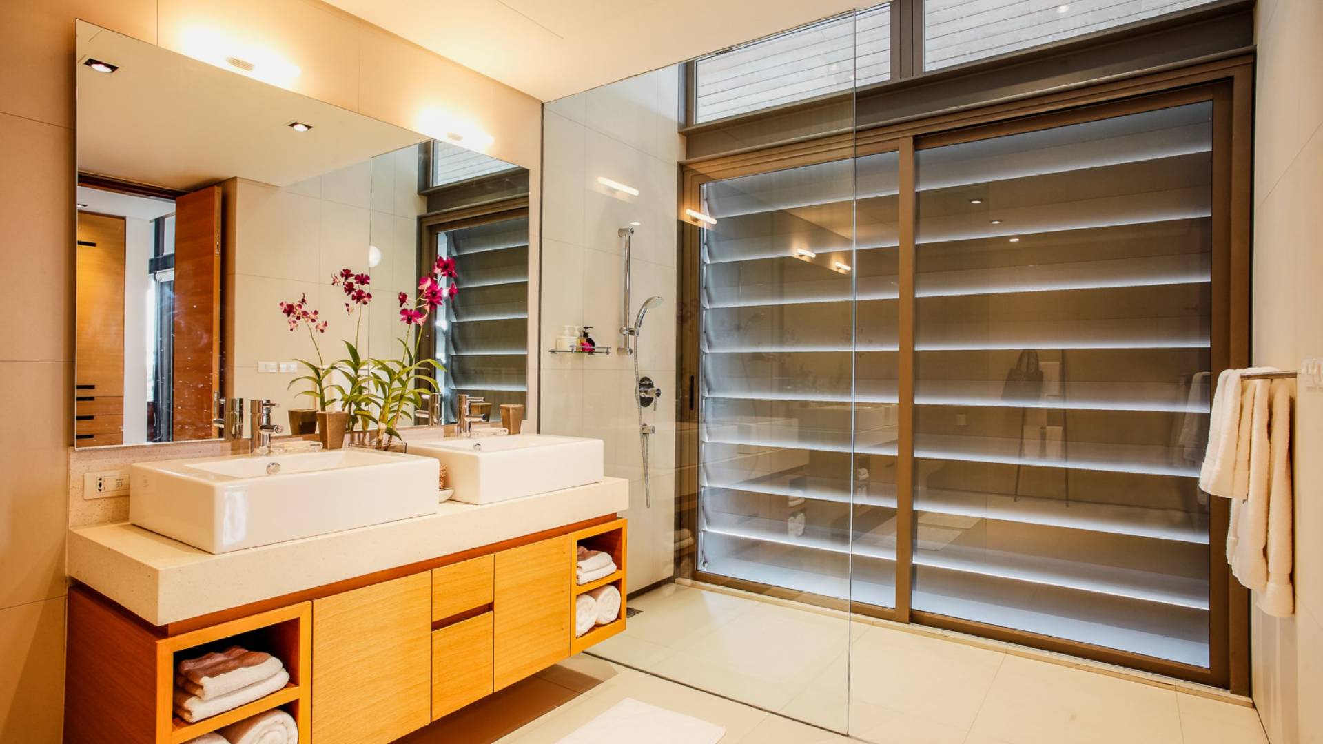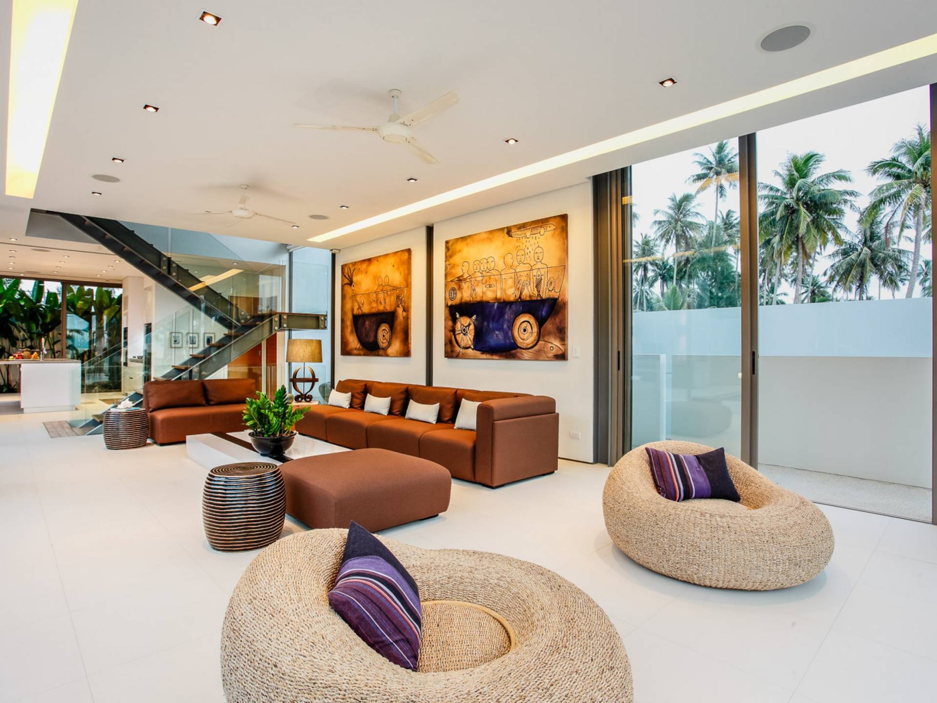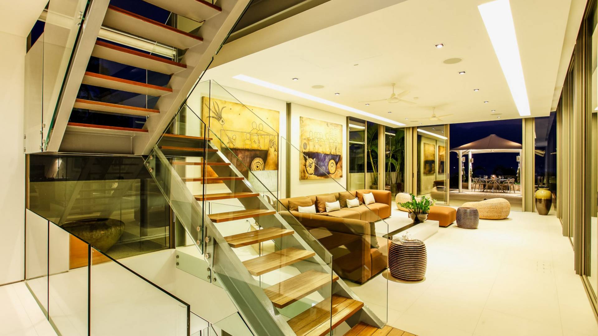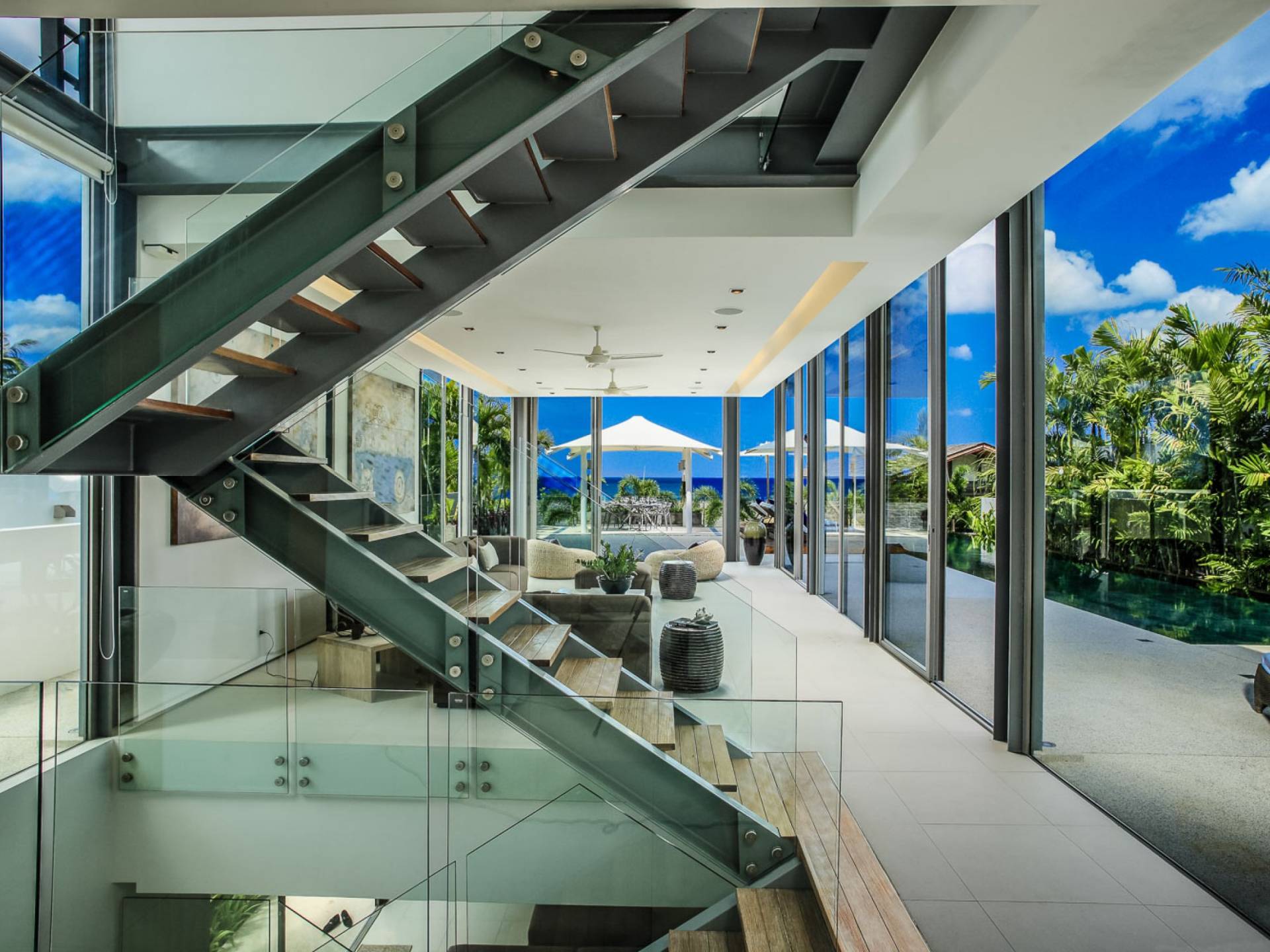 Die vier luxuriösen Schlafzimmer der Villa, von denen drei das ruhige Wasser des Ozeans widerspiegeln, befinden sich auf der obersten Etage. Die klimatisierten Schlafzimmer sind der perfekte Ausgangspunkt, um am Ende des Tages zurückzukehren. Übergroße Glastüren wurden bewusst so entworfen, dass sie den Innenraum mit den Außenräumen verschmelzen, damit Sie verjüngt schlafen und aufwachen können, begleitet vom Rauschen der Wellen am Ufer.