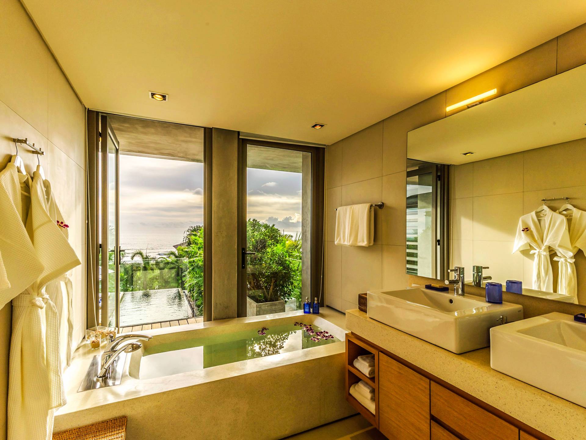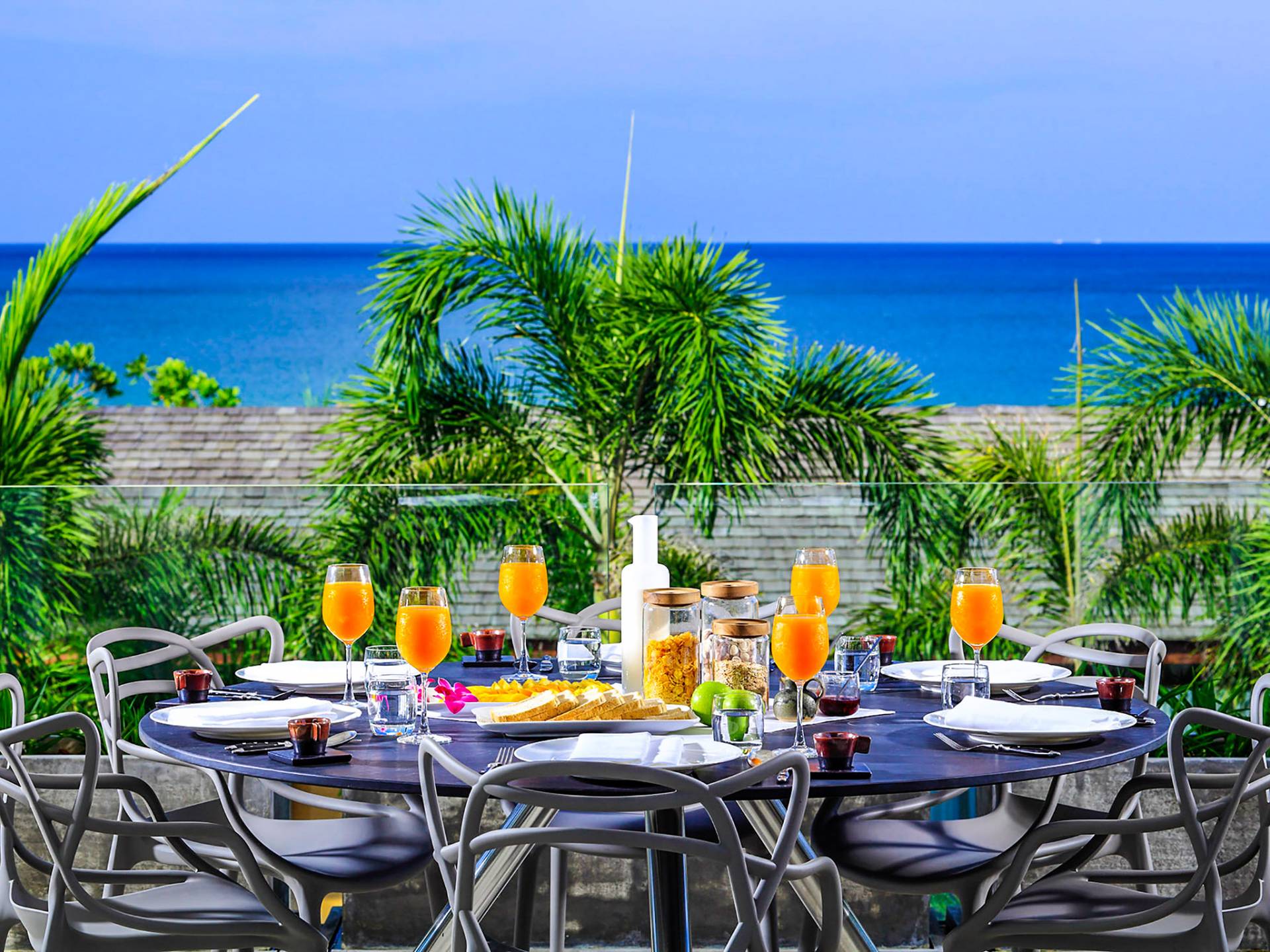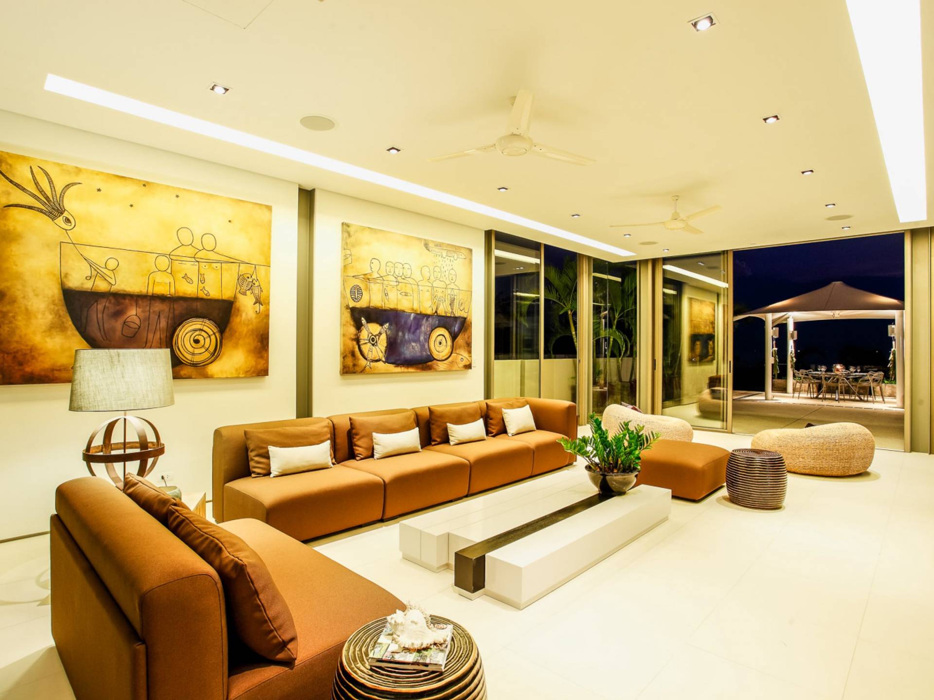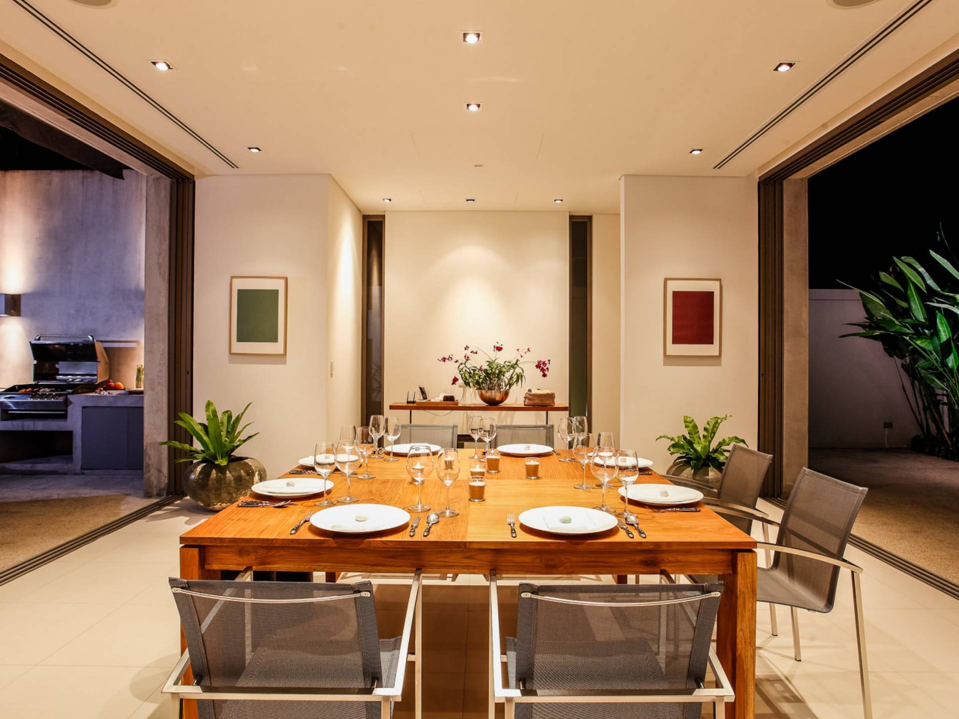 Der offene Bereich im ersten Stock des Roxo beherbergt eine moderne Gästeküche, einen Essbereich und ein Wohnzimmer, die in erdigen Farben dekoriert sind, die ein beruhigendes Gleichgewicht zum lebendigen Himmel- und Meerblick bringen. Die stilvolle Poolterrasse der Villa Roxo ist ein einladender Ort für Unterhaltung oder einfach nur zum Entspannen mit Stil und Komfort. Sein 18 Meter langer privater Infinity-Pool erstreckt sich bis zum Horizont und wird von einem geräumigen Sonnendeck eingerahmt, das mit einem Zweiersofa und Sonnenliegen ausgestattet ist und über einen Sala- und Grillbereich verfügt.