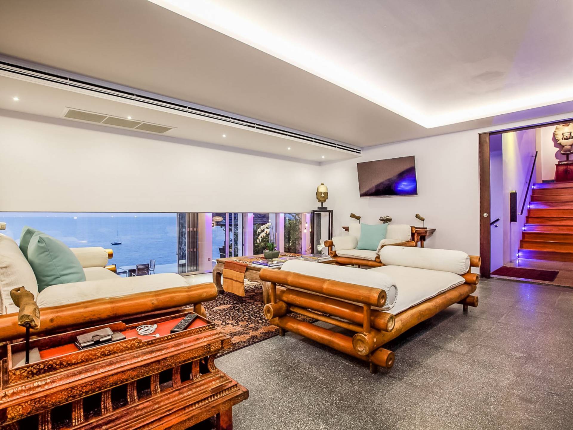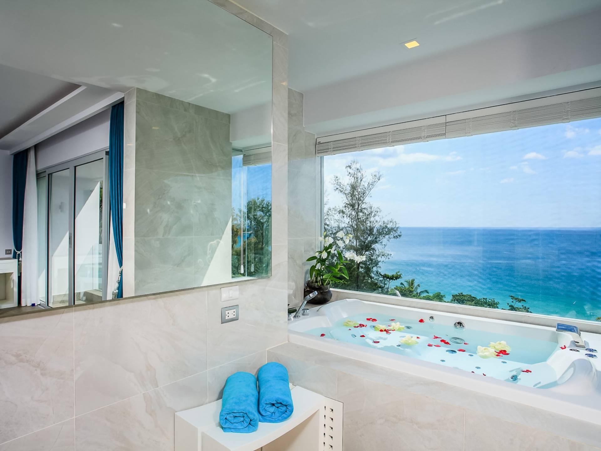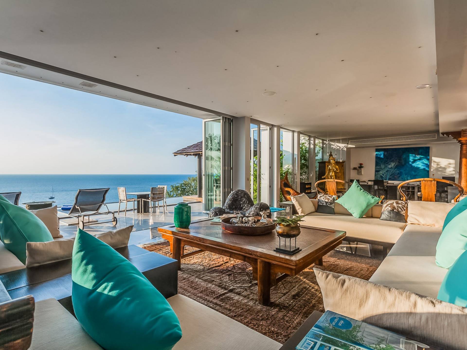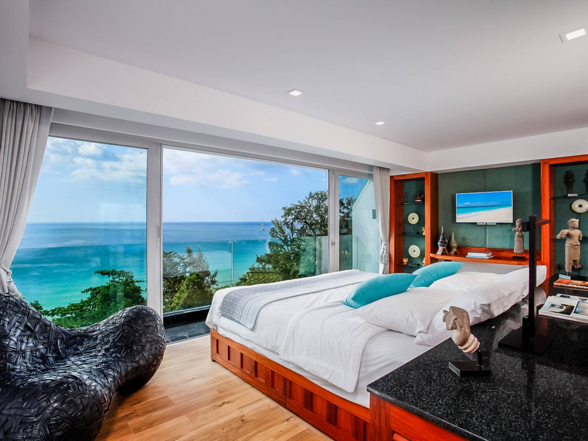 Die Annehmlichkeiten der Bluesiam Villa Phuket decken selbst den anspruchsvollsten Besucher ab und bieten allen Komfort, den man von einer modernen, luxuriösen Residenz erwartet. Von der voll ausgestatteten Küche bis zu den geräumigen und klimatisierten Zimmern wurde alles so gestaltet und gestaltet, dass Sie einen unvergesslichen Aufenthalt erleben können. Lassen Sie die Türen und Fenster offen, um die herrliche Sonne zu genießen, die das Haus überflutet, und die Magie des Meeres, das sich vor Ihnen ausbreitet, sowie den wunderschönen Sonnenuntergang!