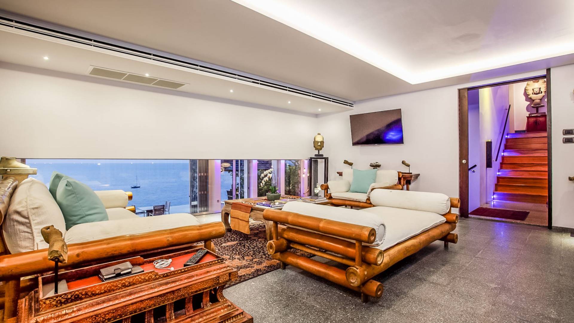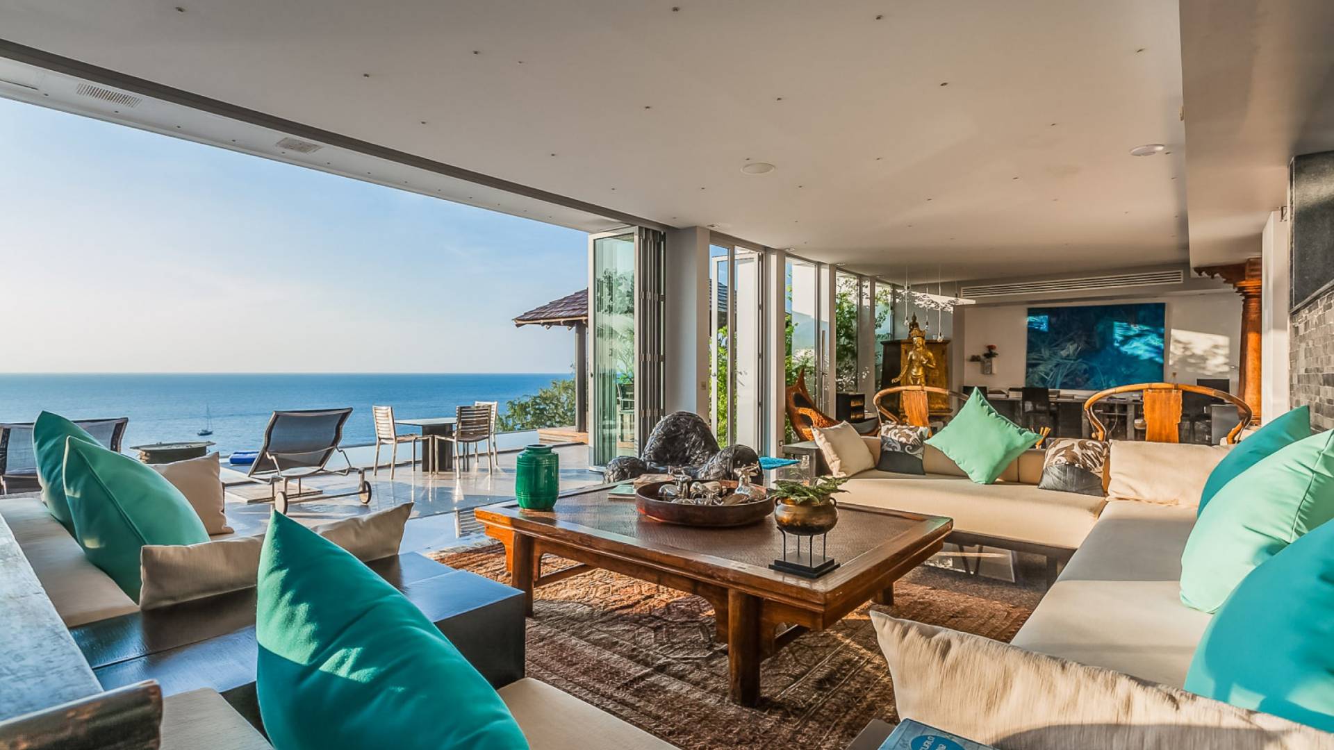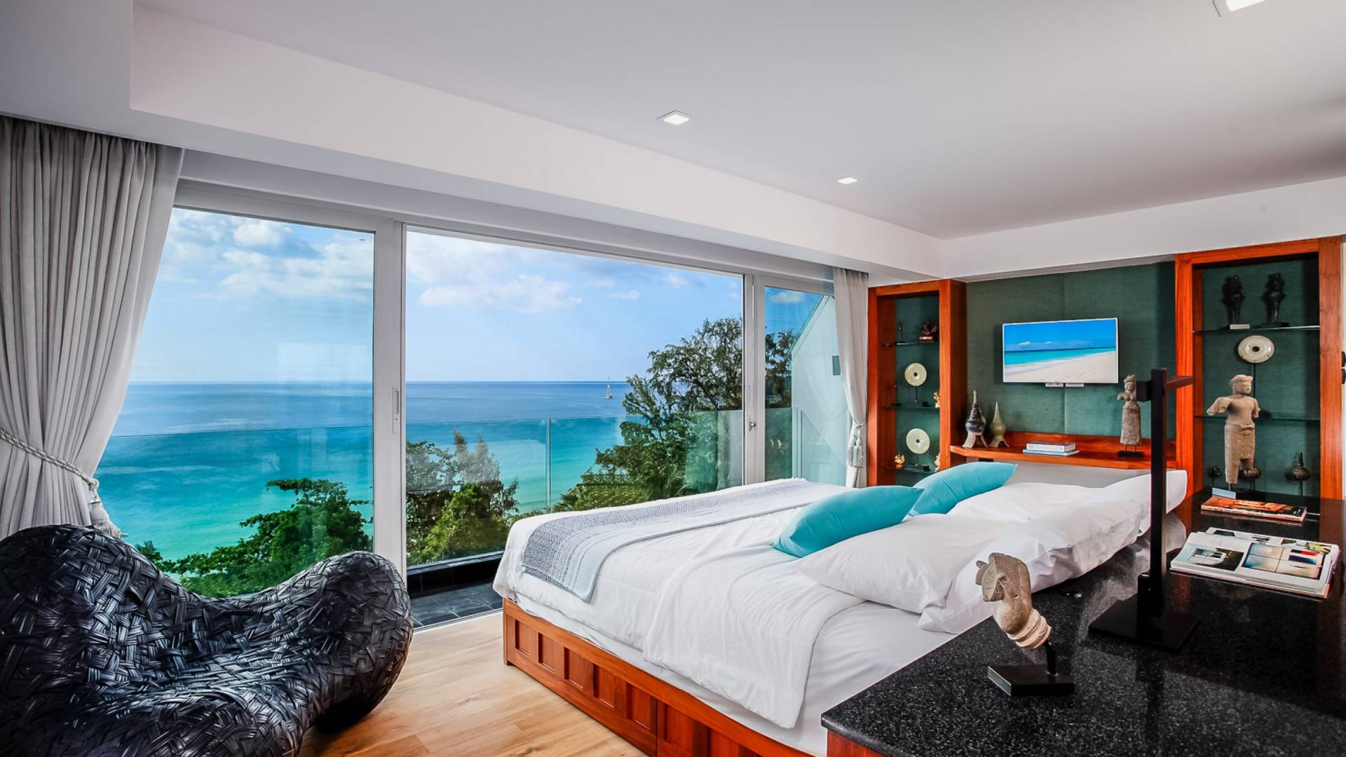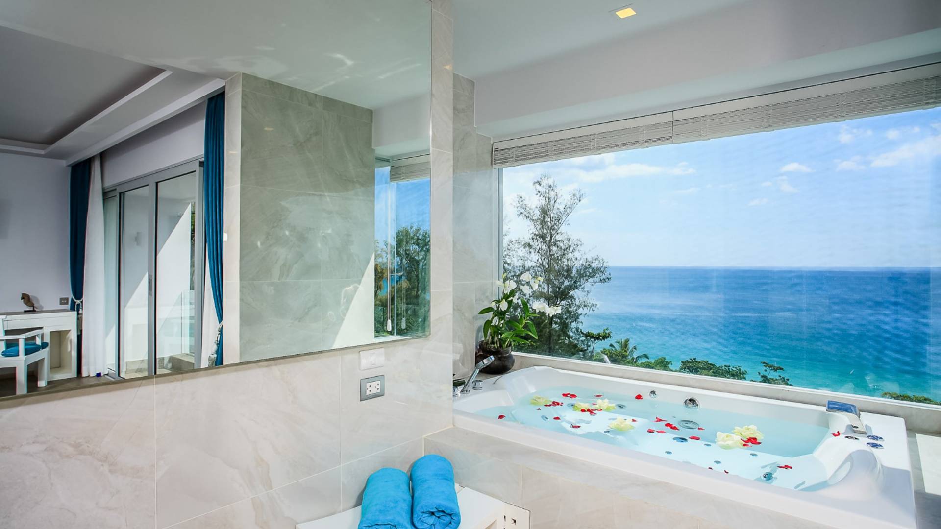 Die Annehmlichkeiten der Bluesiam Villa Phuket decken selbst den anspruchsvollsten Besucher ab und bieten allen Komfort, den man von einer modernen, luxuriösen Residenz erwartet. Von der voll ausgestatteten Küche bis zu den geräumigen und klimatisierten Zimmern wurde alles so gestaltet und gestaltet, dass Sie einen unvergesslichen Aufenthalt erleben können. Lassen Sie die Türen und Fenster offen, um die herrliche Sonne zu genießen, die das Haus überflutet, und die Magie des Meeres, das sich vor Ihnen ausbreitet, sowie den wunderschönen Sonnenuntergang!