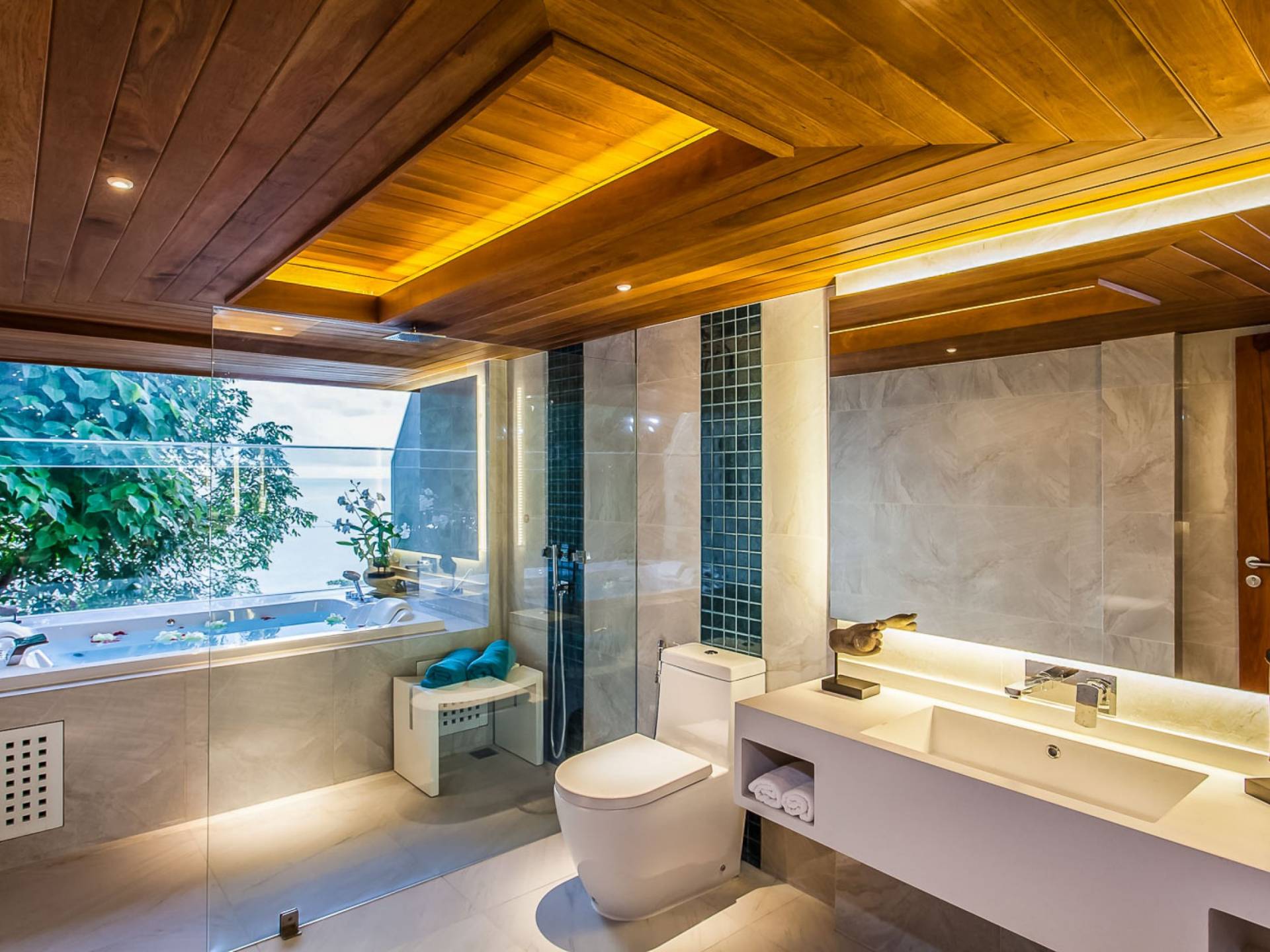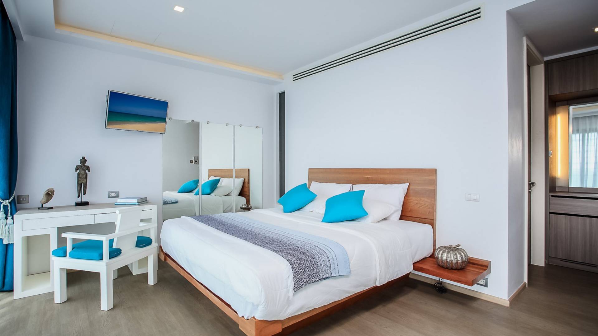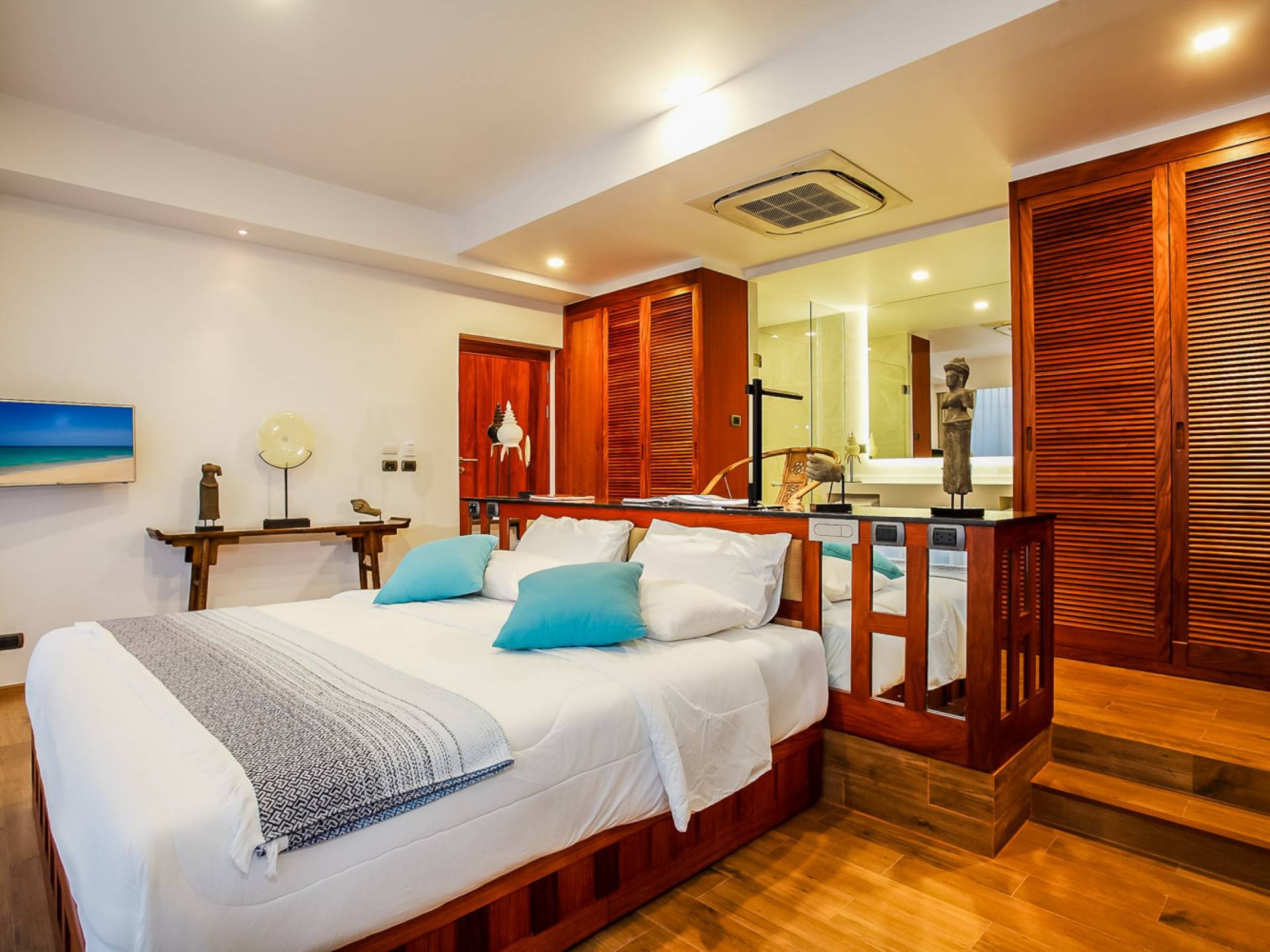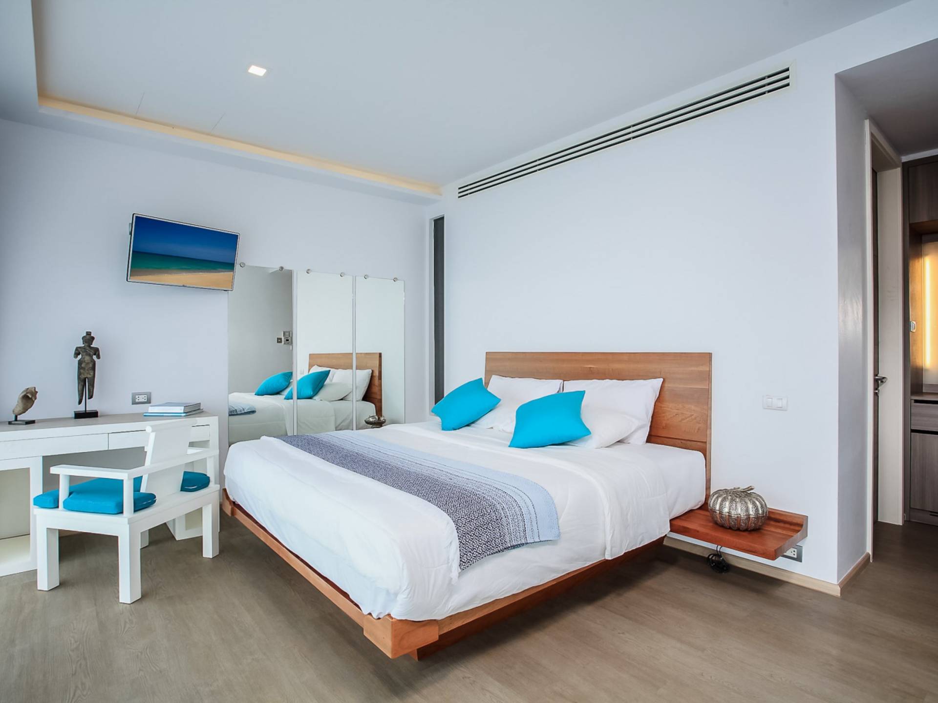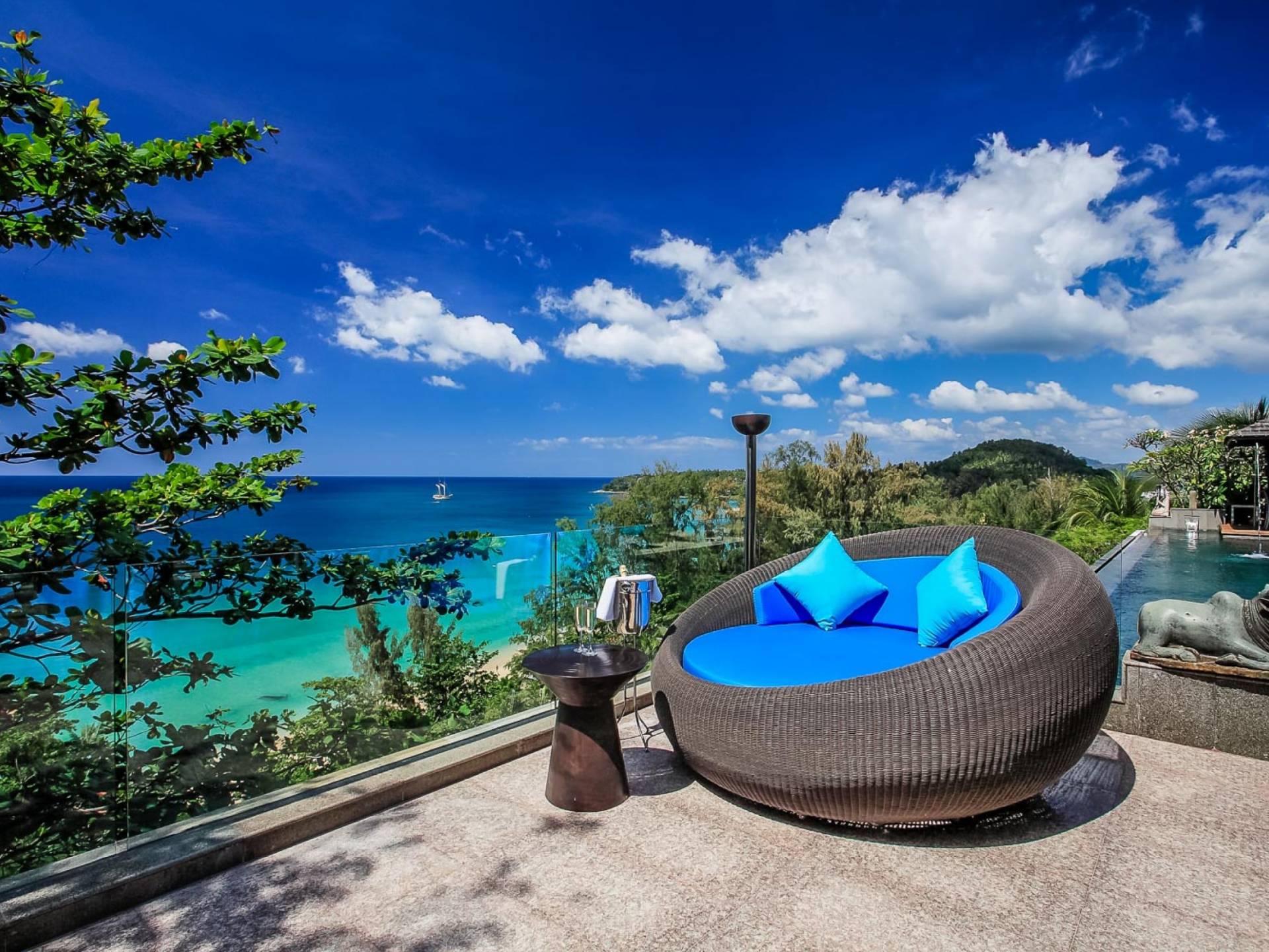 Die Annehmlichkeiten der Bluesiam Villa Phuket decken selbst den anspruchsvollsten Besucher ab und bieten allen Komfort, den man von einer modernen, luxuriösen Residenz erwartet. Von der voll ausgestatteten Küche bis zu den geräumigen und klimatisierten Zimmern wurde alles so gestaltet und gestaltet, dass Sie einen unvergesslichen Aufenthalt erleben können. Lassen Sie die Türen und Fenster offen, um die herrliche Sonne zu genießen, die das Haus überflutet, und die Magie des Meeres, das sich vor Ihnen ausbreitet, sowie den wunderschönen Sonnenuntergang!