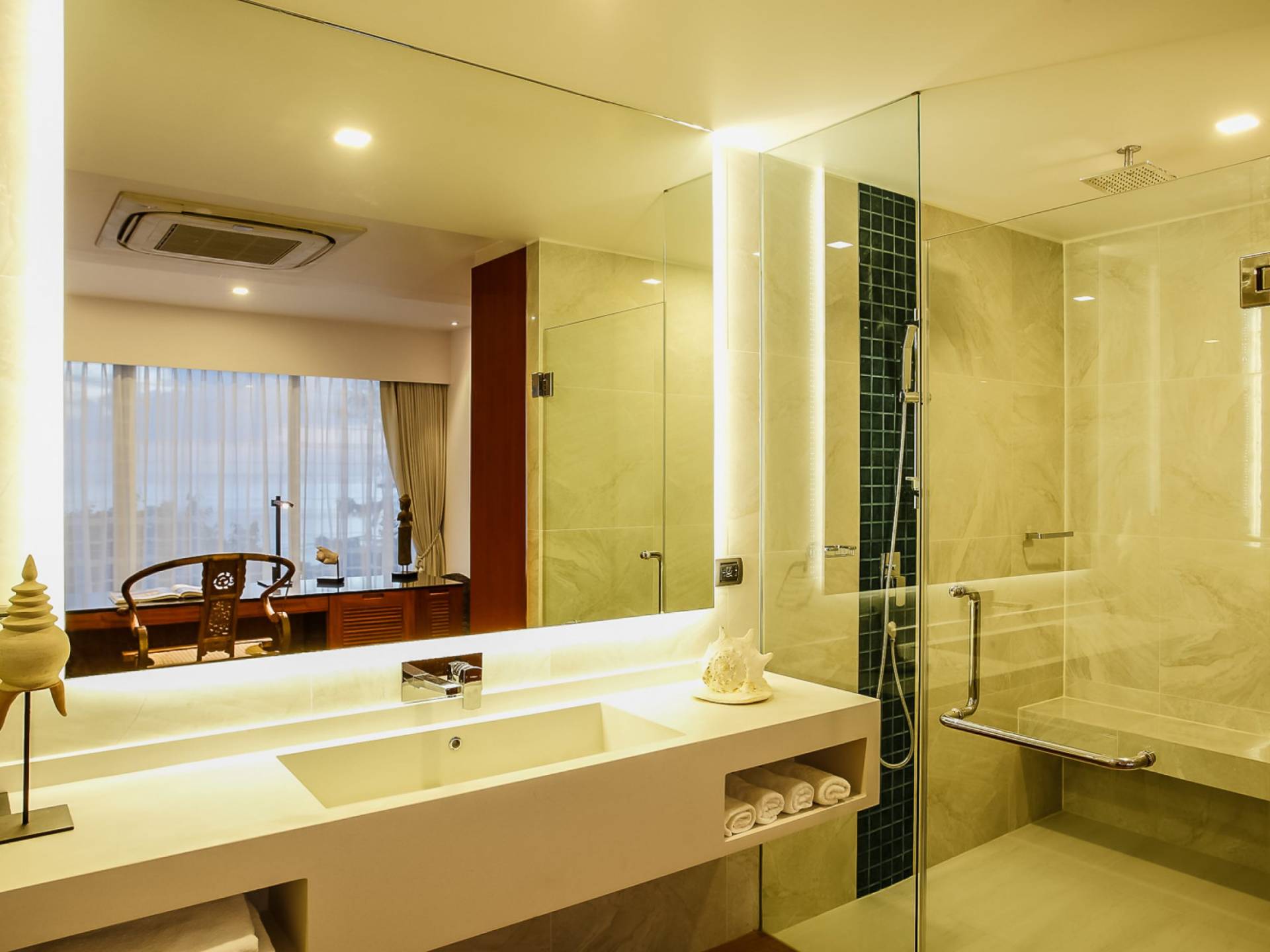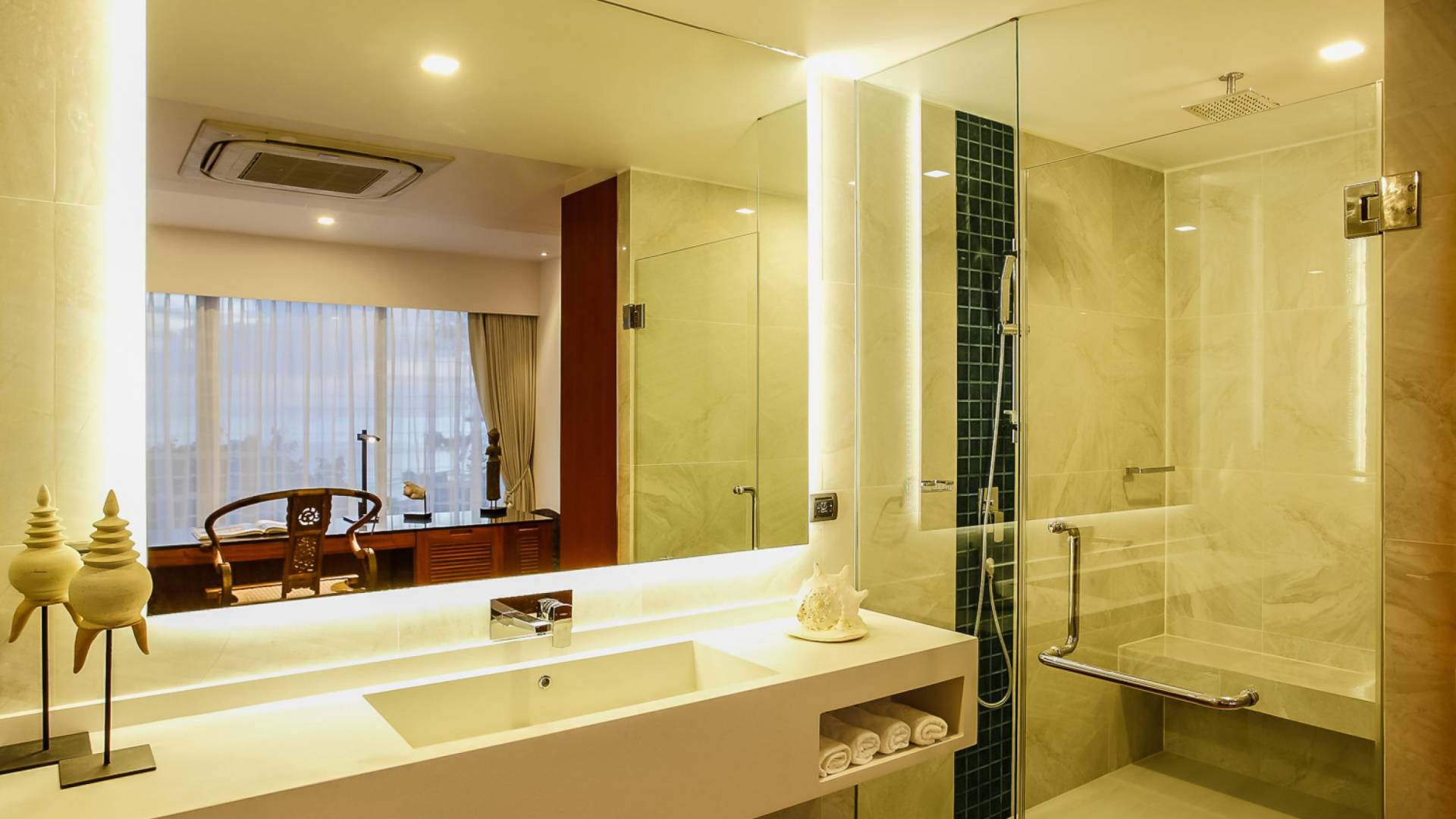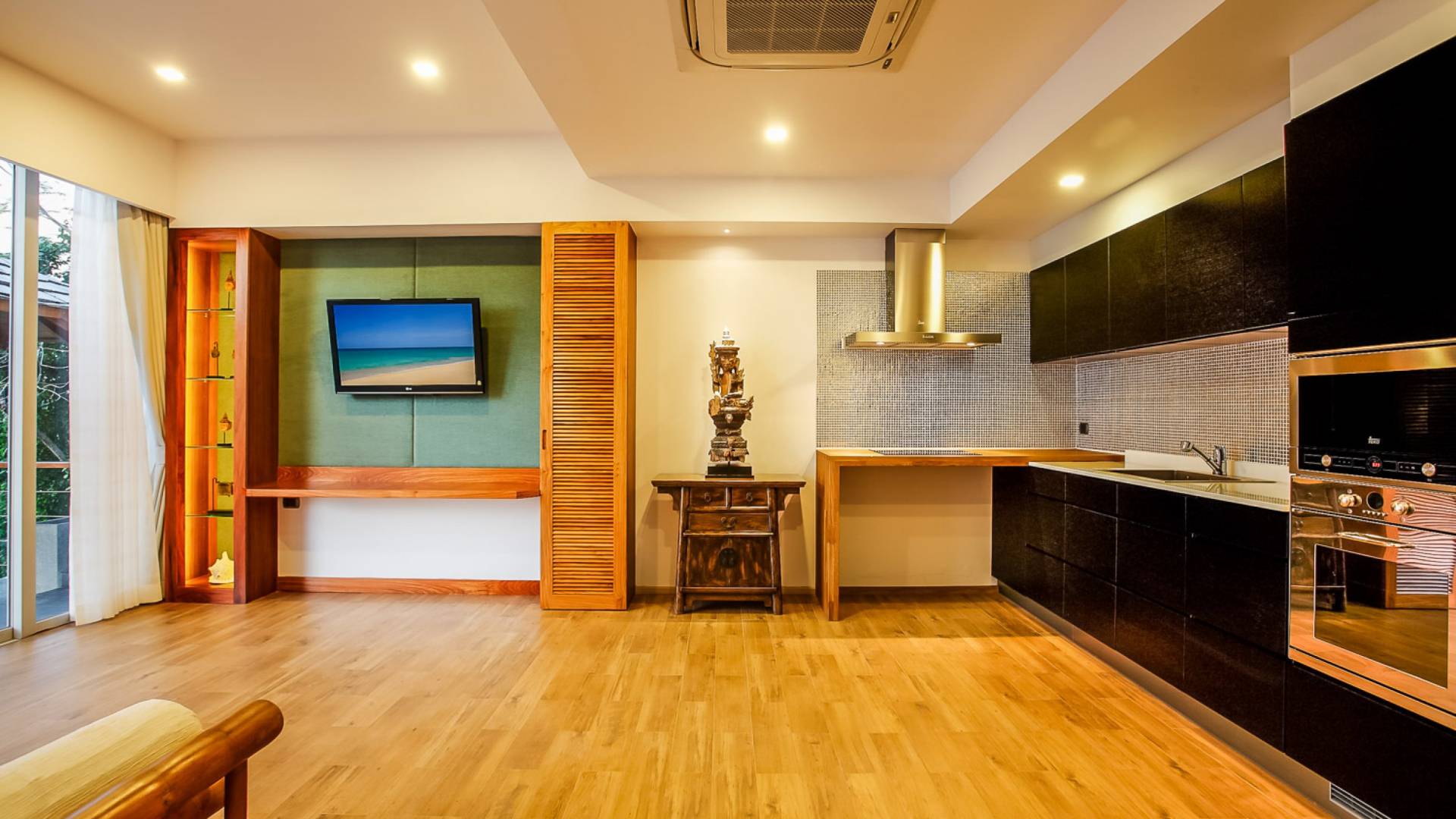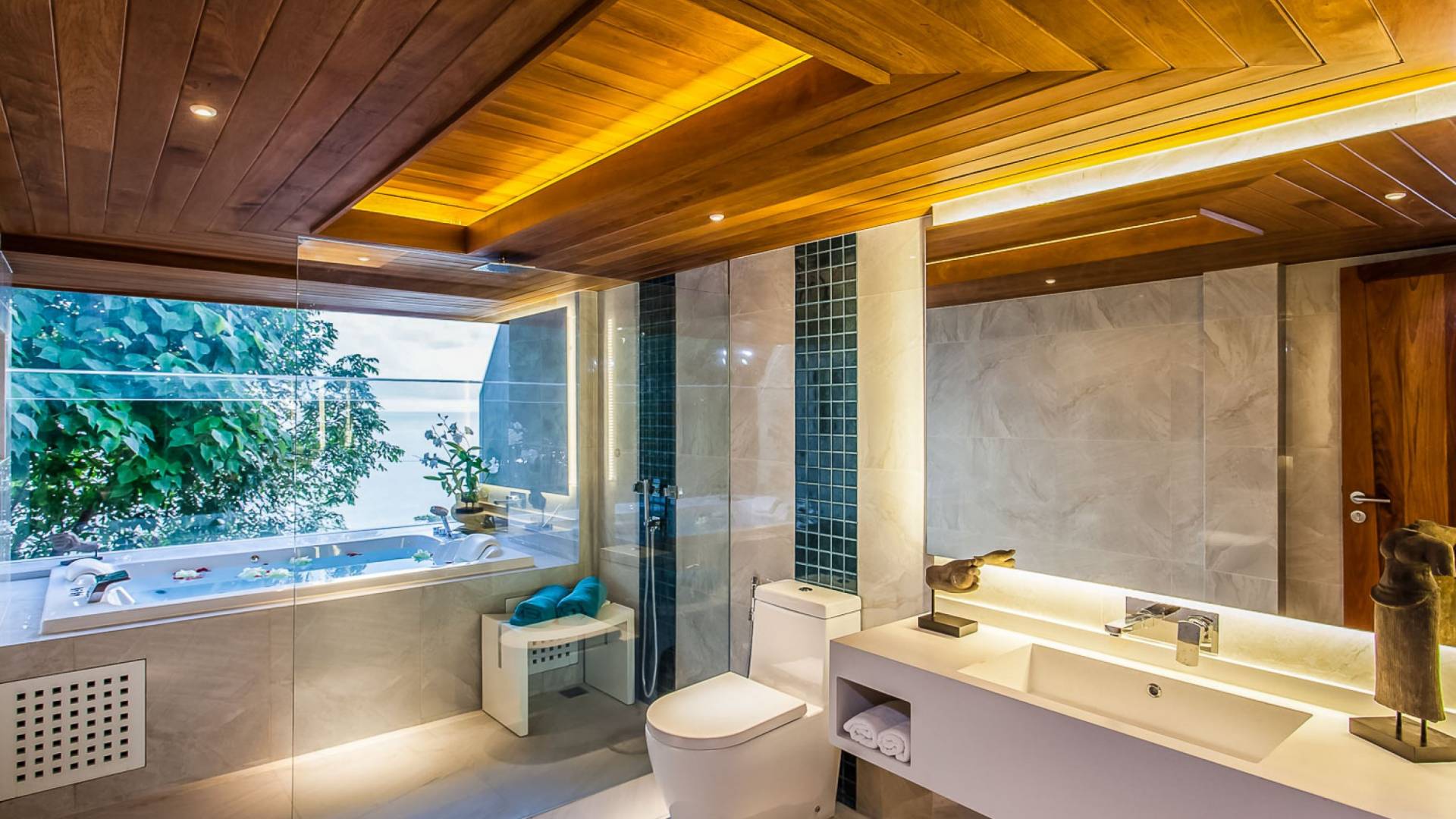 Die Annehmlichkeiten der Bluesiam Villa Phuket decken selbst den anspruchsvollsten Besucher ab und bieten allen Komfort, den man von einer modernen, luxuriösen Residenz erwartet. Von der voll ausgestatteten Küche bis zu den geräumigen und klimatisierten Zimmern wurde alles so gestaltet und gestaltet, dass Sie einen unvergesslichen Aufenthalt erleben können. Lassen Sie die Türen und Fenster offen, um die herrliche Sonne zu genießen, die das Haus überflutet, und die Magie des Meeres, das sich vor Ihnen ausbreitet, sowie den wunderschönen Sonnenuntergang!