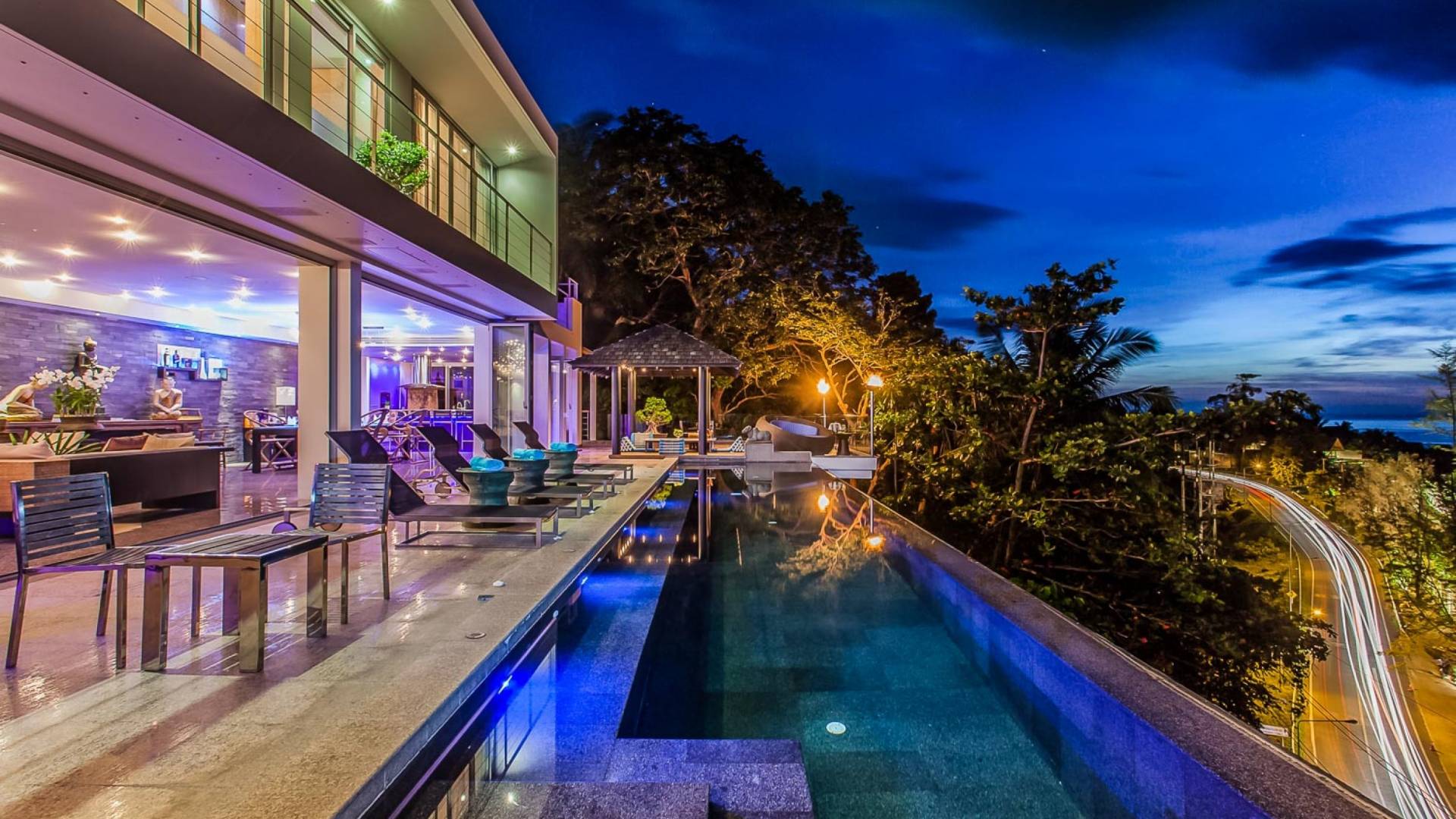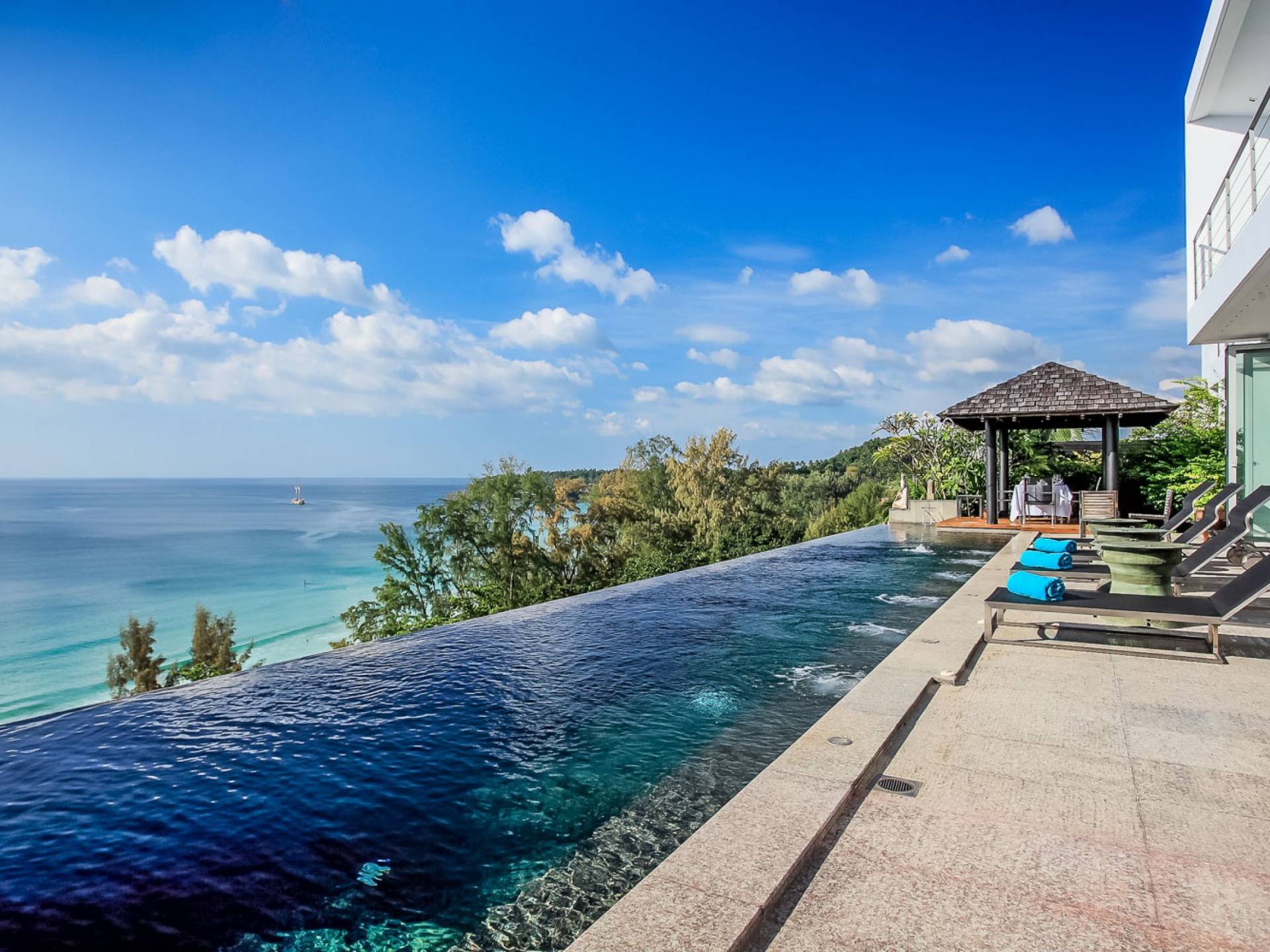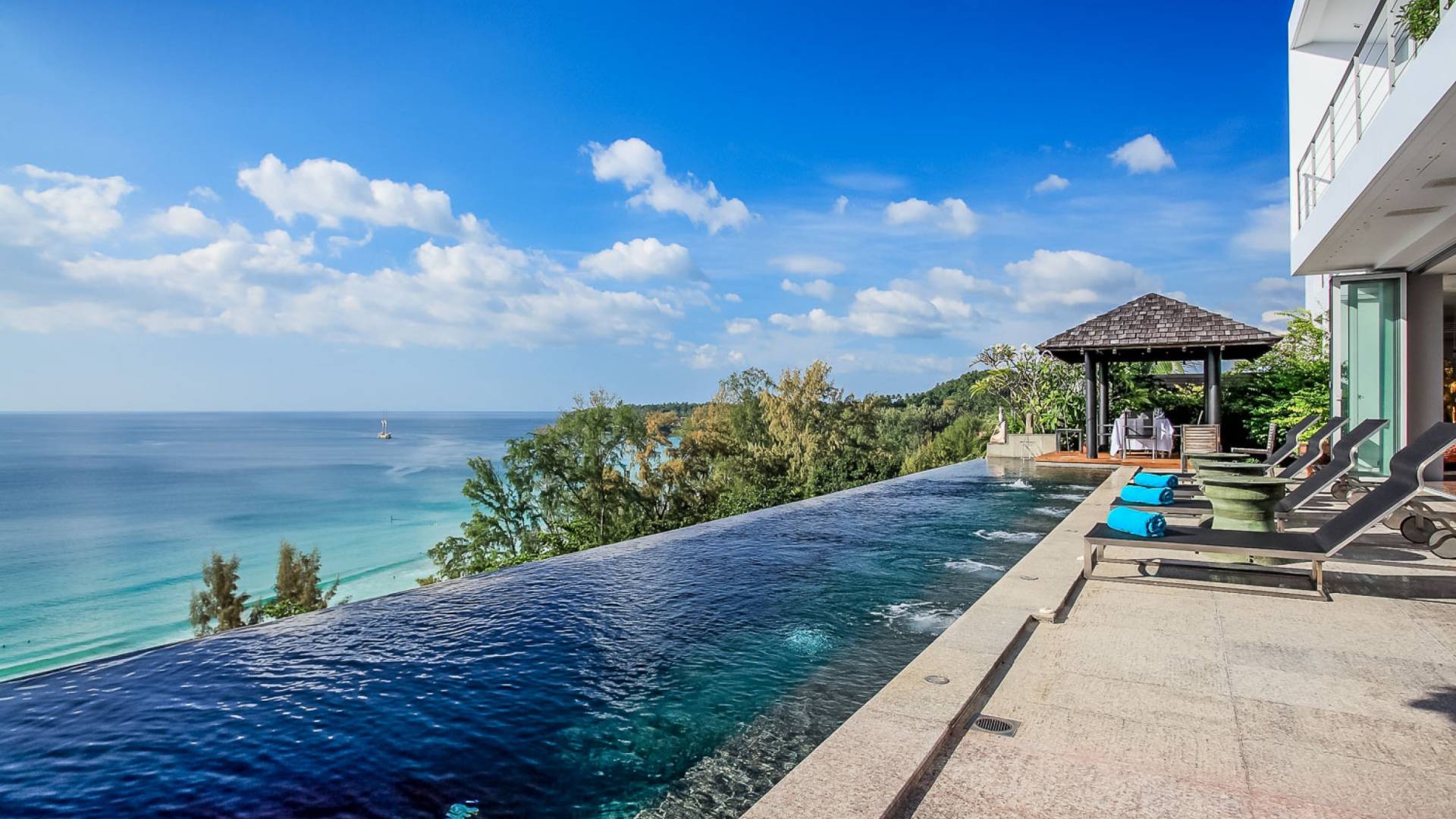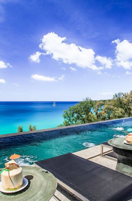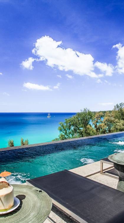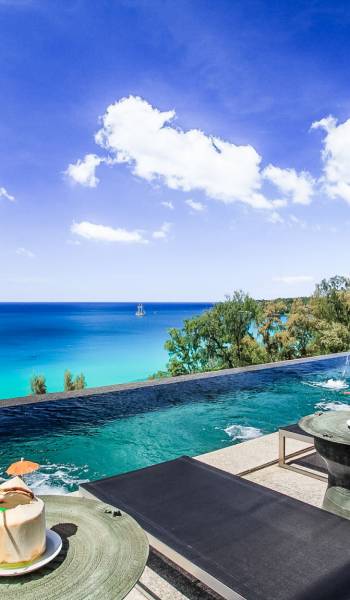 Die Bluesiam Villa Phuket liegt auf einem Hügel mit Blick auf einen prestigeträchtigen Strand von Surin. Der spektakulärste Strand in Phuket. Eine der wenigen privaten Villen in der Gegend, die Ihnen 100% Meerblick mit 100% Privatsphäre und in fußläufiger Entfernung zum Strand bietet. Hier finden Sie verschiedene Strandclubs und andere Aktivitäten, mit denen Sie Ihren Tag verbringen können.