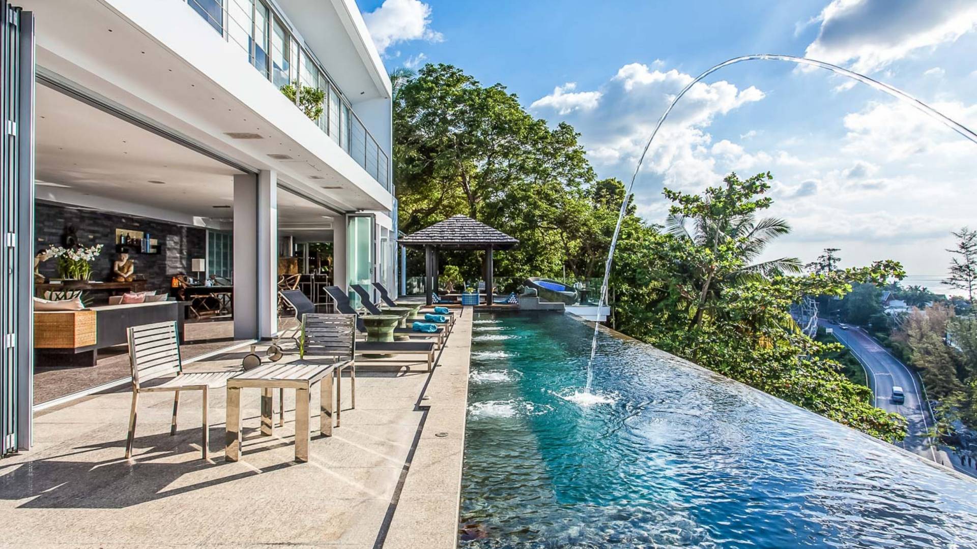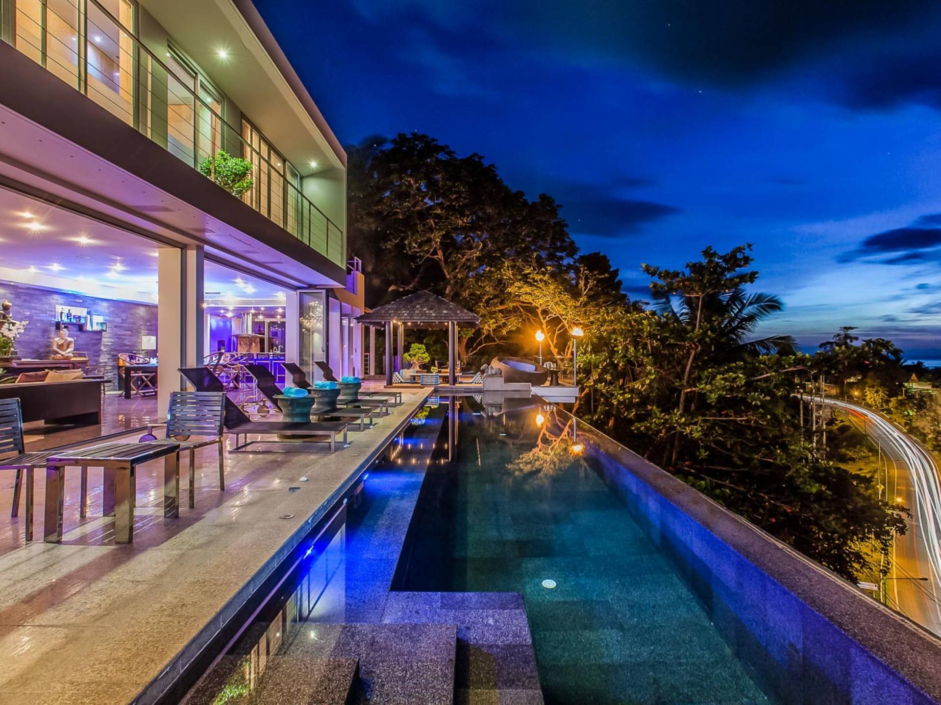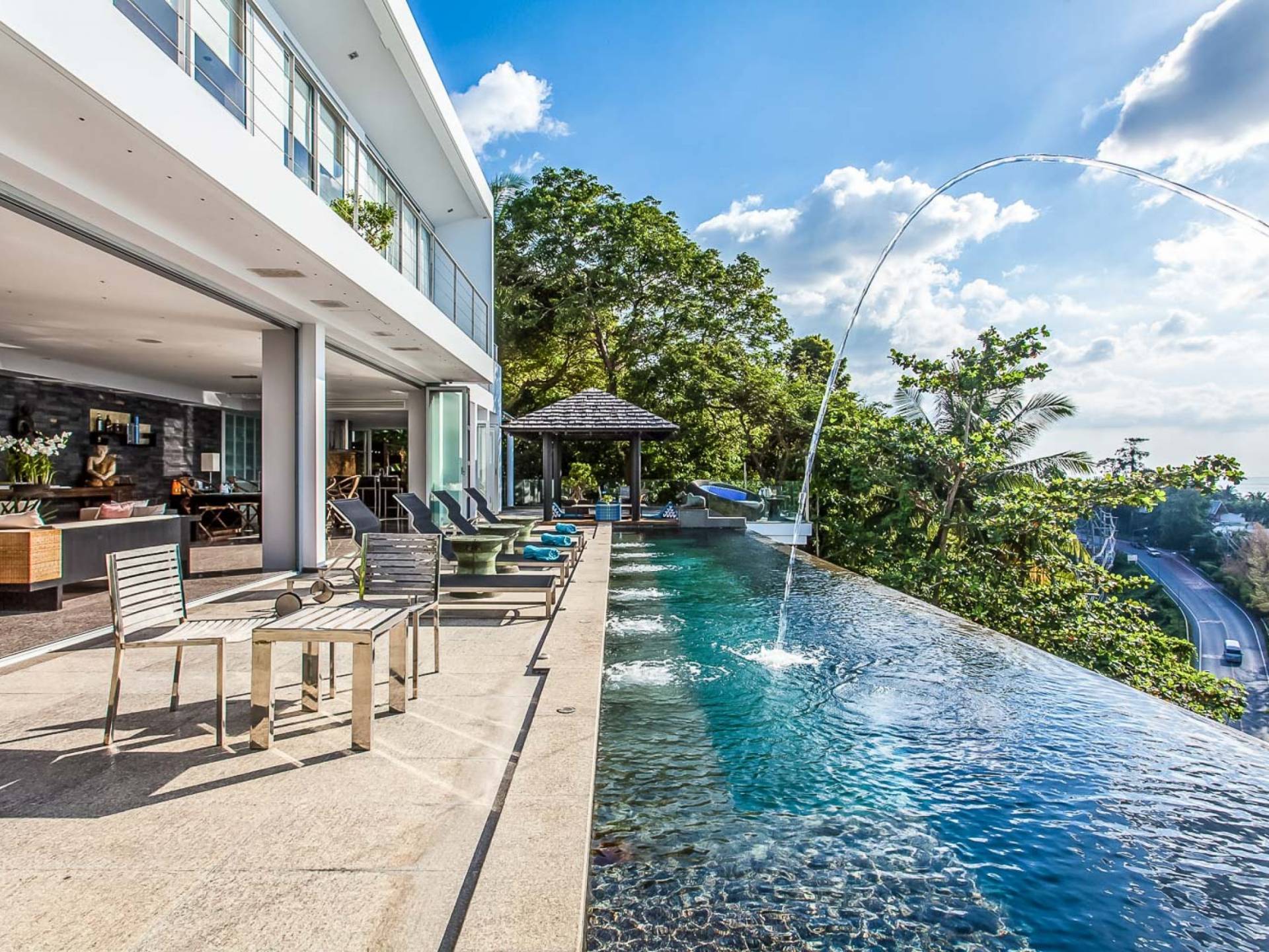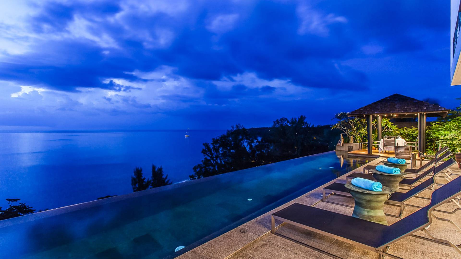 Die Bluesiam Villa Phuket liegt auf einem Hügel mit Blick auf einen prestigeträchtigen Strand von Surin. Der spektakulärste Strand in Phuket. Eine der wenigen privaten Villen in der Gegend, die Ihnen 100% Meerblick mit 100% Privatsphäre und in fußläufiger Entfernung zum Strand bietet. Hier finden Sie verschiedene Strandclubs und andere Aktivitäten, mit denen Sie Ihren Tag verbringen können.
