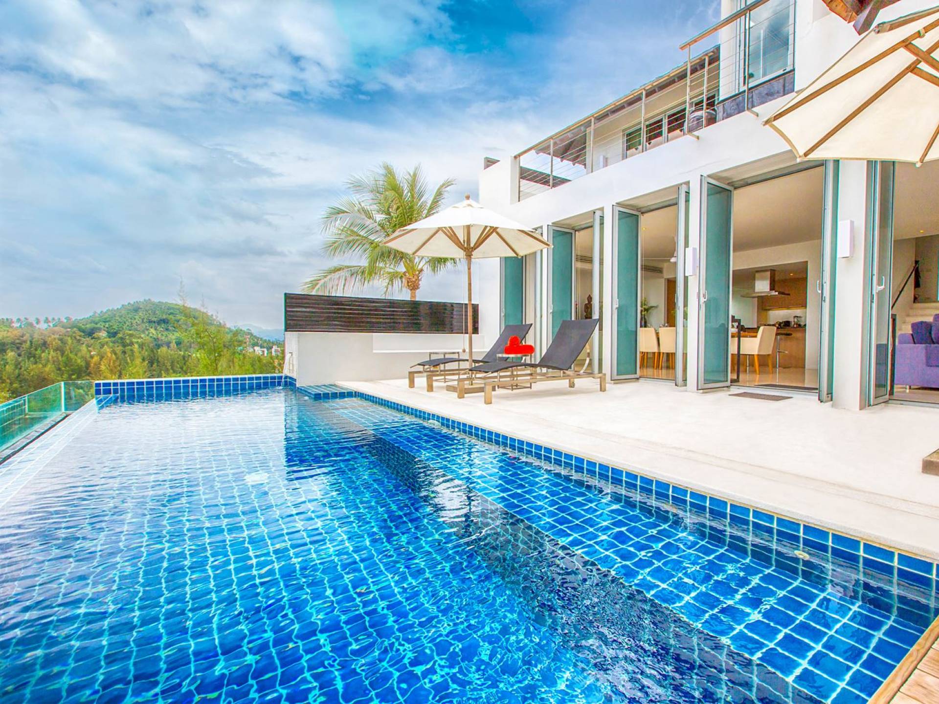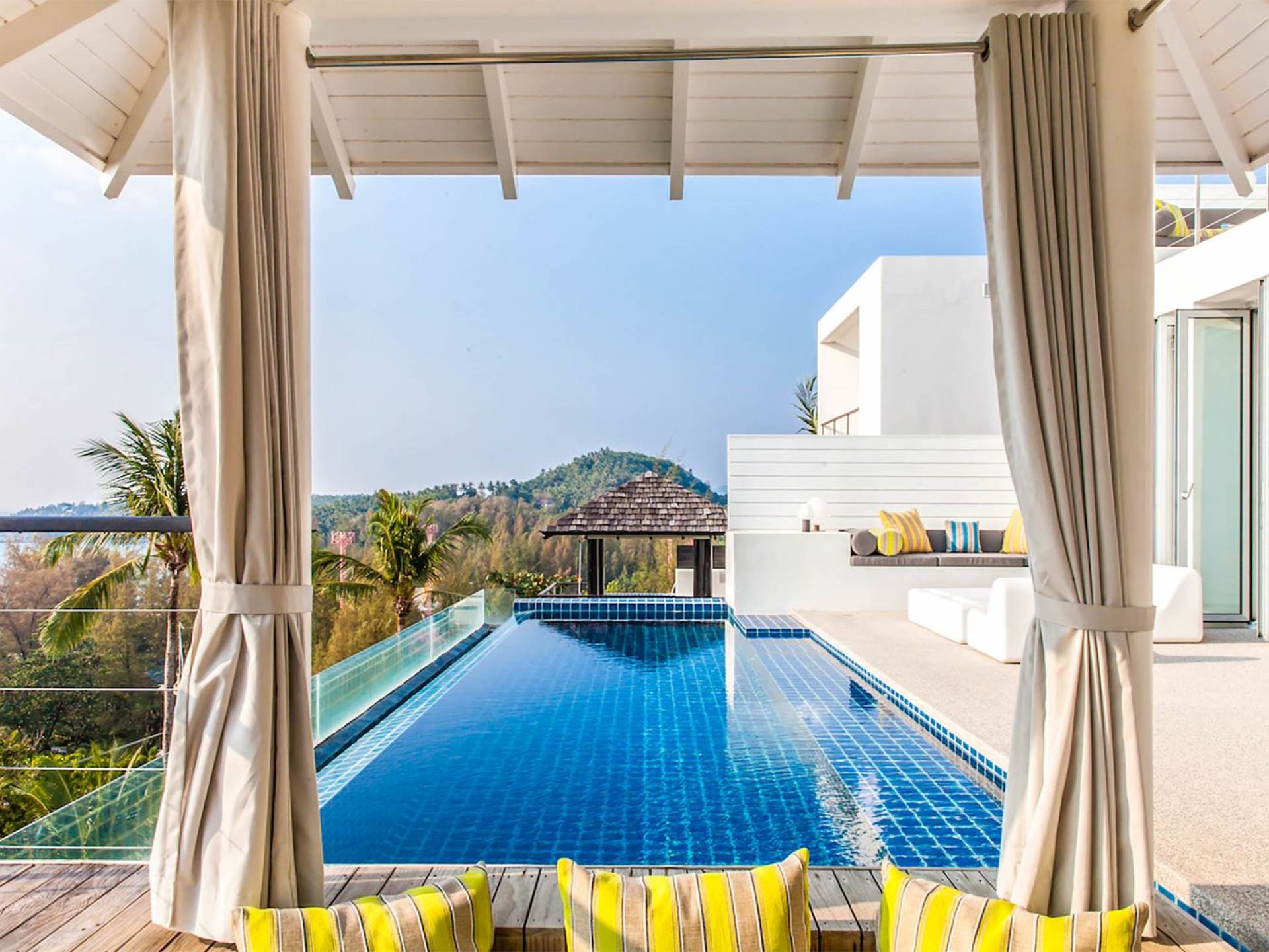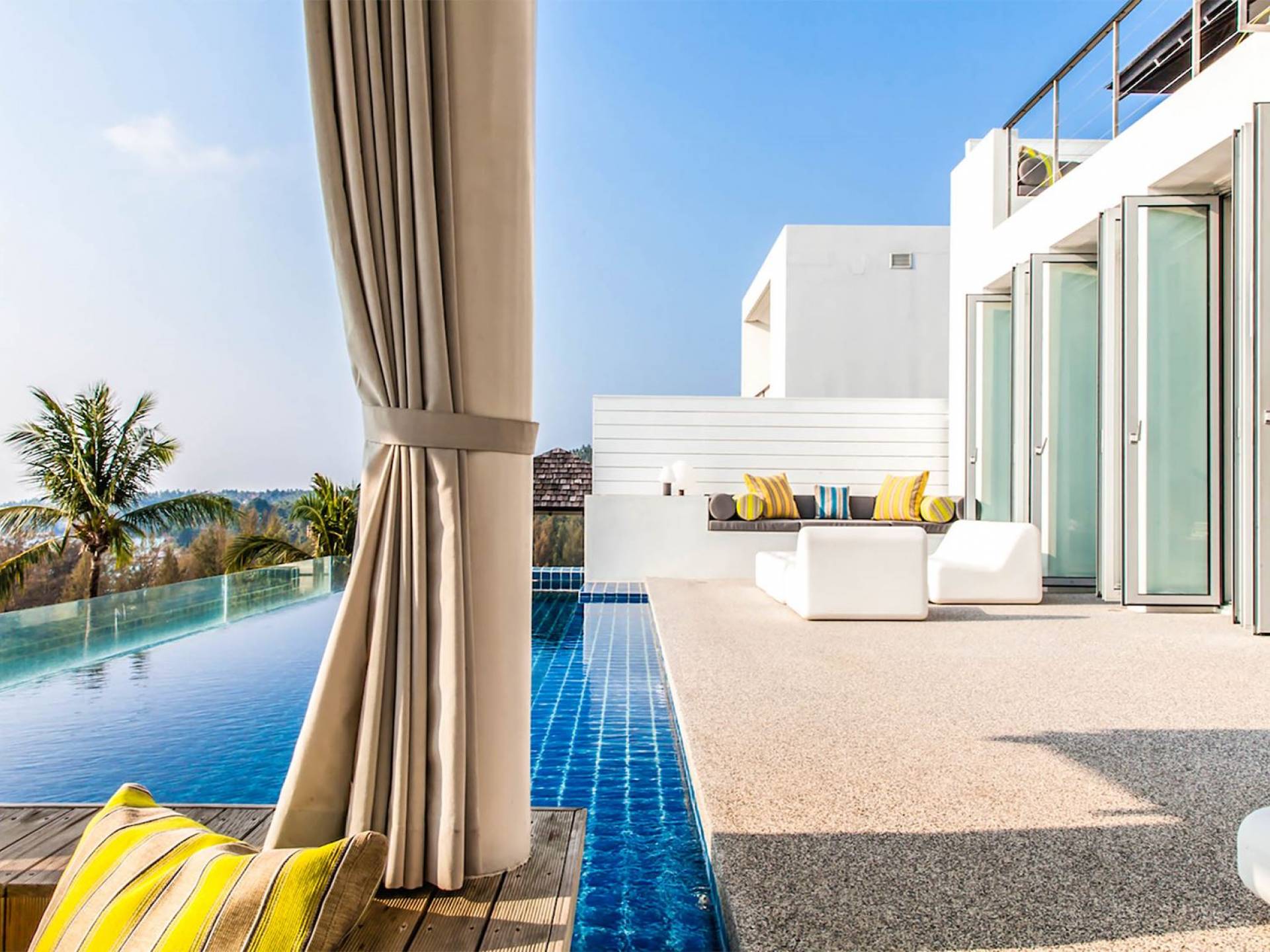 Villa Sammasan ist eine Luxusvilla mit 3 Schlafzimmern und einem privaten Pool. Villa Napalai ist eine Luxusvilla mit 4 Schlafzimmern und einem privaten Pool. Wenn modernes Design an einem spektakulären Ort auf Luxus und Komfort trifft, dann sind das die Villas Sammasan und Napalai in Phuket. Zwei wunderschöne Residenzen – eine Villa mit 4 Schlafzimmern und eine Villa mit 3 Schlafzimmern – mit atemberaubendem Meerblick. Eine exklusive Enklave, nur wenige Minuten vom herrlichen Surin Beach entfernt, eine ausgezeichnete Wahl für Familien oder Freunde, die einen tropischen Urlaub voller Outdoor-Aktivitäten und lustiger Abenteuer suchen.