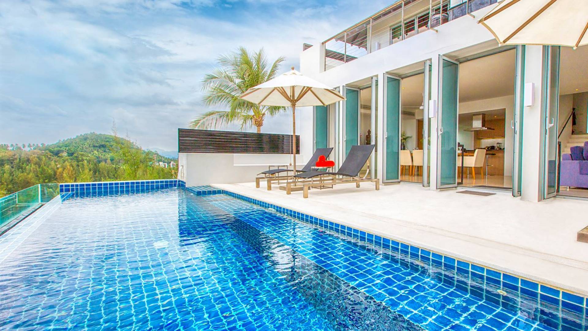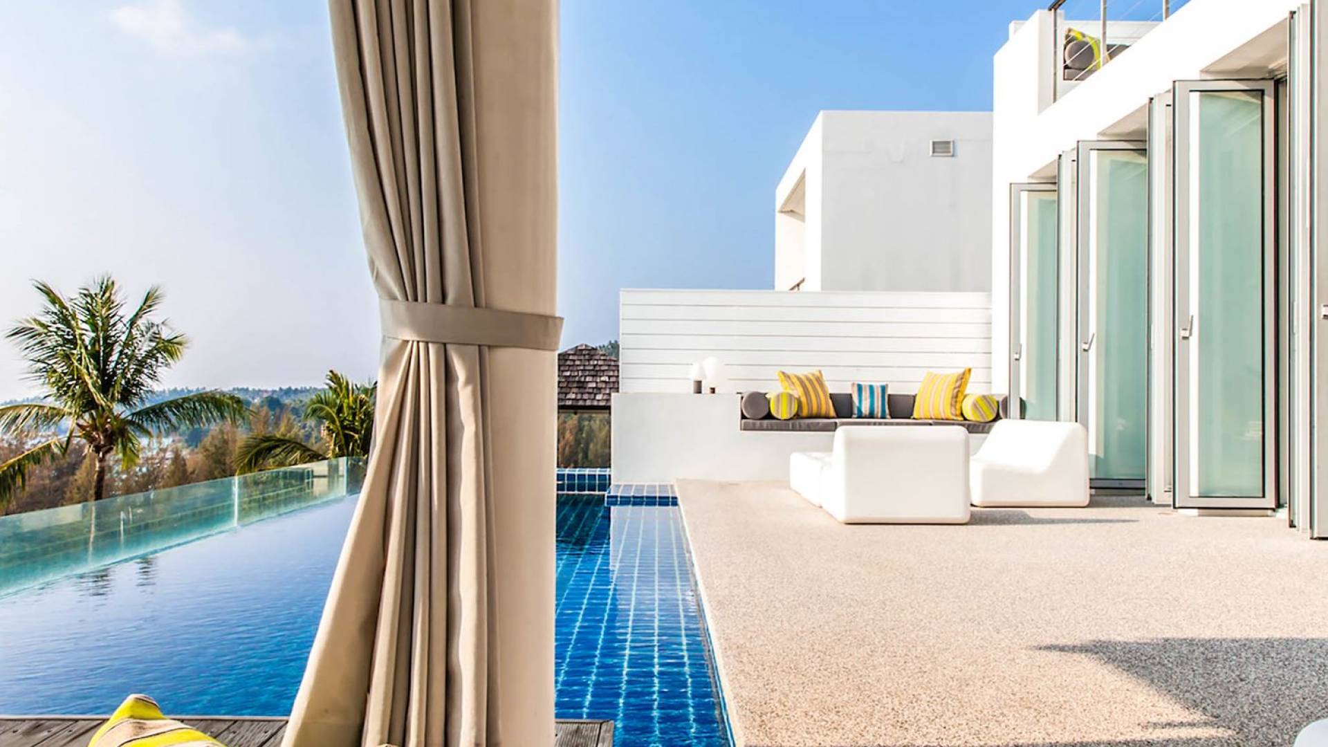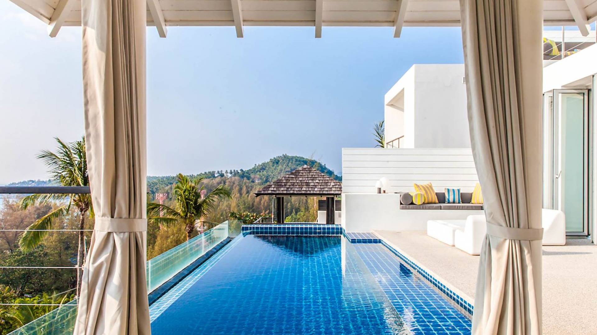 Villa Sammasan ist eine Luxusvilla mit 3 Schlafzimmern und einem privaten Pool. Villa Napalai ist eine Luxusvilla mit 4 Schlafzimmern und einem privaten Pool. Wenn modernes Design an einem spektakulären Ort auf Luxus und Komfort trifft, dann sind das die Villas Sammasan und Napalai in Phuket. Zwei wunderschöne Residenzen – eine Villa mit 4 Schlafzimmern und eine Villa mit 3 Schlafzimmern – mit atemberaubendem Meerblick. Eine exklusive Enklave, nur wenige Minuten vom herrlichen Surin Beach entfernt, eine ausgezeichnete Wahl für Familien oder Freunde, die einen tropischen Urlaub voller Outdoor-Aktivitäten und lustiger Abenteuer suchen.