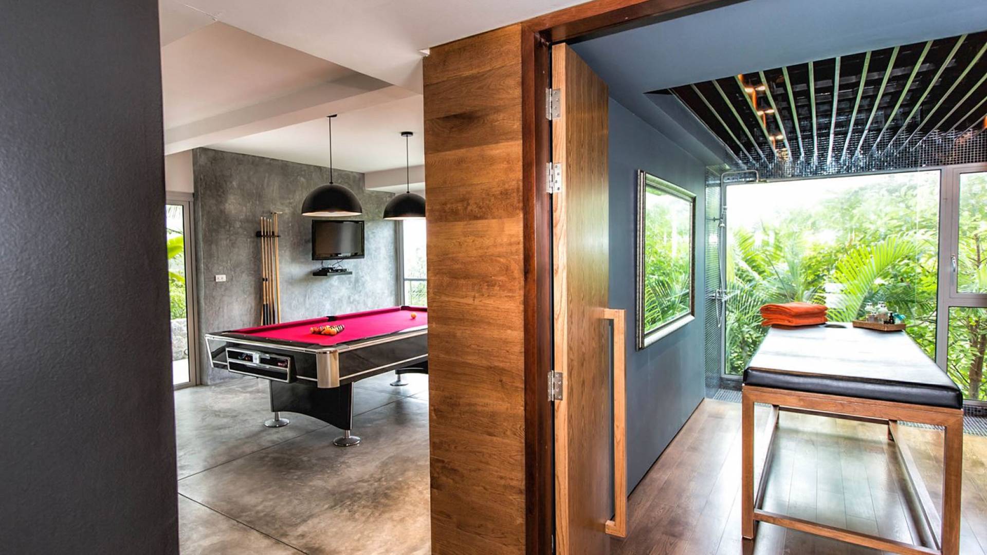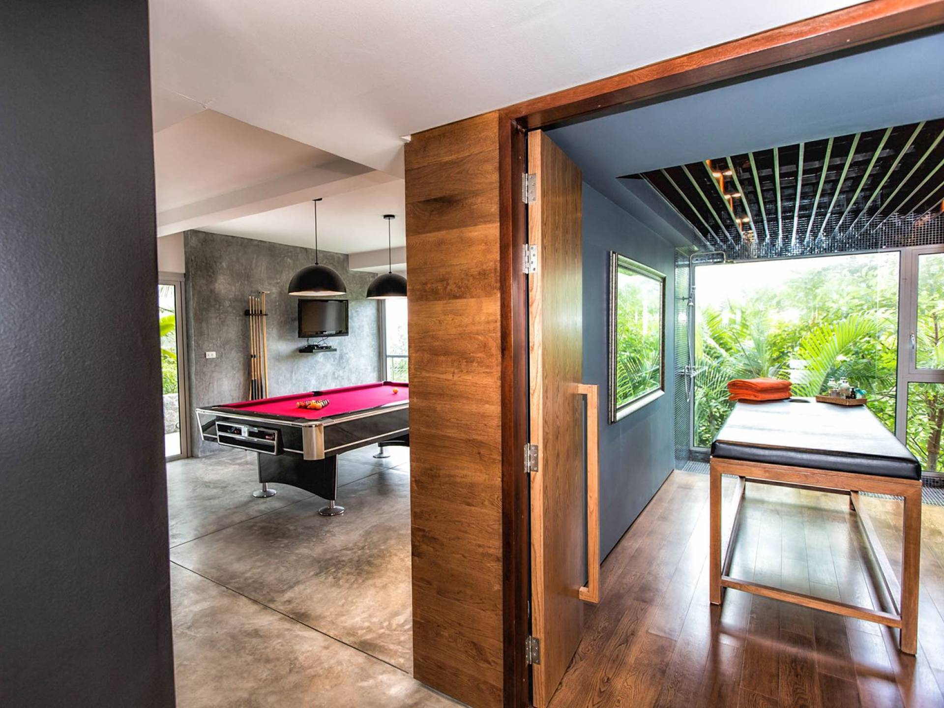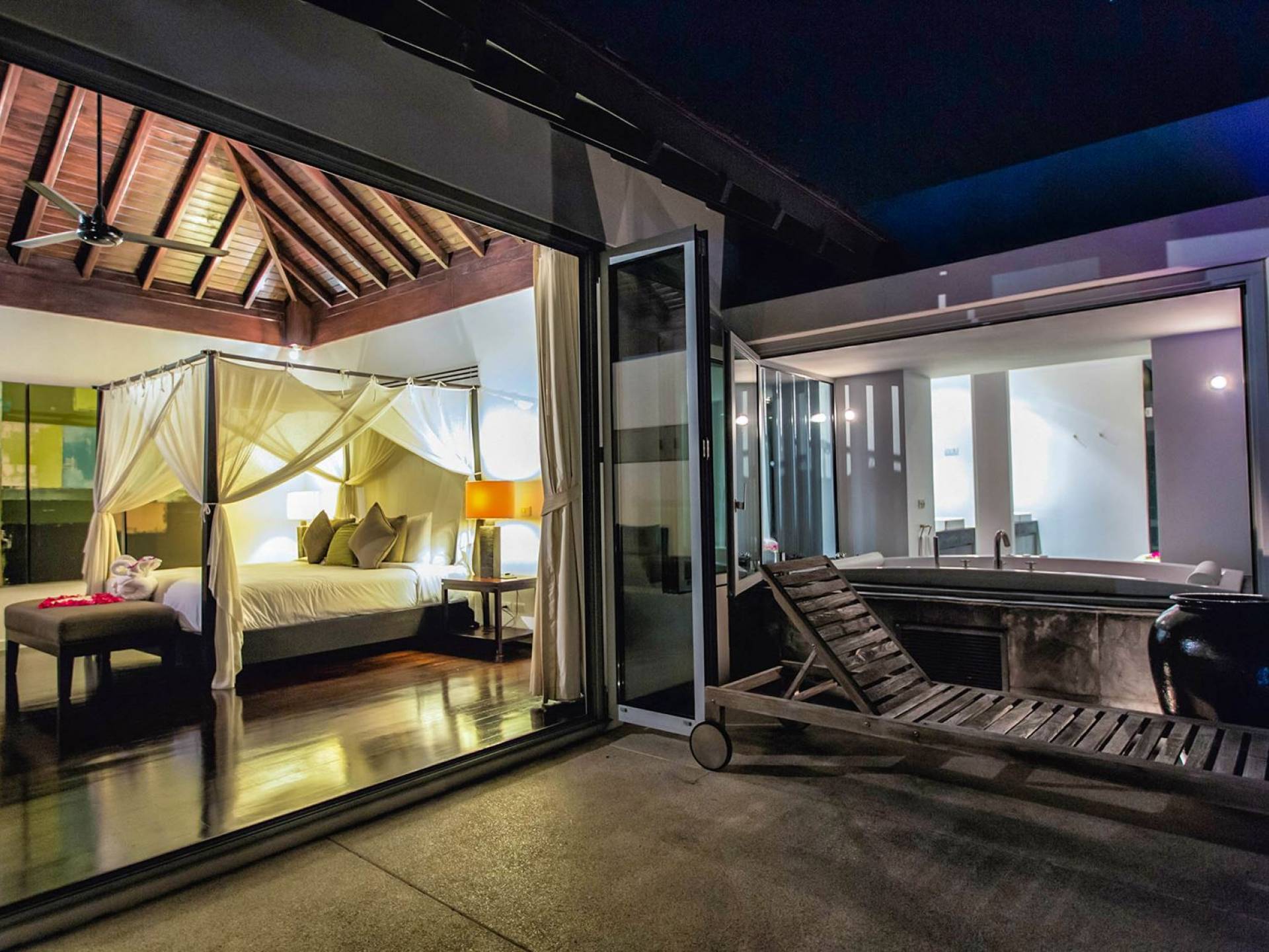 Die 4-Schlafzimmer-Villa Napalai Surin besitzt einen einzigartigen Charakter und Stil, von ultra-zeitgenössisch bis hin zu skurrilem Heritage-Chic, angereichert mit Hi-Tech-Einrichtungen wie Stereoanlagen und iPod-Docks sowie Satellitenfernsehen. Die Luxusmiete genießt auch einen gut ausgestatteten Fitnessraum, ein Kinderspielzimmer, einen Raum mit Bar und Billardtisch, ein Spielzimmer, einen Whirlpool und einen Massageraum. Die Luxusvilla ist voll besetzt, um Dienstleistungen nach Bedarf zu erbringen.