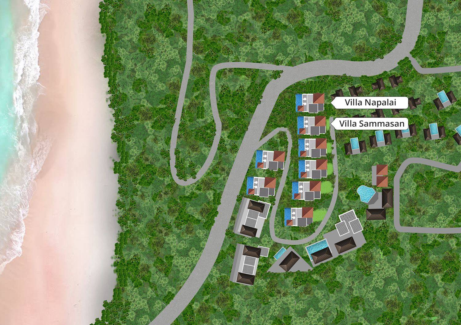 Die einzigartige Lage der Villa Napalai Surin bietet kurze Spaziergänge zu den besten Restaurants, Stränden und Geschäften der Insel. Die herrlichen Strände in der Nähe sind perfekt, egal ob Sie einfach nur den weißen, weichen Sand zwischen Ihren Zehen spüren möchten oder ein Wassersportfan sind.