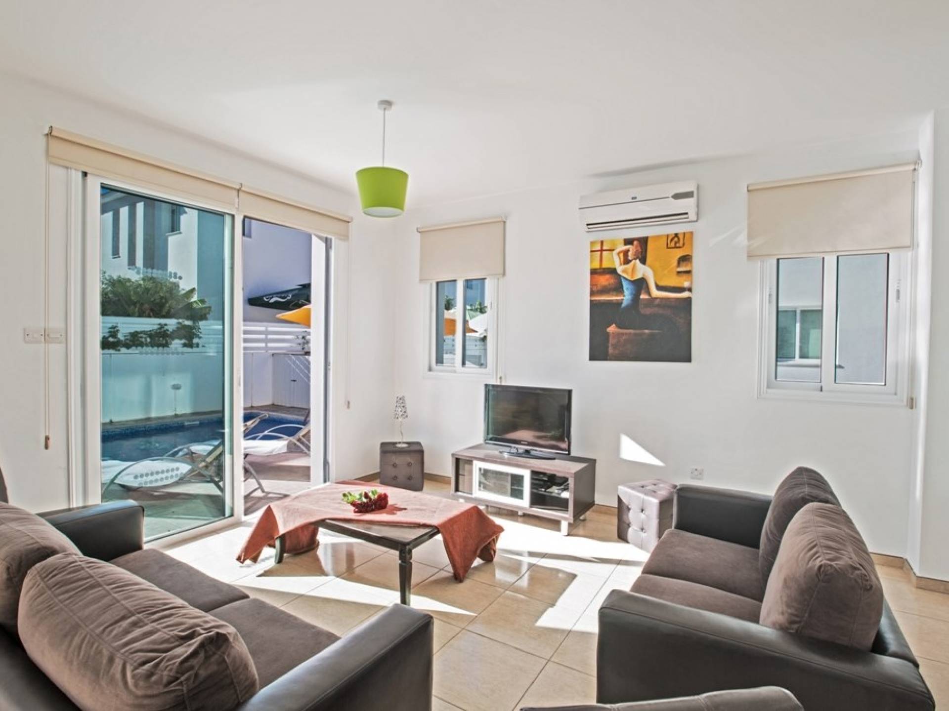 Villa Alexa Protaras ist eine Luxusvilla mit 3 Schlafzimmern und privatem Pool. Diese moderne Villa befindet sich in der Gegend von Ayia Triada, nur 500 m vom Strand von Mouzoura und 4 Autominuten vom Zentrum von Protaras und dem Strand von Fig Tree Bay entfernt. Die Villa ist mit allem ausgestattet, was Sie für einen erholsamen Urlaub benötigen.