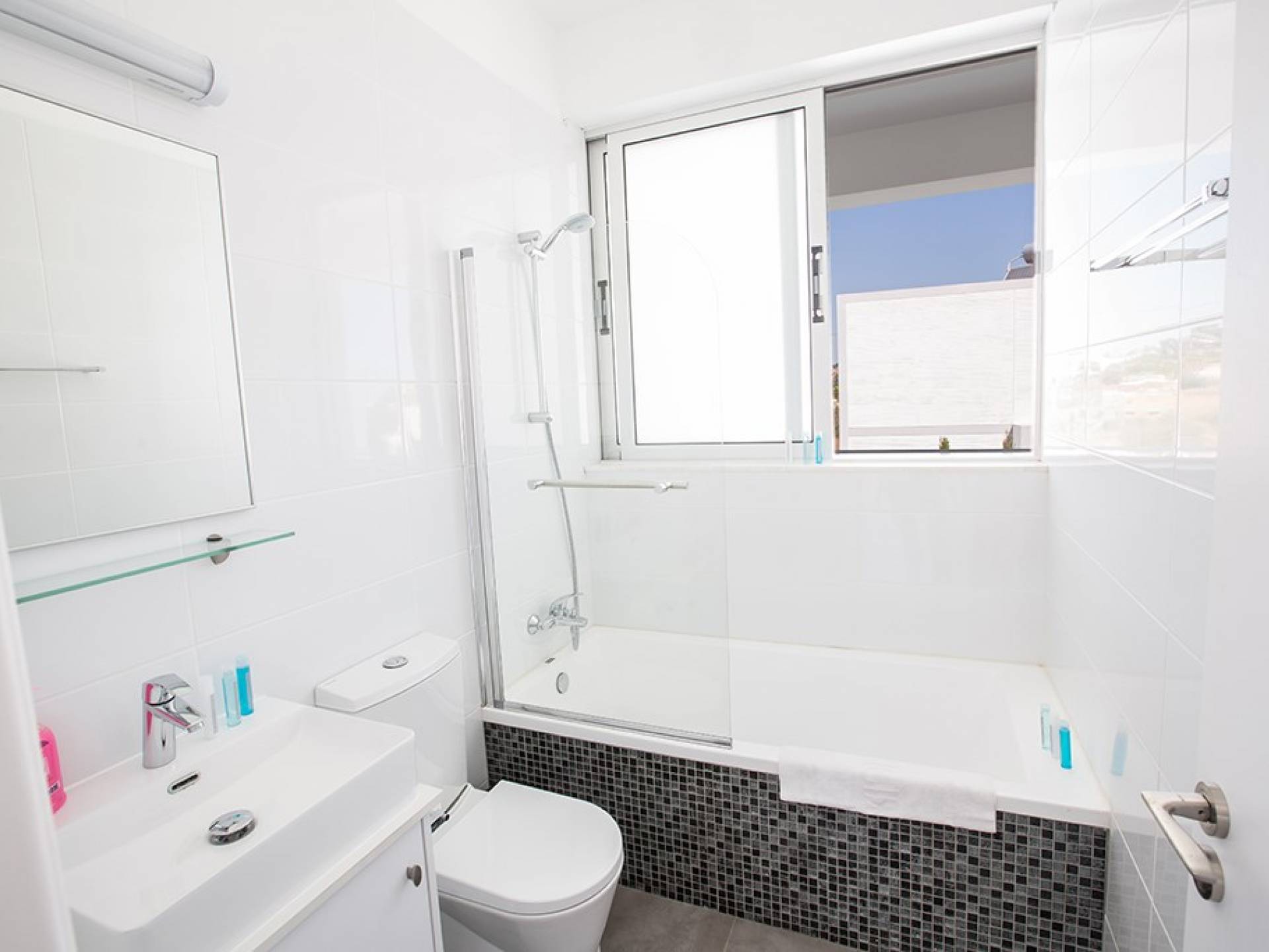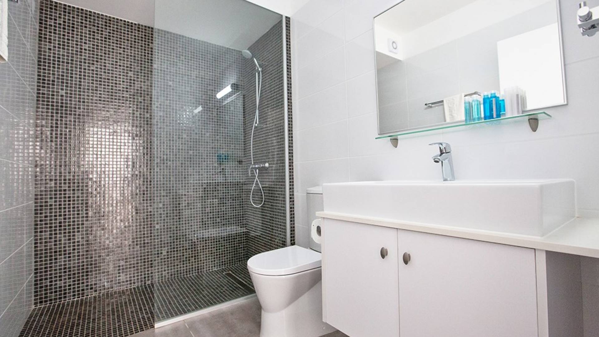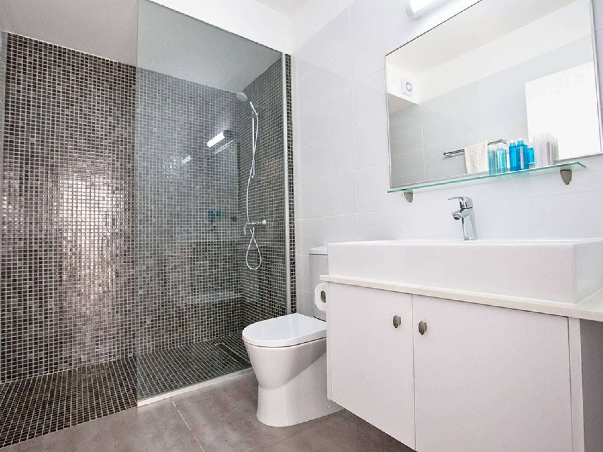 Unten im Untergeschoss befinden sich 2 Schlafzimmer mit Tageslicht und ein Duschbad mit WC, dieser Bereich ist über eine separate Eingangstür zugänglich. Im Obergeschoss verfügen die Villen über 2 weitere Schlafzimmer und ein Familienbadezimmer mit Badewanne und Dusche. Es gibt auch einen großen Außenbalkon auf dieser Etage, der ideal ist, um die späte Nachmittagssonne zu genießen.