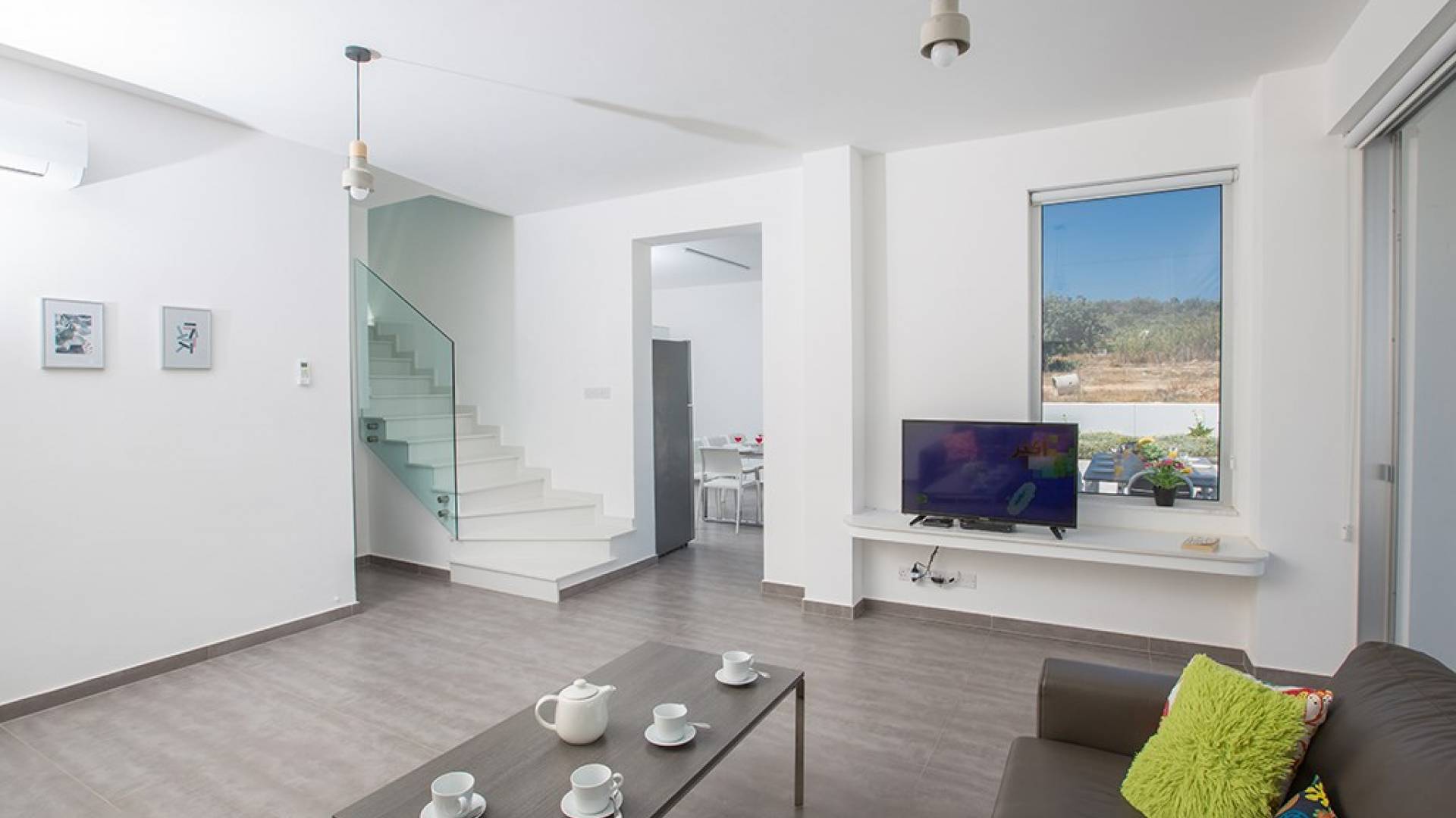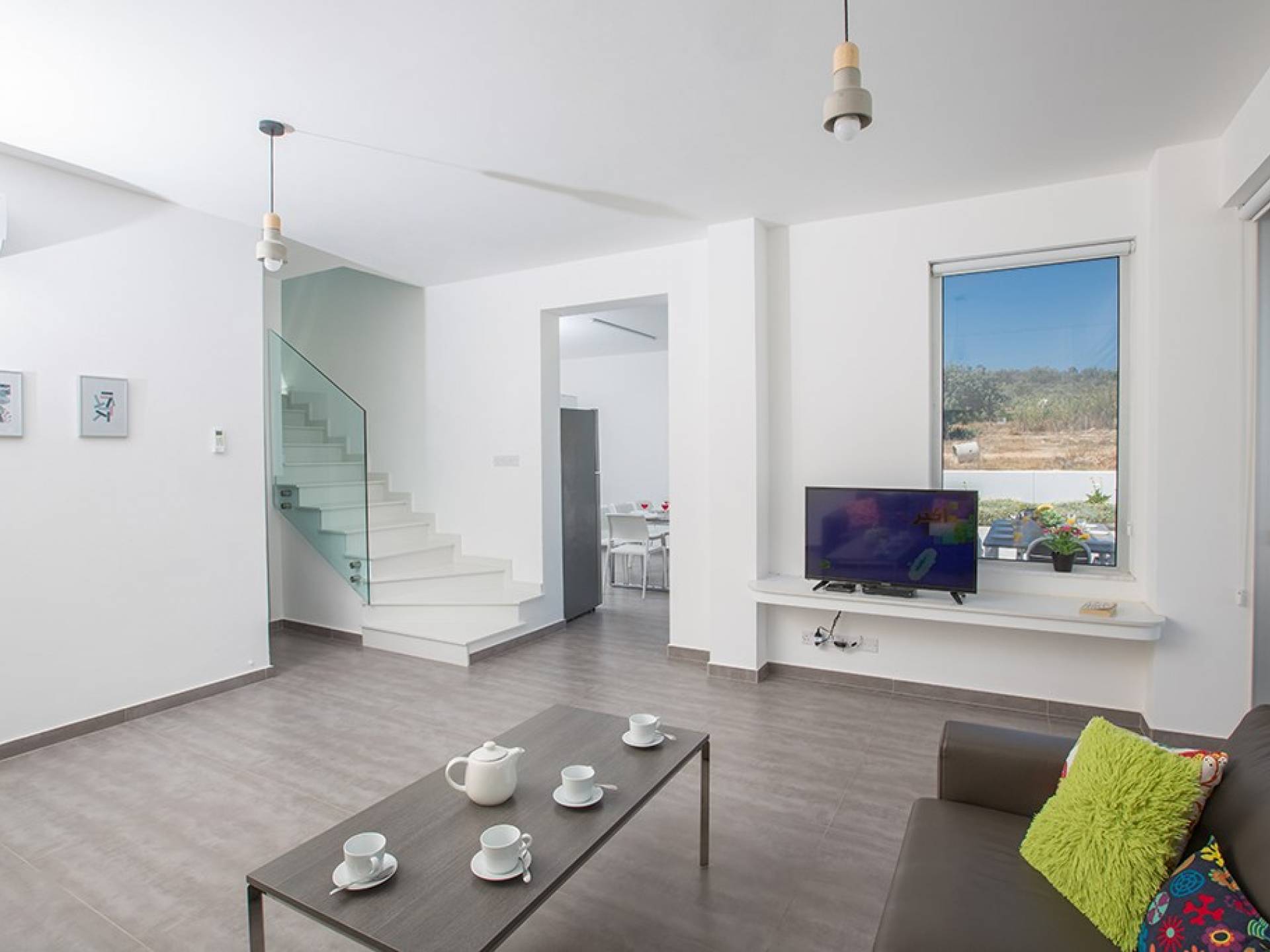 Die Villa erstreckt sich über drei Ebenen. Das Erdgeschoss verfügt über einen geräumigen Wohn-, Ess- und Küchenbereich mit Terrassentüren, die zum Poolbereich führen. Die Möbel und das Dekor sind zeitgemäß und stilvoll und die moderne Küche ist komplett mit allem ausgestattet, was für einen komfortablen Selbstversorger-Aufenthalt benötigt wird. Ein Schlafzimmer und Duschbad mit w/k befindet sich ebenfalls auf dieser Etage.
