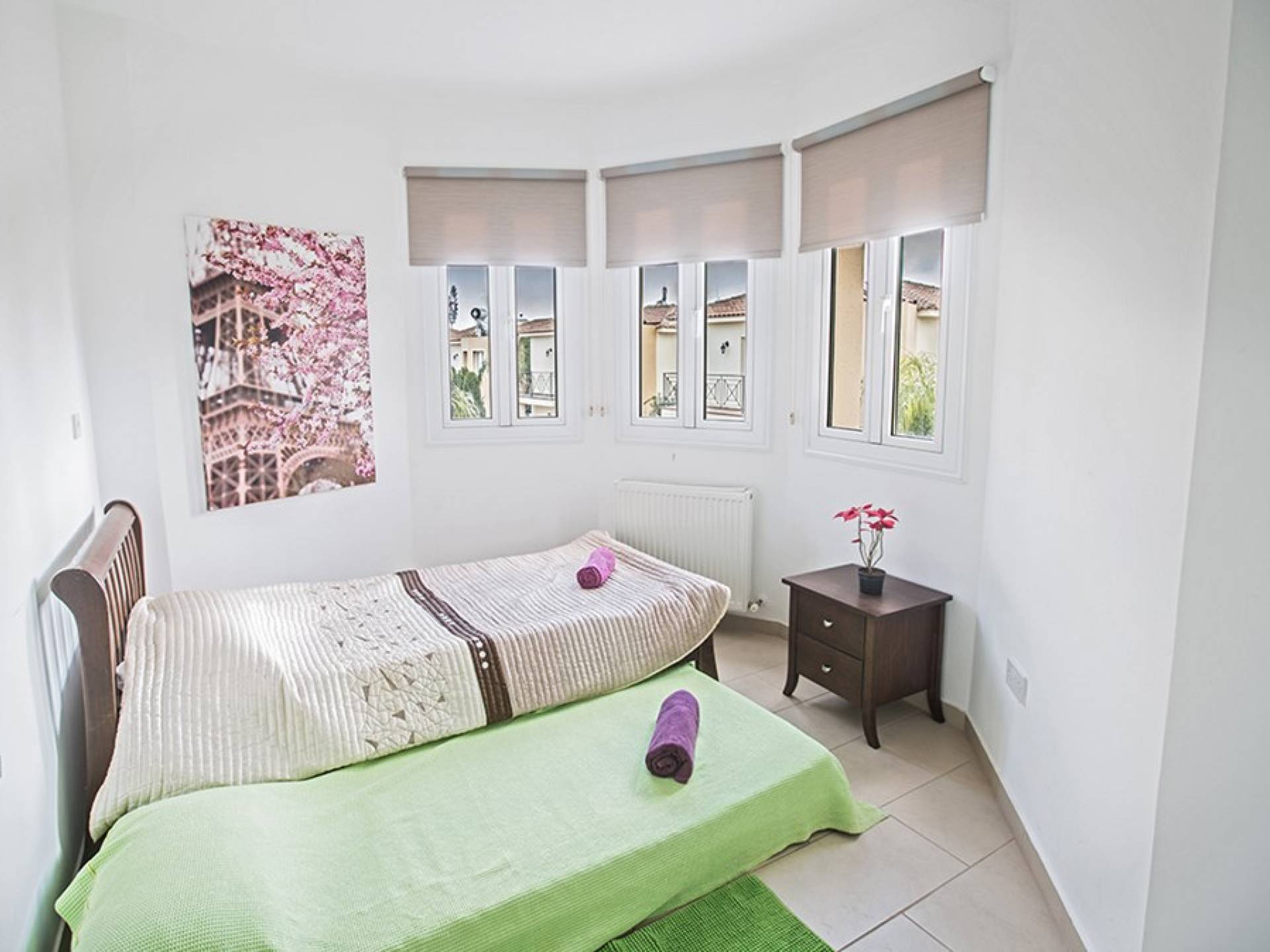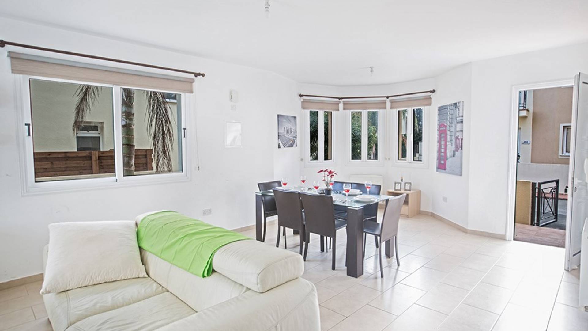Unten hat die Villa ein großes und modernes offenes Wohnzimmer, eine Küche und einen Essbereich. Das gemütliche Wohnzimmer verfügt über einen Breitbild-TV mit Satellitenempfang, der Essbereich bietet Platz für 6 Personen und die Küche ist komplett mit allen Geräten ausgestattet. Es gibt auch ein W/C im Erdgeschoss. Im Obergeschoss befinden sich drei Schlafzimmer und das Hauptbadezimmer. Das Hauptschlafzimmer hat ein eigenes Badezimmer mit Stand-in-Dusche und W/C. Das zweite Schlafzimmer hat ein Doppelbett und das dritte Schlafzimmer hat zwei Einzelbetten. Alle Schlafzimmer haben Einbauschränke und Nachttische. Das Hauptbadezimmer hat eine Badewanne, Dusche und W/C.