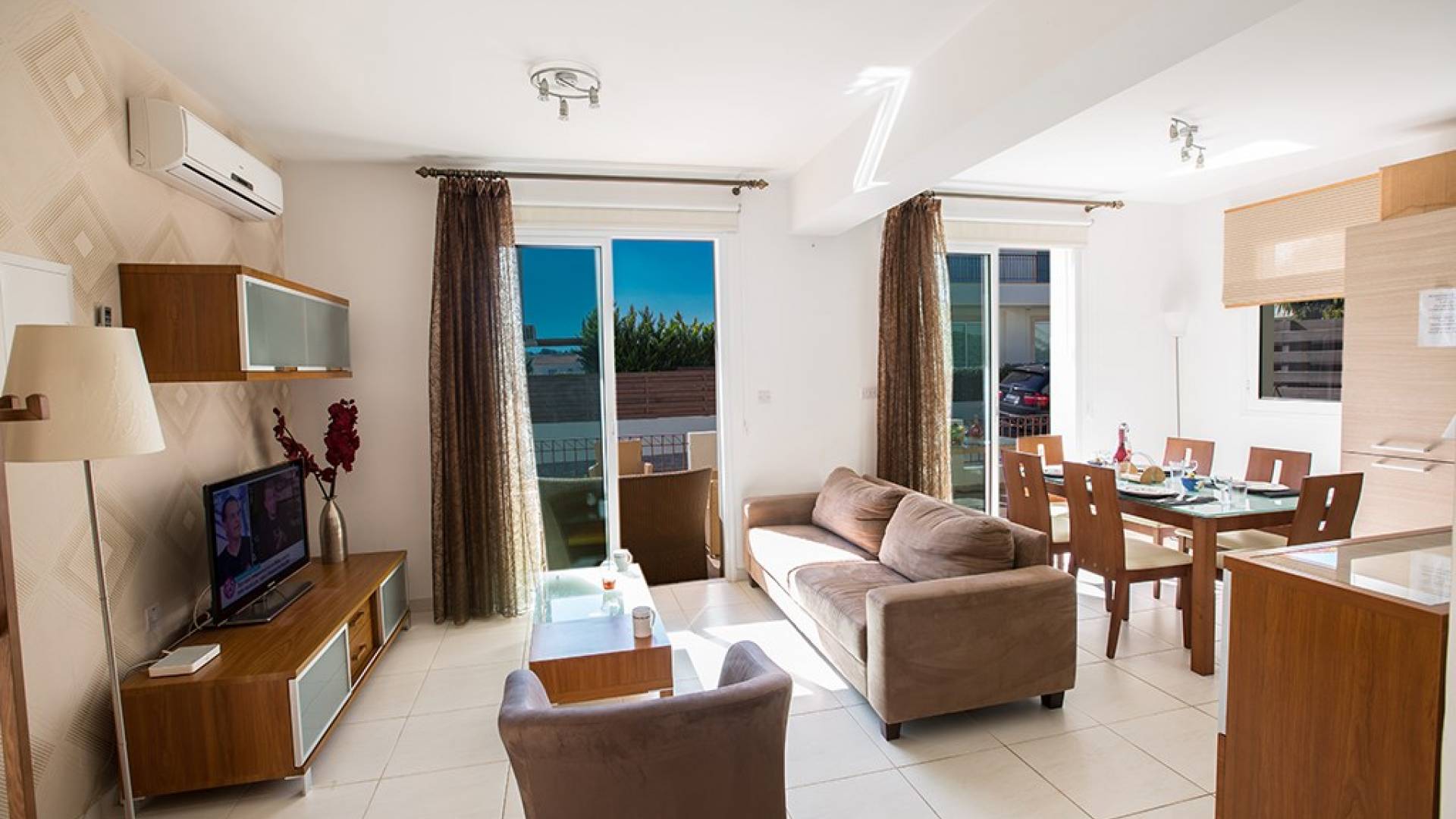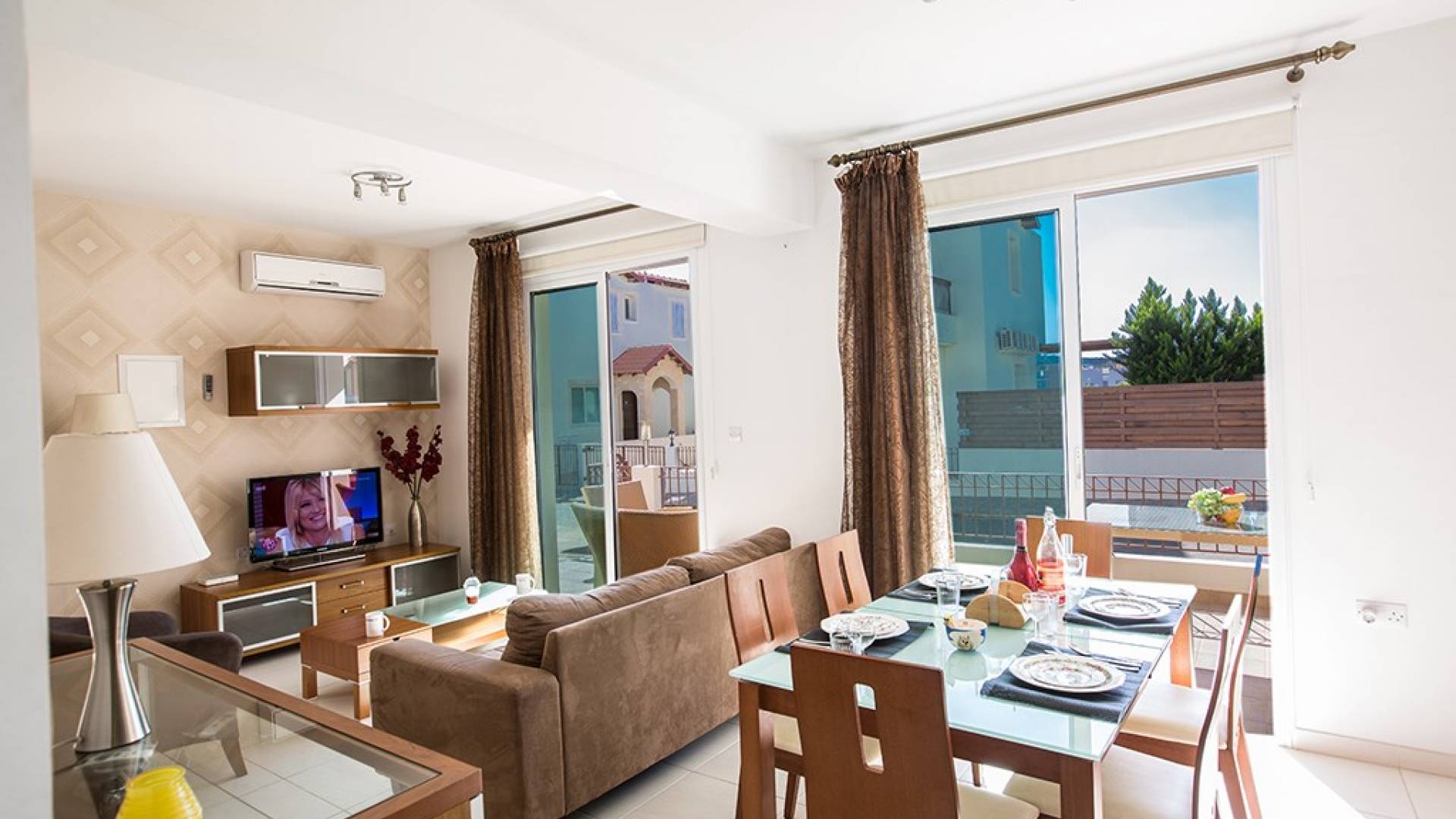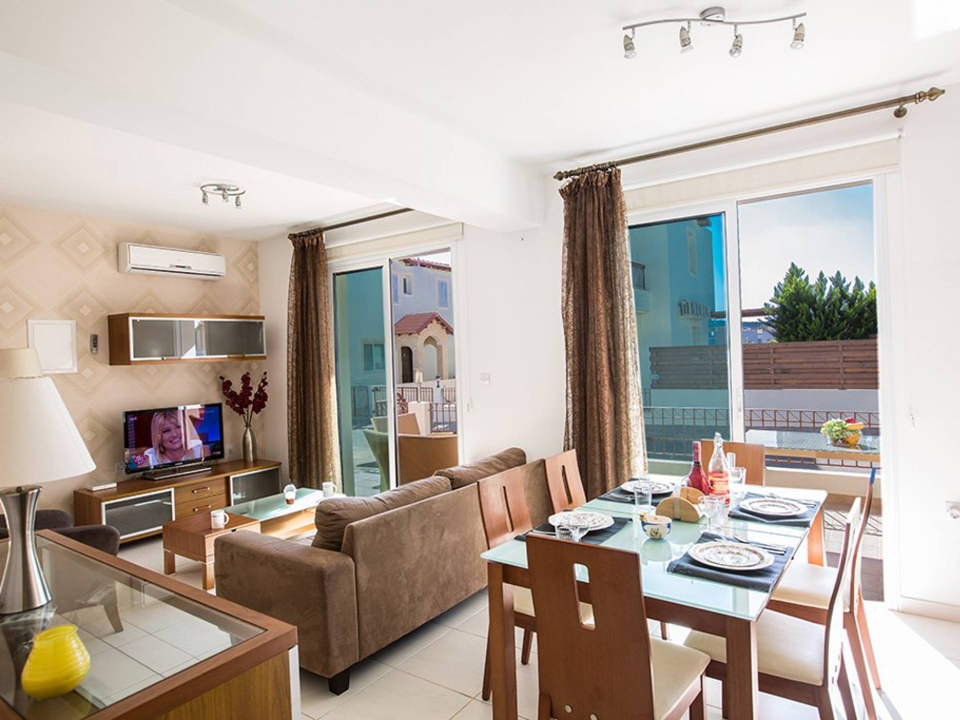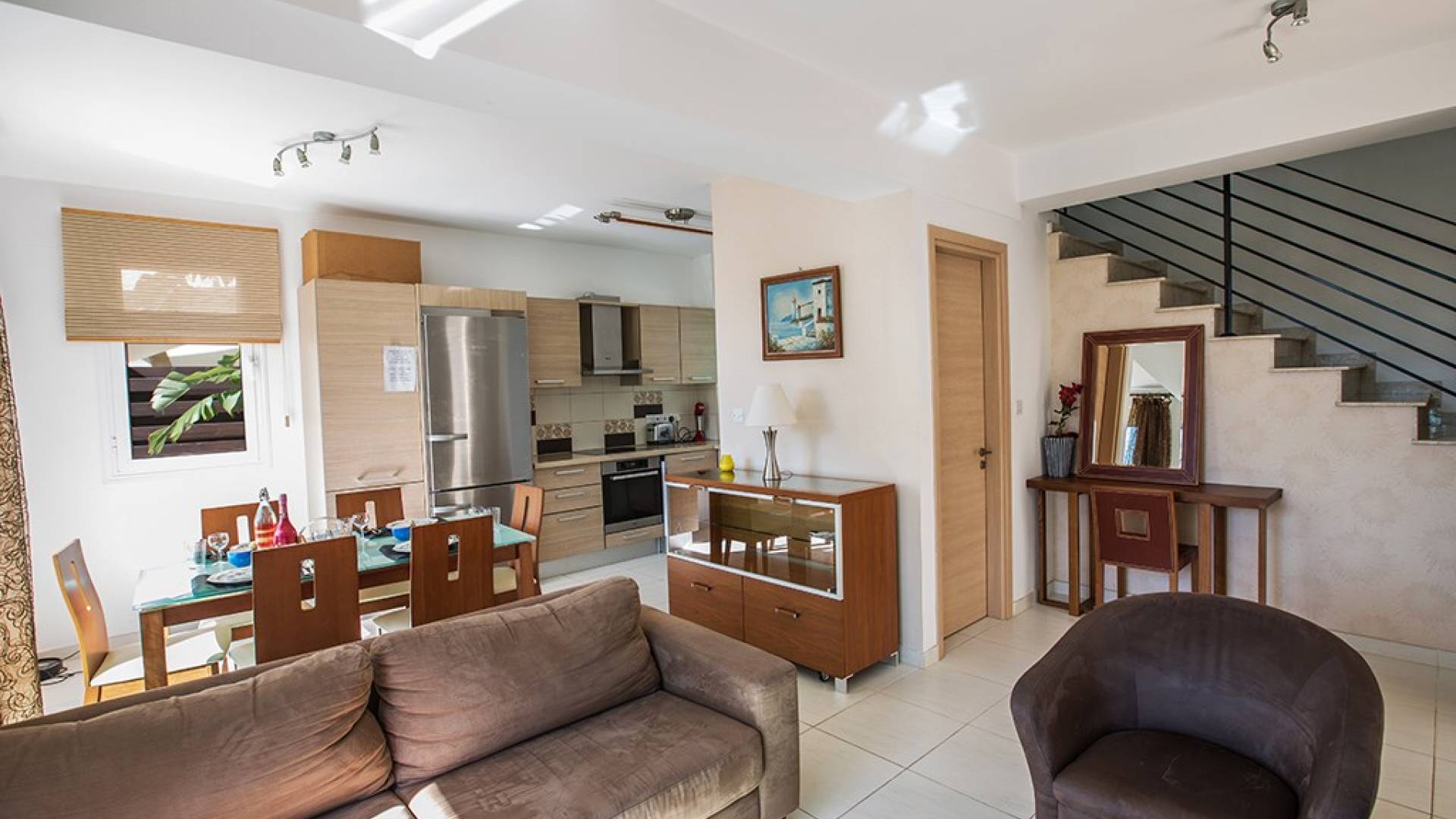 Wenn Sie die Villa betreten, finden Sie das moderne und gepflegte offene Wohnzimmer, den Essbereich und die Küche. Das Wohnzimmer verfügt über einen komfortablen Sitzbereich mit Breitbild- und Satellitenfernsehen (IPTV mit kostenlosem Video on Demand). Der Essbereich verfügt über einen Tisch und Stühle für 6 Personen und die Küche ist mit allen Geräten ausgestattet, die Sie für Ihren Selbstversorgerurlaub benötigen. Auf dieser Etage befindet sich auch ein WC.
