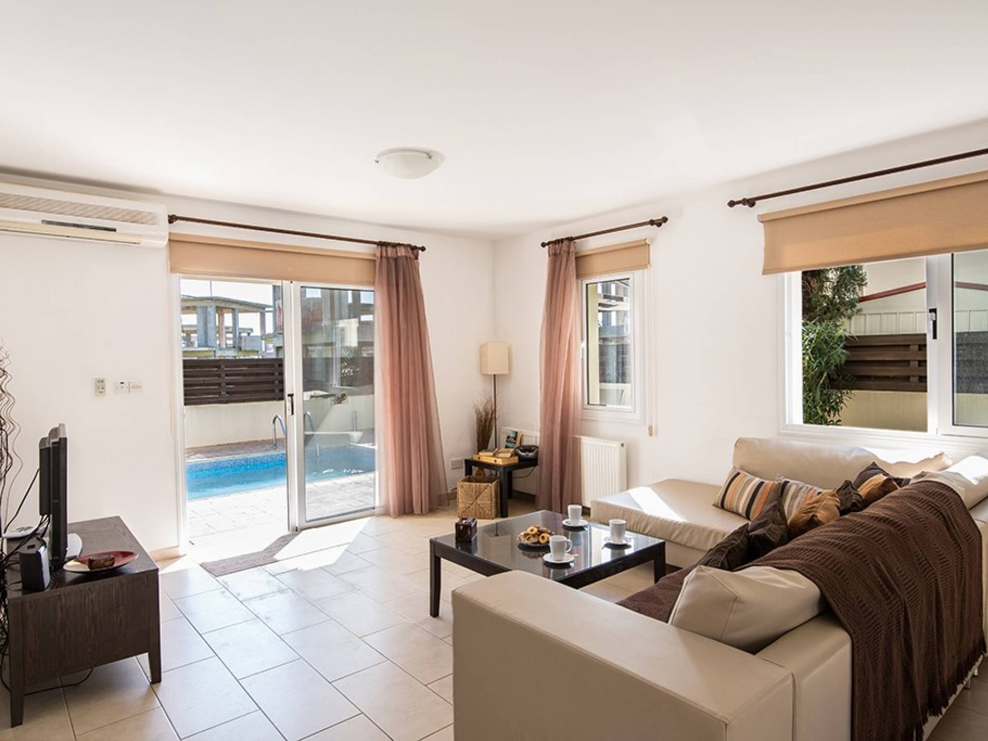 Die Annehmlichkeiten der Luxusmiete decken selbst den anspruchsvollsten Besucher ab und bieten allen Komfort, den man in einer modernen Luxusresidenz erwarten würde. Von der voll ausgestatteten Küche bis zu den geräumigen und klimatisierten Zimmern wurde alles entworfen und geschaffen, um Ihnen einen unvergesslichen Aufenthalt zu bieten. Lassen Sie die Türen und Fenster offen, um die herrliche Sonne zu genießen, die das Haus durchflutet. Weniger als 5 Gehminuten vom Strand von Kalamies und dem Zentrum des Ferienortes entfernt, ist diese Gegend von Pernera ein idealer Ausgangspunkt, um die Gegend zu erkunden. Eine große Auswahl an Restaurants, Bars und Geschäften sind leicht zu erreichen und das Zentrum von Protaras ist nur 2 Autominuten entfernt.