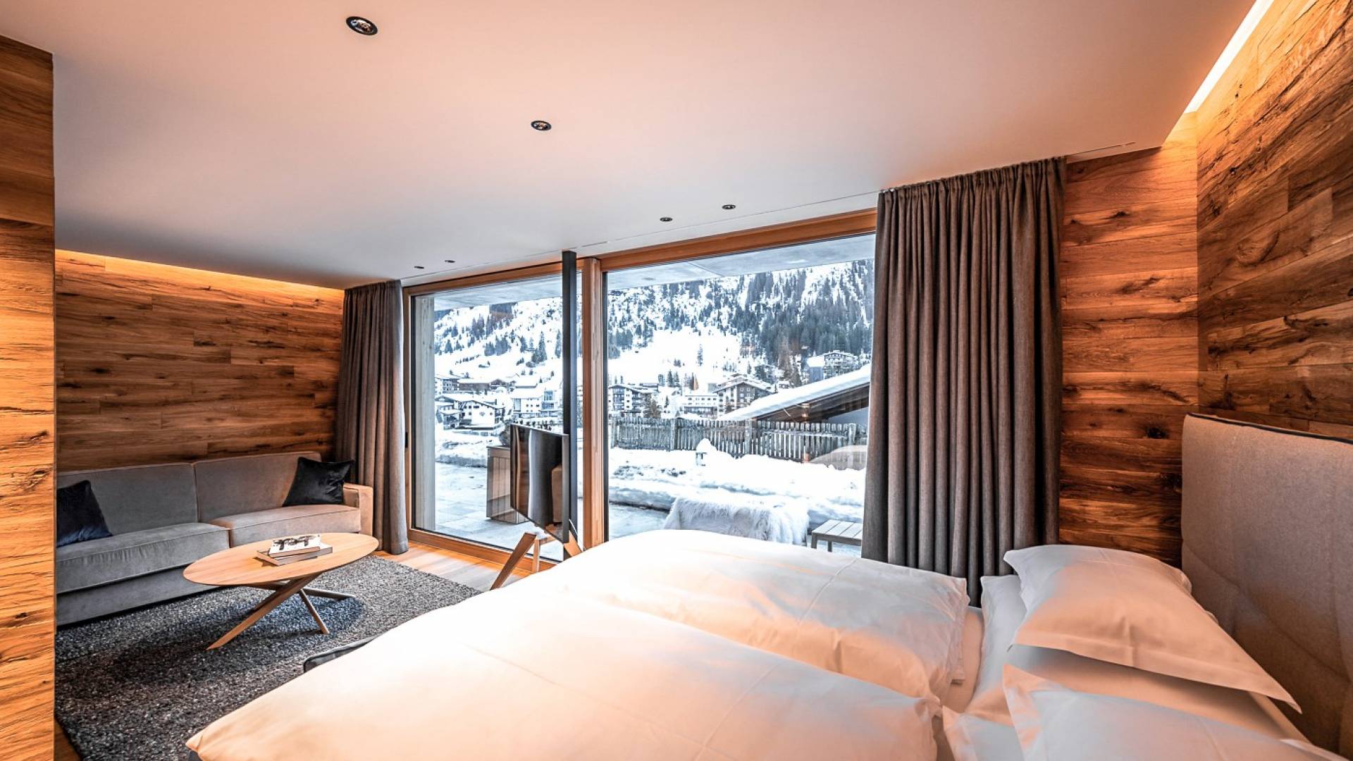 Μια μοναδική συμβίωση παράδοσης και σύγχρονων επιρροών με περισσότερο από 300m² χώρο διαβίωσης και υψηλής ποιότητας εσωτερικό ντιζάιν με vintage και ντιζάιν έπιπλα Η σουίτα διαθέτει 2 δίκλινα υπνοδωμάτια συν μια κύρια σουίτα και 65m² σαλόνι και τραπεζαρία, με τζάκι, τραπεζαρία, μεγάλος καναπές και μπαρ, καθώς και υπαίθριο καθιστικό με δυτικό προσανατολισμό, ιδιωτικός χώρος σπα με σάουνα, ατμόλουτρο και χώρος χαλάρωσης Επίσης, διαθέτει αίθουσα πάρτι με μπαρ, βελάκια, επιτραπέζιο ποδόσφαιρο, φλίπερ, σύστημα πολυμέσων και ιδιωτικό κινηματογράφος και είναι κοντά στο κέντρο και τις πλαγιές στο ηλιόλουστο Tannberg