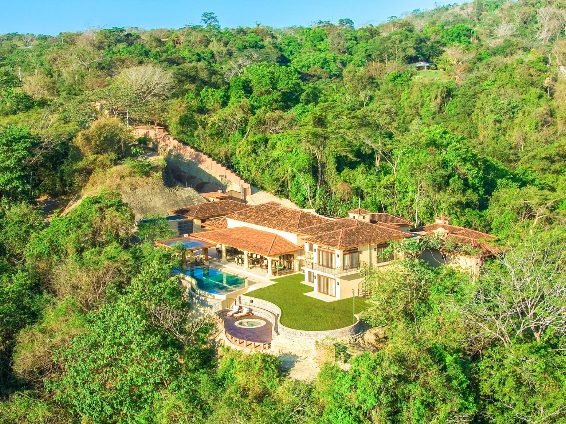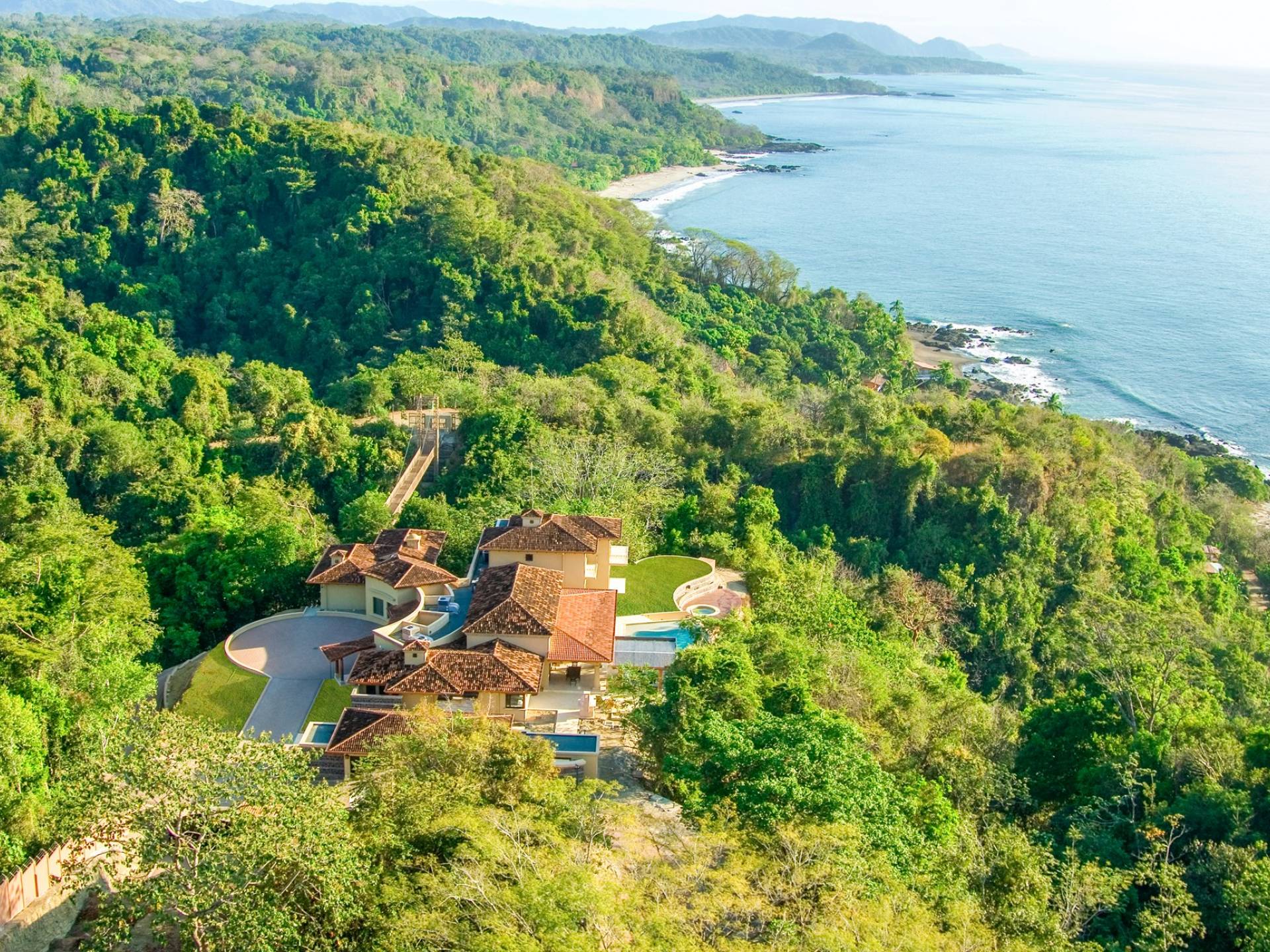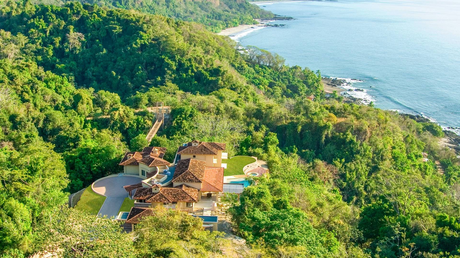 Το ιδιωτικό συγκρότημα στην κορυφή του βράχου αποτελείται από μια κύρια βίλα ισπανικού στιλ, γκαράζ, ελικοδρόμιο, πισίνα και θερμαινόμενο σπα. και στάβλοι που βρίσκονται σε 13 καταπράσινα τροπικά στρέμματα της χερσονήσου Nicoya – γνωστή για τις παραλίες με τη λευκή άμμο, την άγρια ζωή και το εντυπωσιακό φυσικό περιβάλλον. Η ιδιωτική κρεμαστή γέφυρα 100 μέτρων σχεδιάστηκε για να παρέχει στους επισκέπτες μια συντόμευση από τη Βίλα στους μποέμ δρόμους της Μοντεζούμα. Η Villa Paraiso Montezuma κάνει ένα εξαιρετικό στοίχημα για οικογενειακές διακοπές, ένα καταφύγιο γιόγκα, ένα καταφύγιο μαγειρικής ή μια ειδική εκδήλωση όπως ένας γάμος. Σε ολόκληρο το κατάλυμα υπάρχει δορυφορικό internet υψηλής ταχύτητας, καθιστώντας τη βίλα το κατάλληλο μέρος και για ένα εταιρικό καταφύγιο.
