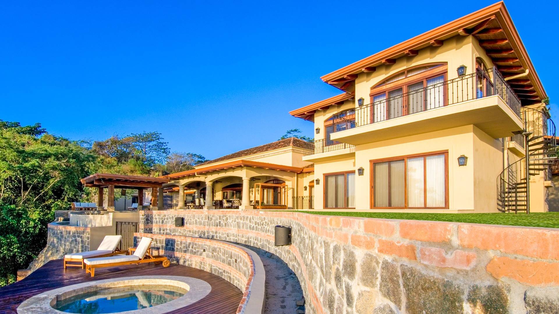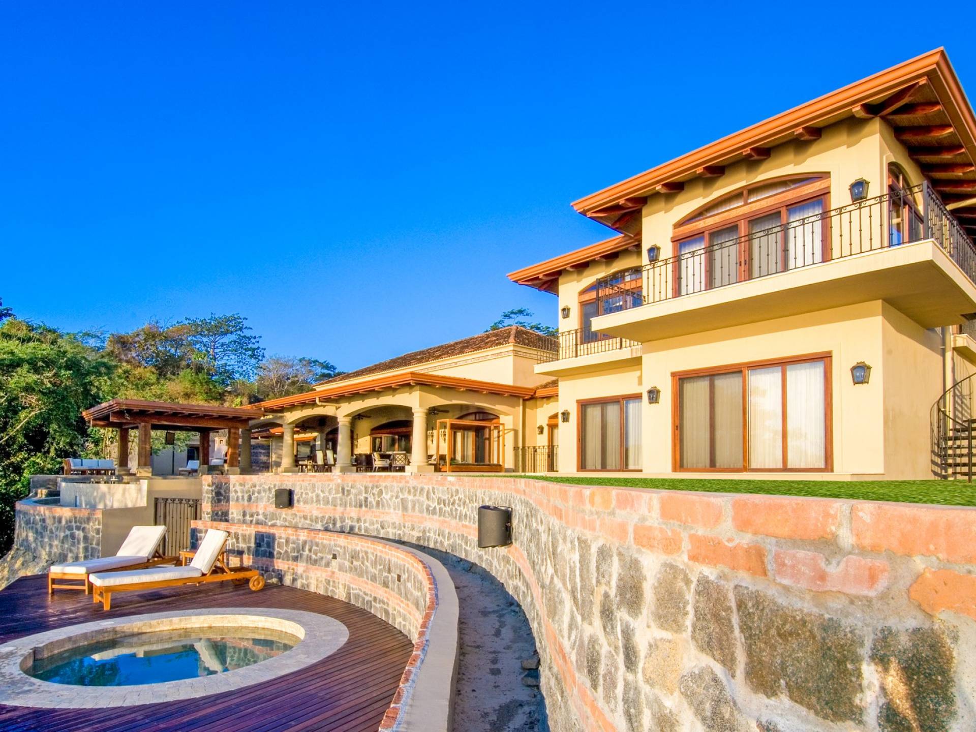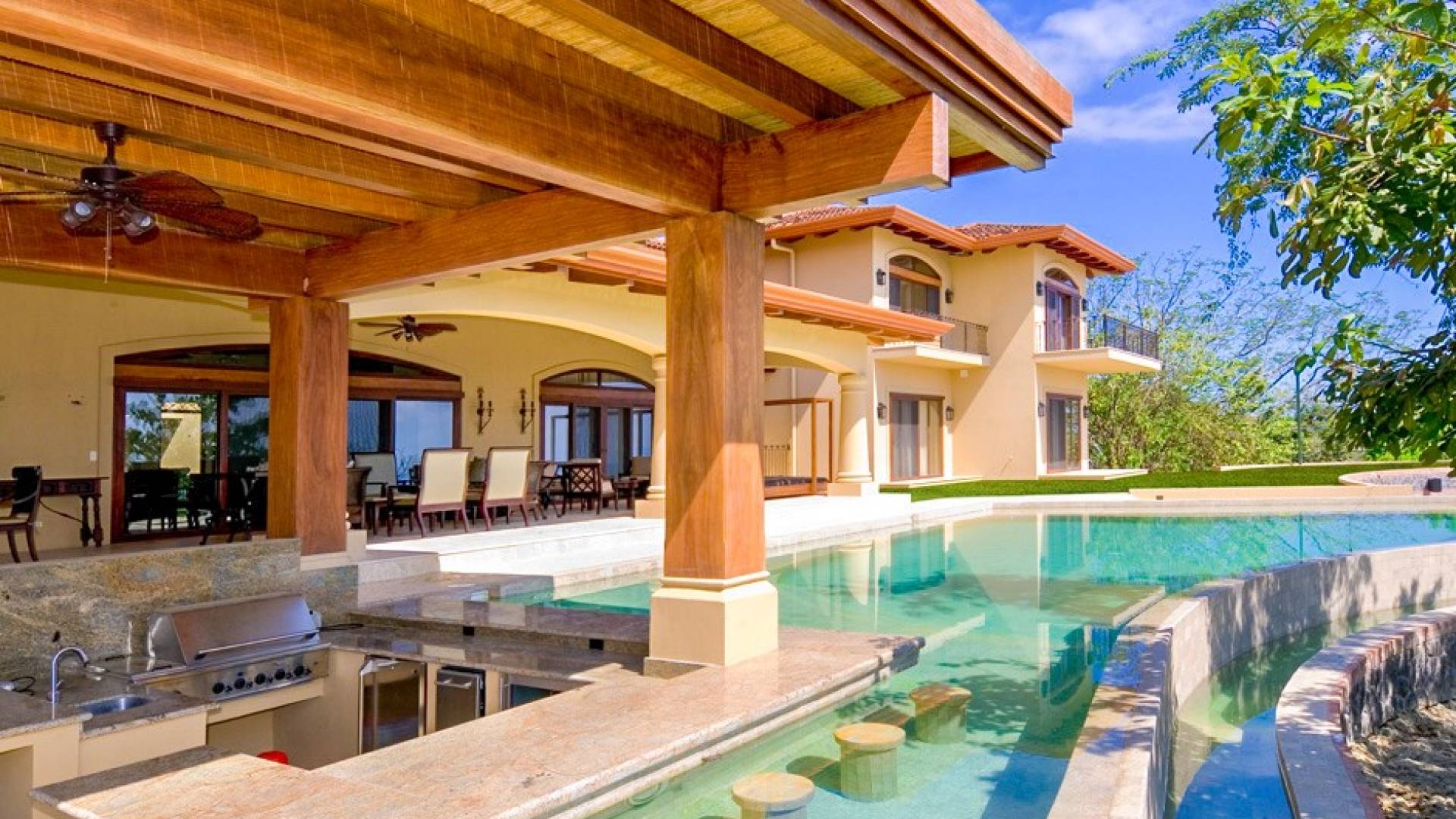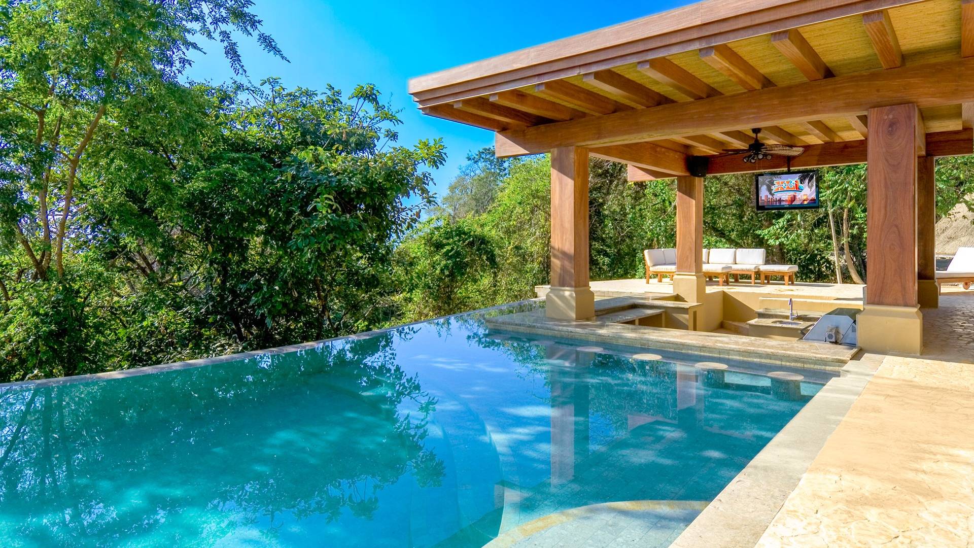 Σε αυτόν τον υπαίθριο χώρο αναψυχής, η πισίνα υπερχείλισης με το swim-up bar την οδηγεί στο επόμενο επίπεδο. Με μπάρμπεκιου και τηλεόραση που βρίσκεται μέσα στο wet bar/εξωτερική κουζίνα, μπορείτε να απολαύσετε μπίρα και μπιφτέκια ενώ βυθίζεστε στην πισίνα. Θα βρείτε επίσης έναν ξυλόφουρνο που είναι τέλειος για την ώρα της πίτσας. Απολαύστε μια προπόνηση, γιόγκα ή μασάζ στο γυμναστήριο που βρίσκεται στρατηγικά τοποθετημένο στην κορυφή ενός δραματικού βράχου 100 μέτρων για ανεμπόδιστη θέα στον Ειρηνικό Ωκεανό 180 μοιρών.