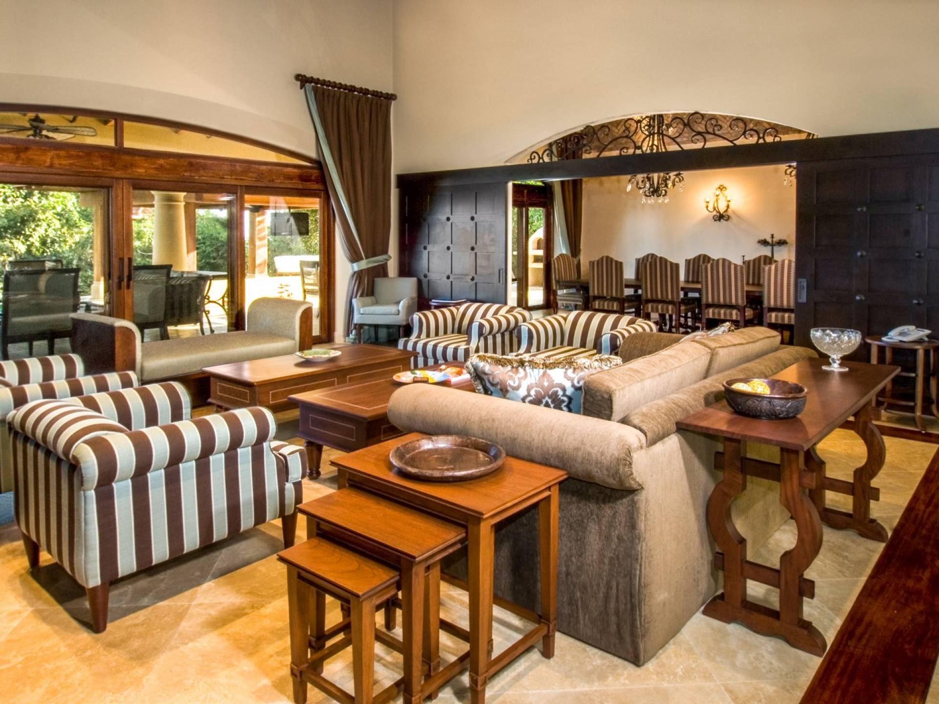Τα κύρια δωμάτια είναι όλα ευρύχωρα και όμορφα σχεδιασμένα, παρέχοντας απρόσκοπτη εσωτερική/εξωτερική διαβίωση. Το σαλόνι ρέει απρόσκοπτα στην επίσημη τραπεζαρία και στη βεράντα και την πισίνα/σπα. Η εντυπωσιακή αίθουσα home theater θα την κάνει μια αξέχαστη κινηματογραφική βραδιά. Στο εσωτερικό, θα βρείτε επίσης μια μονάδα οικιακής ψυχαγωγίας, ηχοσύστημα και Wi-Fi.