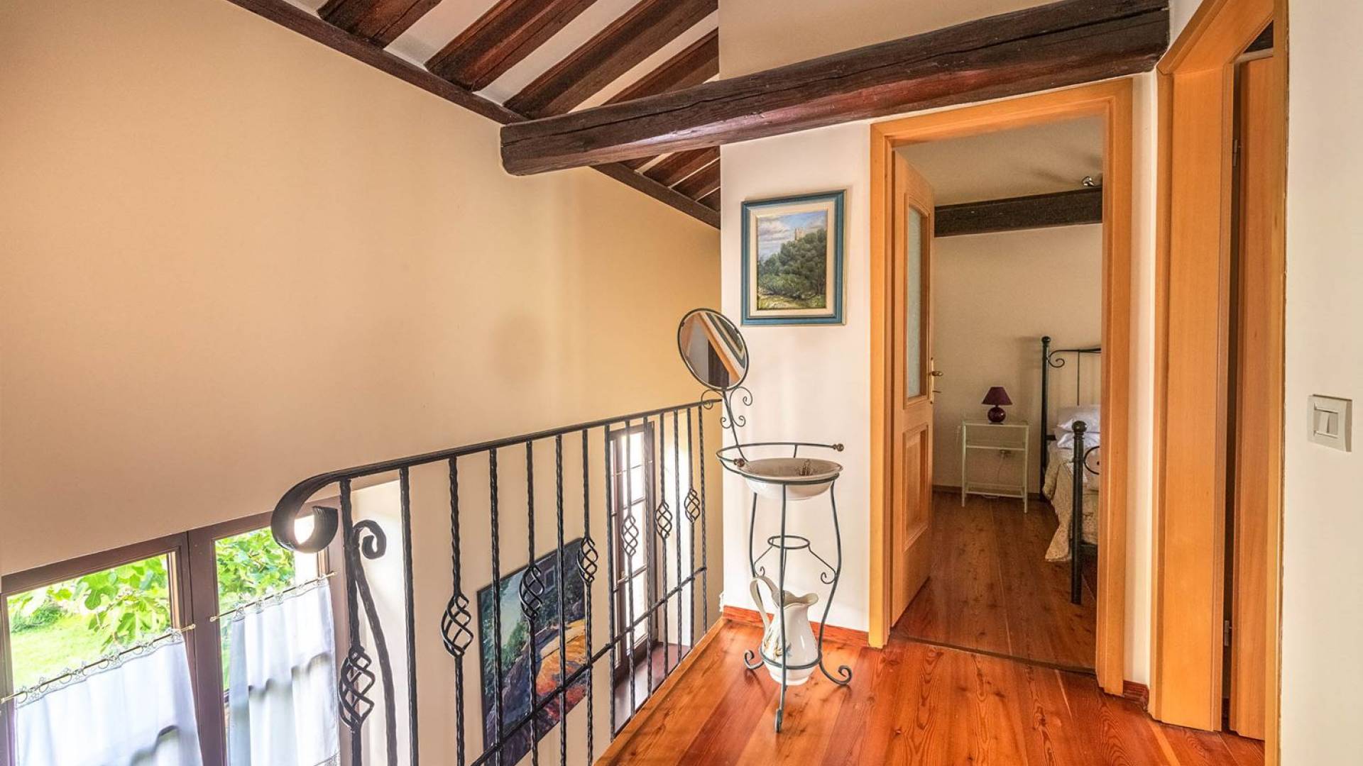 Ο επάνω όροφος αποτελείται από δύο υπνοδωμάτια, το ένα με διπλό κρεβάτι και το άλλο με διπλό κρεβάτι. Από τον 2ο όροφο, μπορείτε να έχετε πρόσβαση στο χαγιάτι της βίλας, εξοπλισμένο με έπιπλα εξωτερικού χώρου σαλονιού και μια αιώρα, η οποία έχει θέα στους αμπελώνες και τους κήπους της ιδιοκτησίας. Το χαγιάτι είναι επίσης προσβάσιμο από τον κήπο με μια εξωτερική πέτρινη σκάλα.
