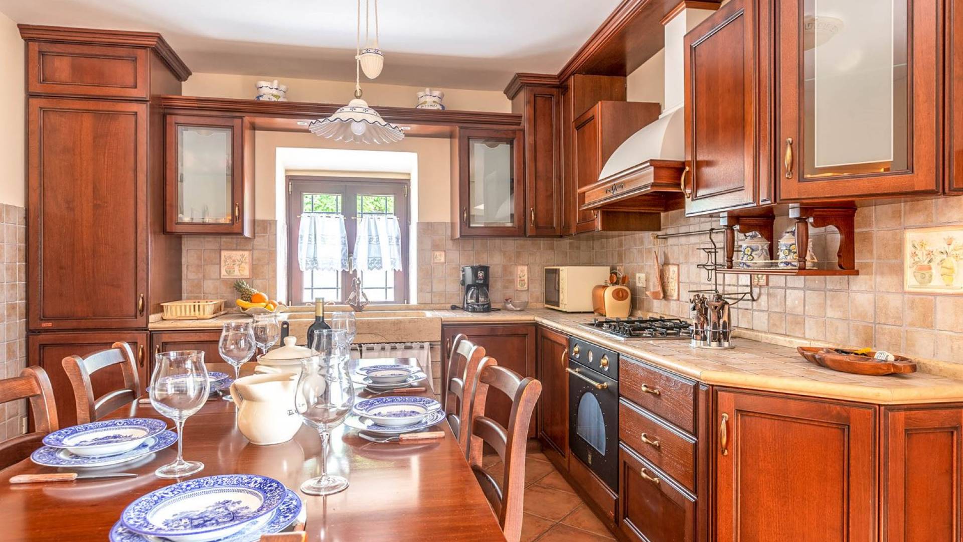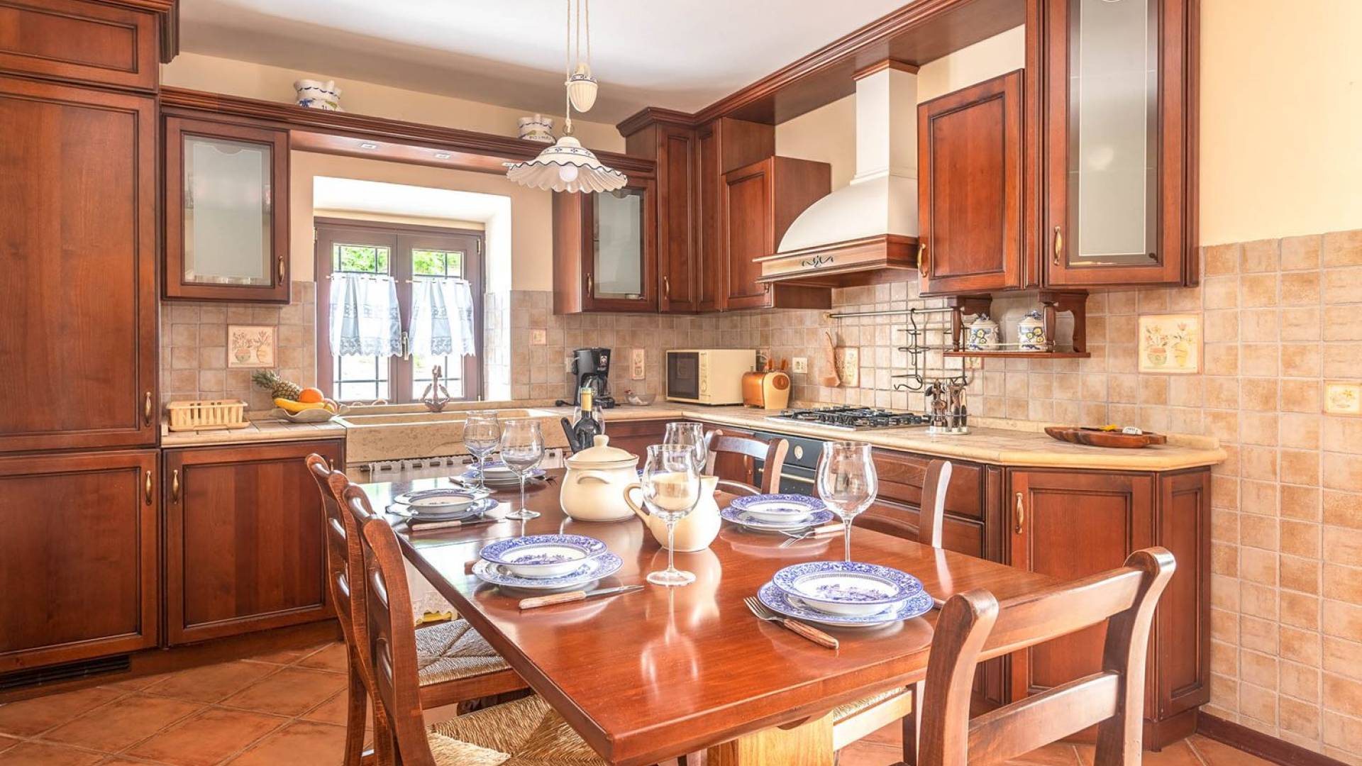 Μπαίνοντας στο σπίτι, θα βρεθείτε σε μια πλήρως εξοπλισμένη κουζίνα (μαγειρικά σκεύη, φούρνος, ψυγείο, ηλεκτρική κουζίνα, φούρνος μικροκυμάτων, παροχές για τσάι, κ.λπ.…) Η κουζίνα και η τραπεζαρία βρίσκονται δίπλα για να κάνουν το σερβίρισμα και το φαγητό παιχνιδάκι. Συνδέεται με ένα ευρύχωρο σαλόνι με άνετα καθίσματα, εσωτερικό τζάκι, DVD player και τηλεόραση.