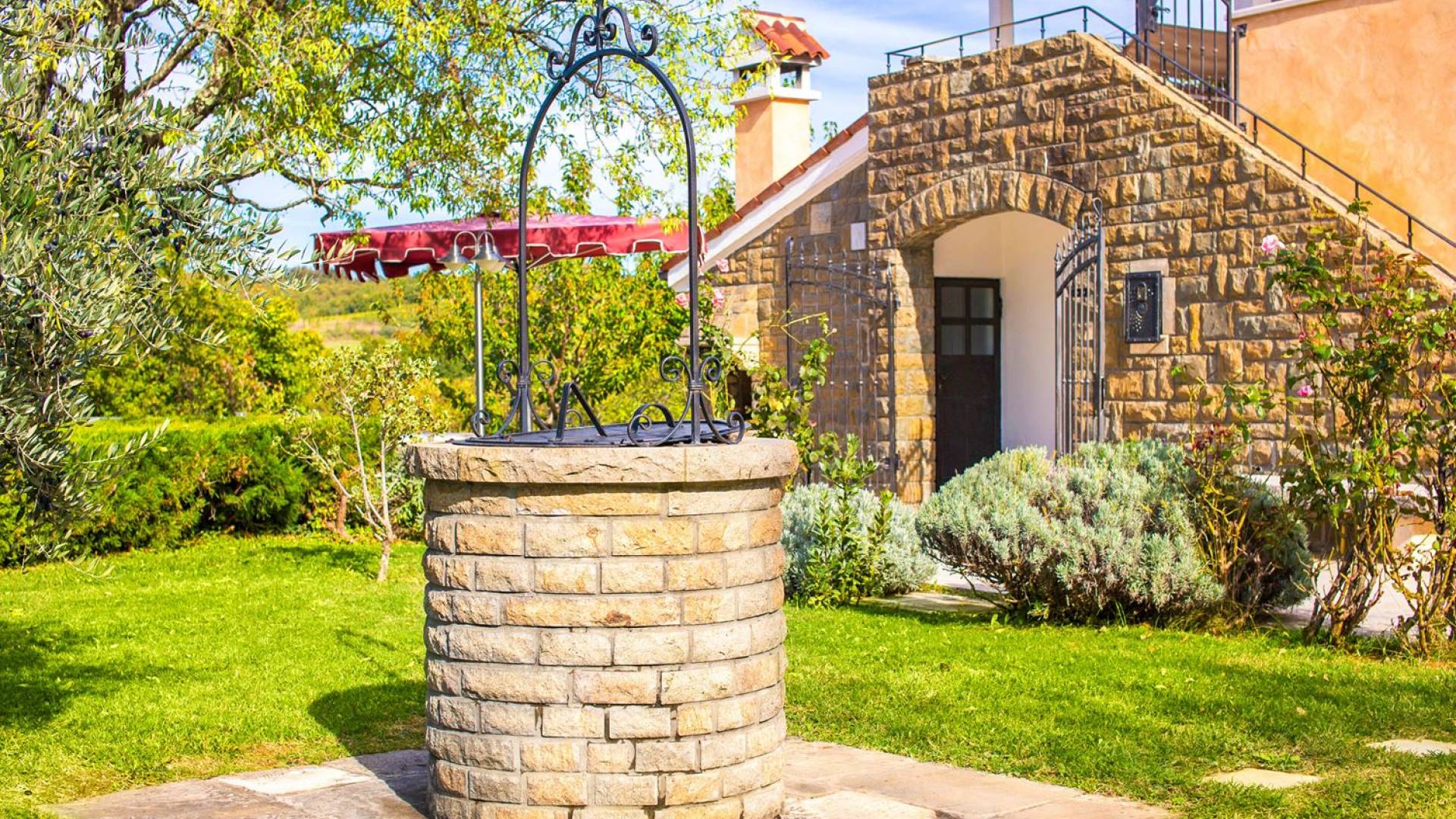 Έξω θα θελήσετε να επωφεληθείτε από την υπέροχη ηλιοφάνεια και τον γενναιόδωρο υπαίθριο χώρο. Ένα μεγάλο αίθριο φιλοξενεί μια υπαίθρια τραπεζαρία και εγκαταστάσεις μπάρμπεκιου. Υπάρχει εξωτερική πισίνα και ξαπλώστρες για τα τέλεια απογεύματα. Ο κήπος είναι ένα υπέροχο μέρος για να χαλαρώσετε καθώς με τα όρια του ελαιώνα του προσθέτουν ένα στοιχείο φυσικής γαλήνης. Ο κήπος 2.000μ2 της βίλας έχει θέα σε ένα από τα πιο διάσημα κροατικά οινοποιεία και είναι ιδανικό για να περάσετε αμέριμνες τις μέρες σας κάνοντας ηλιοθεραπεία και απολαμβάνοντας την εξωτερική πισίνα.