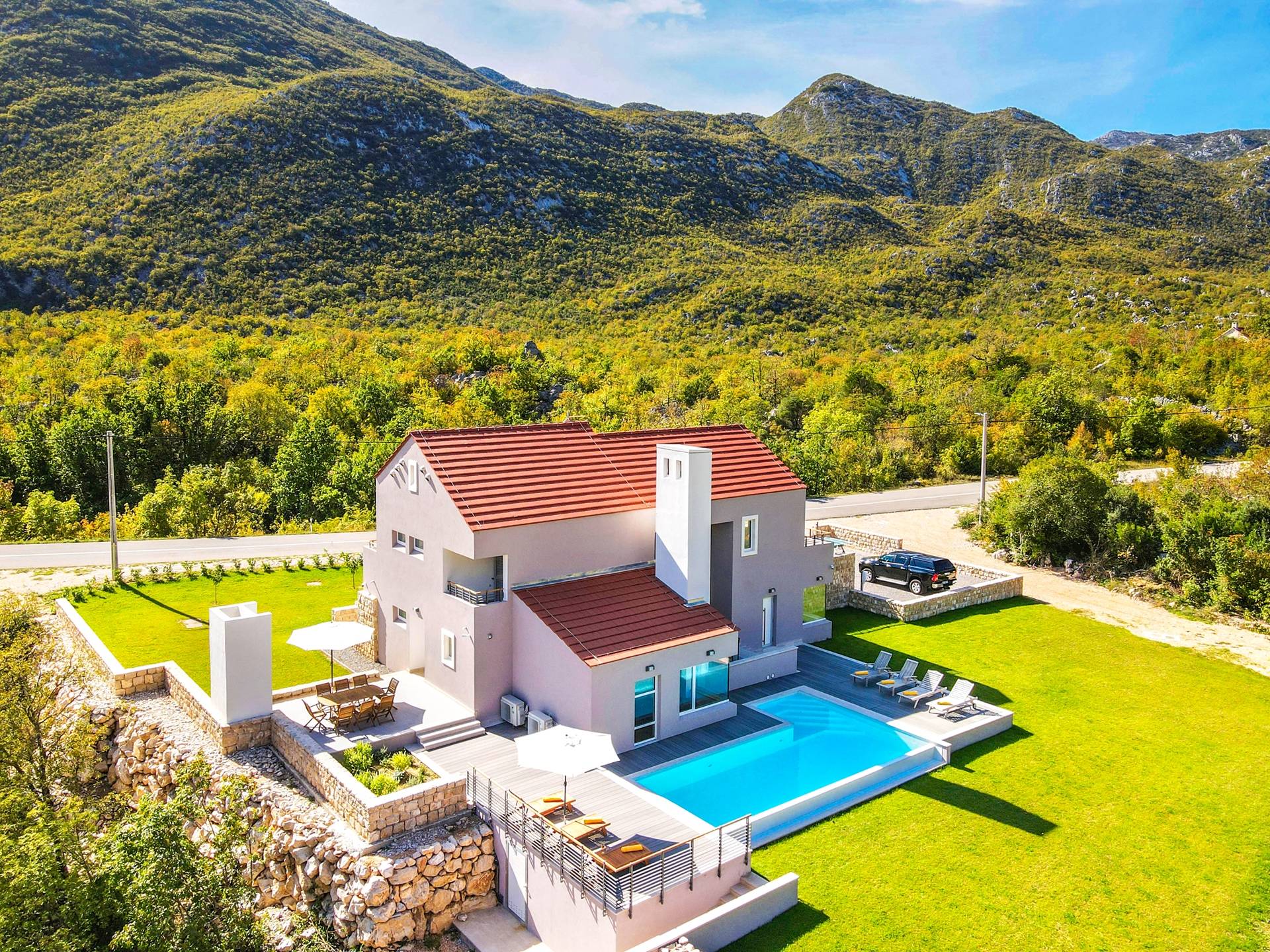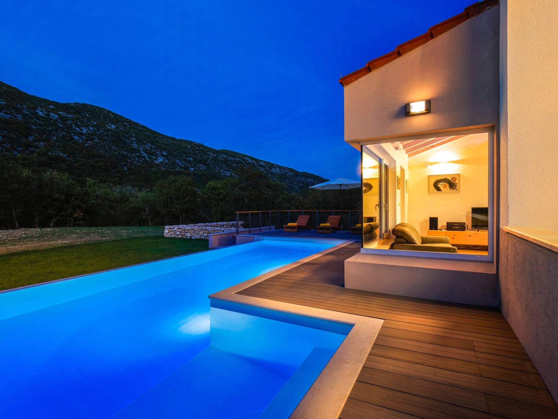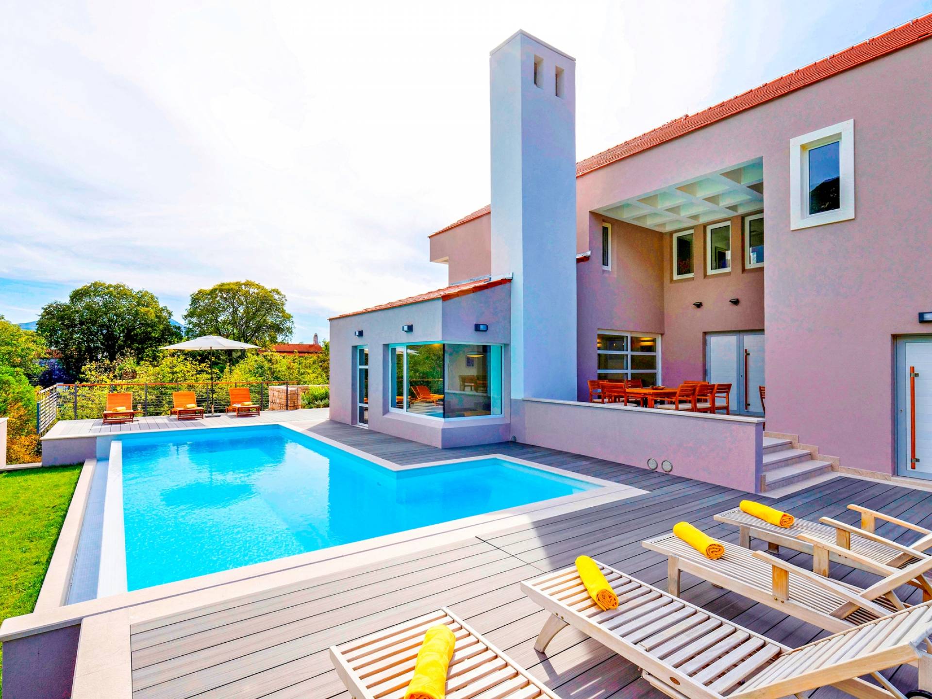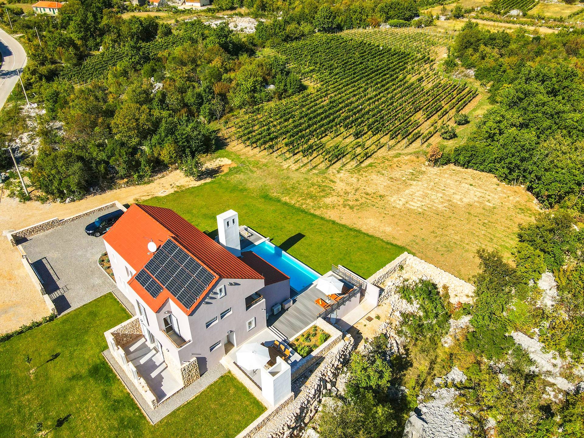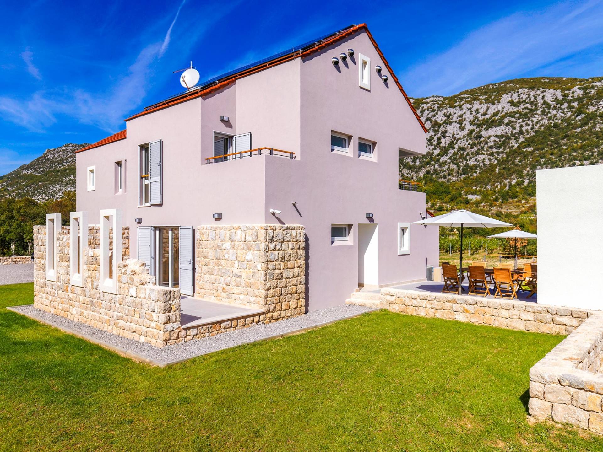Η Villa Jure χτίστηκε το 2020 και με την πρώτη ματιά στο εξωτερικό, θα παρατηρήσετε έναν τέλειο συνδυασμό της ωραιότερης αρχιτεκτονικής και της ανέγγιχτης φύσης. Λόγω της απομονωμένης τοποθεσίας του, μπορείτε να χαλαρώσετε ενώ κάνετε ηλιοθεραπεία και κολύμπι στη μεγάλη πισίνα υπερχείλισης μπροστά από τη βίλα. Για απόλυτη ευχαρίστηση, στον εξωτερικό χώρο, υπάρχει τζάκι με ψησταριά και έπιπλα τραπεζαρίας για να απολαύσετε την προετοιμασία νόστιμων δαλματικών σπεσιαλιτέ.