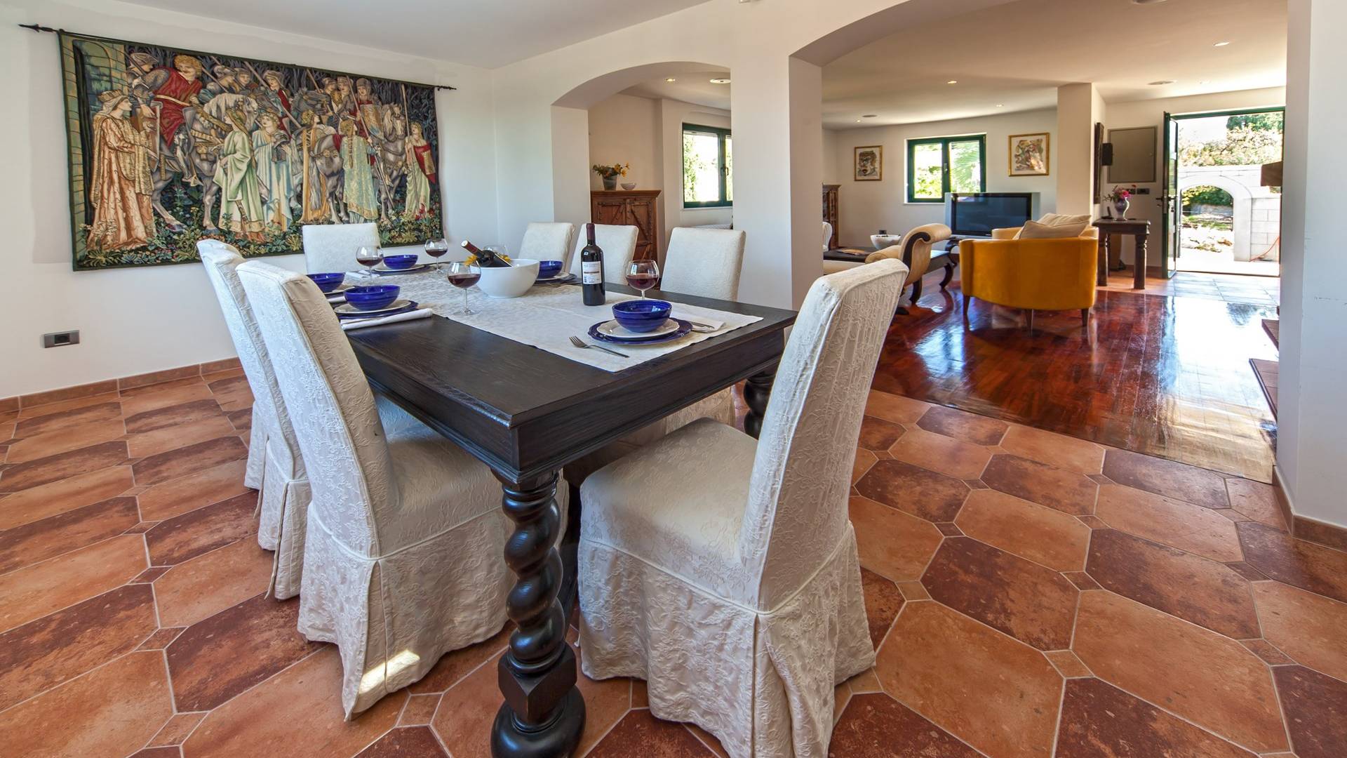 Η Villa Rasotica Brac προσφέρει άφθονο χώρο με έπιπλα που αντιπροσωπεύουν πραγματικά την πολυτέλειά της. Αυτή η βίλα σάς επιτρέπει να νιώσετε σαν βασιλιάδες με πολυτελή λουτρά, έπιπλα σαν θρόνο και έναν υπαίθριο χώρο όπου μπορείτε να απολαύσετε το κροατικό ηλιοβασίλεμα με το πέτρινο μπάρμπεκιου. Η κουζίνα και η τραπεζαρία είναι πλήρως επιπλωμένη για όλα όσα χρειάζεστε για να απολαύσετε το δείπνο με τα αγαπημένα σας πρόσωπα. Η τραπεζαρία μπορεί να χωρέσει έως και 8 άτομα, απολαμβάνοντας την αναγεννησιακή τέχνη στους τοίχους και την εντυπωσιακή θέα από τα μεγάλα παράθυρα.