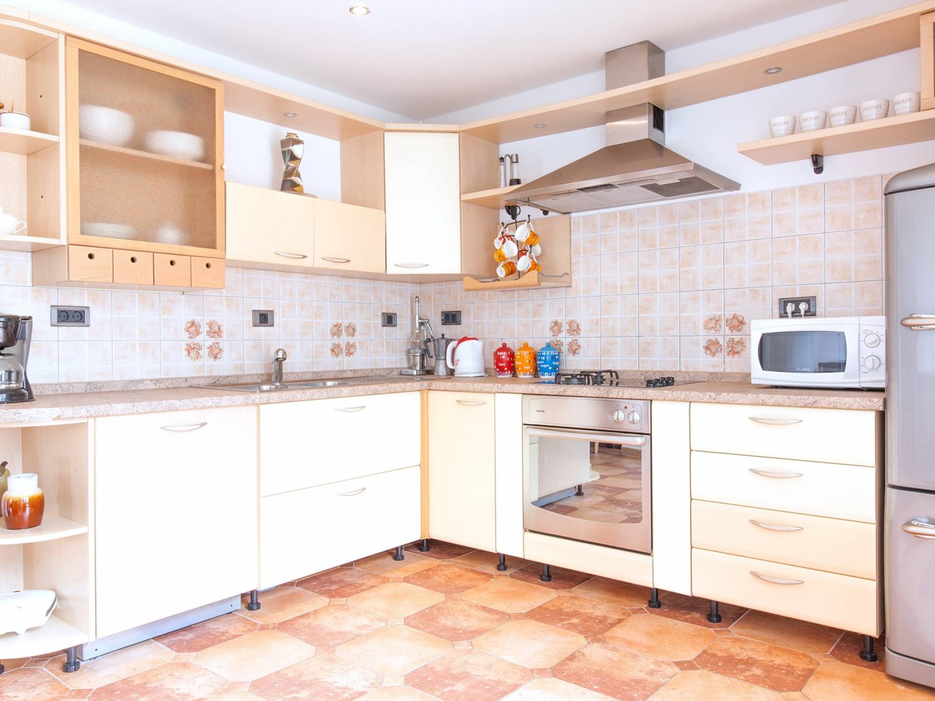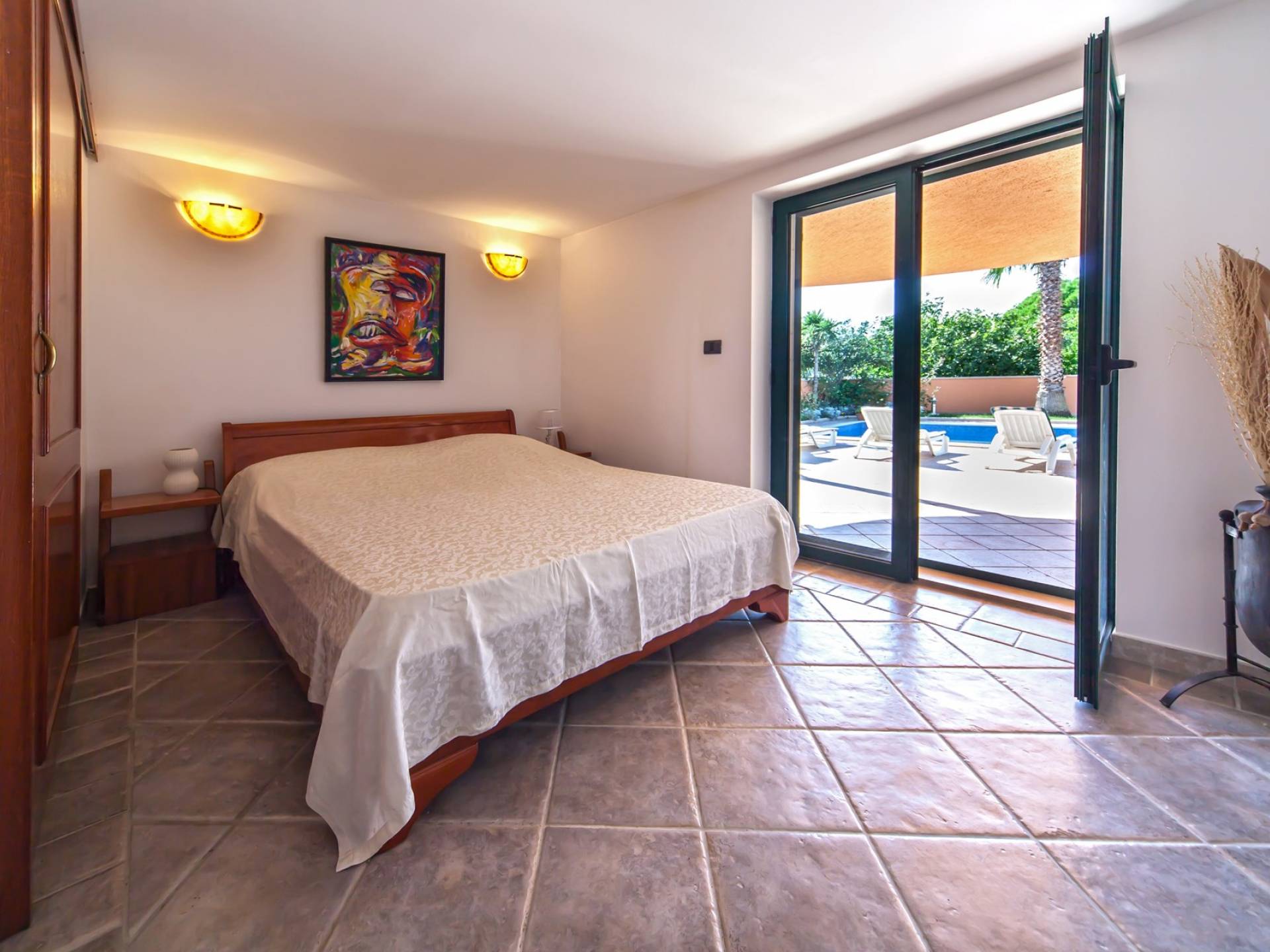 Ο εξωτερικός χώρος προσφέρει όλα όσα χρειάζεστε με πισίνα, εξωτερική κουζίνα και χώρο χαλάρωσης. Η βεράντα στον δεύτερο όροφο είναι ιδανική για έναν πρωινό καφέ καθώς παρακολουθείτε το όμορφο περιβάλλον γεμάτο με περιβόλια, ελαιώνες και αμπελώνες που συντηρούνται με επιδεξιότητα. Περιέχει επίσης επιπλέον χώρο ηλιοθεραπείας. Τα δωμάτια είναι πρόσφατα επιπλωμένα με άνετα κρεβάτια, ενδιαφέρουσα τέχνη και άφθονο χώρο για τα προσωπικά σας αντικείμενα. Τα παρθένα μπάνια διαθέτουν μεγάλες, γωνιακές μπανιέρες όπου μπορείτε να χαλαρώσετε και να απαλλαγείτε από τα προβλήματά σας. Διατίθενται επίσης ντους.