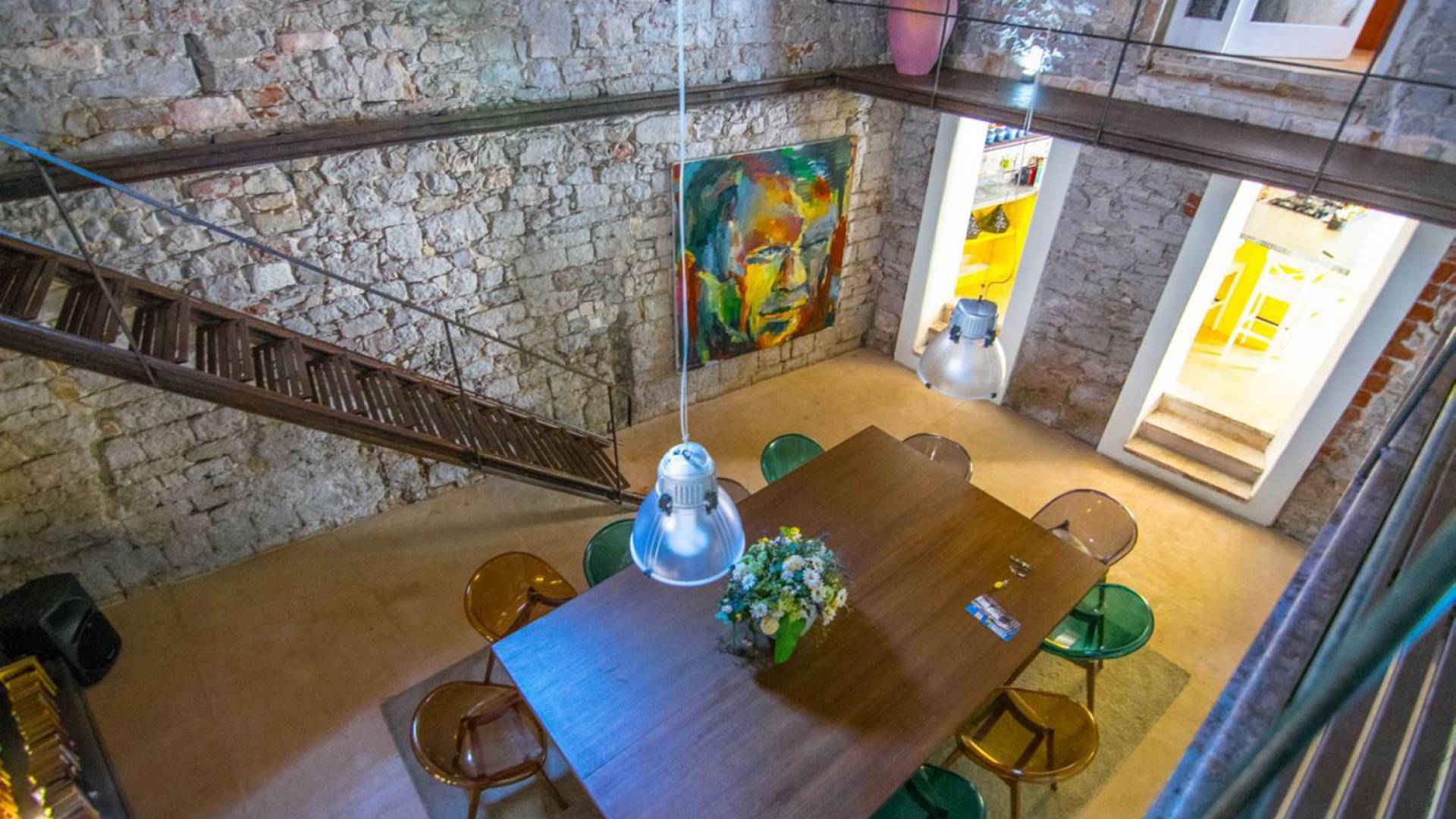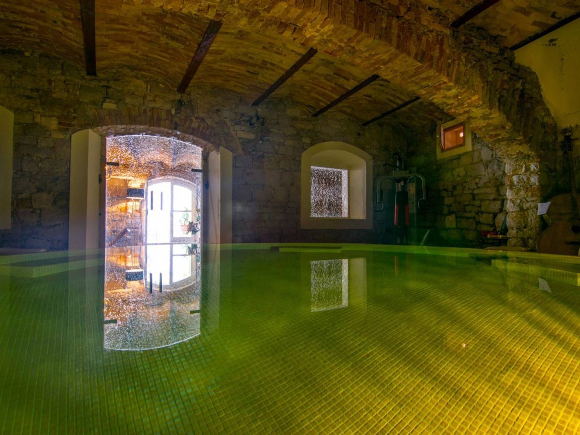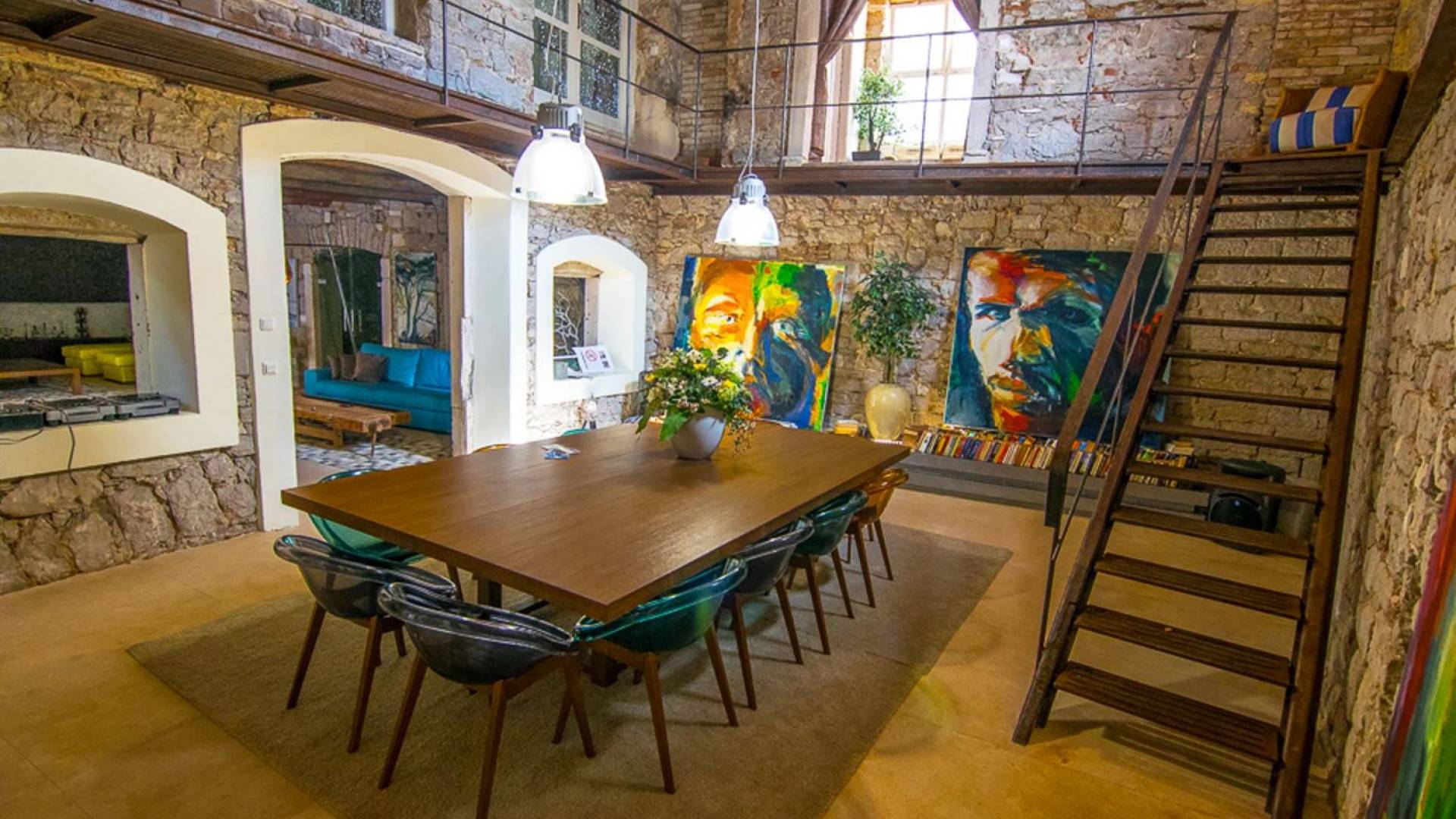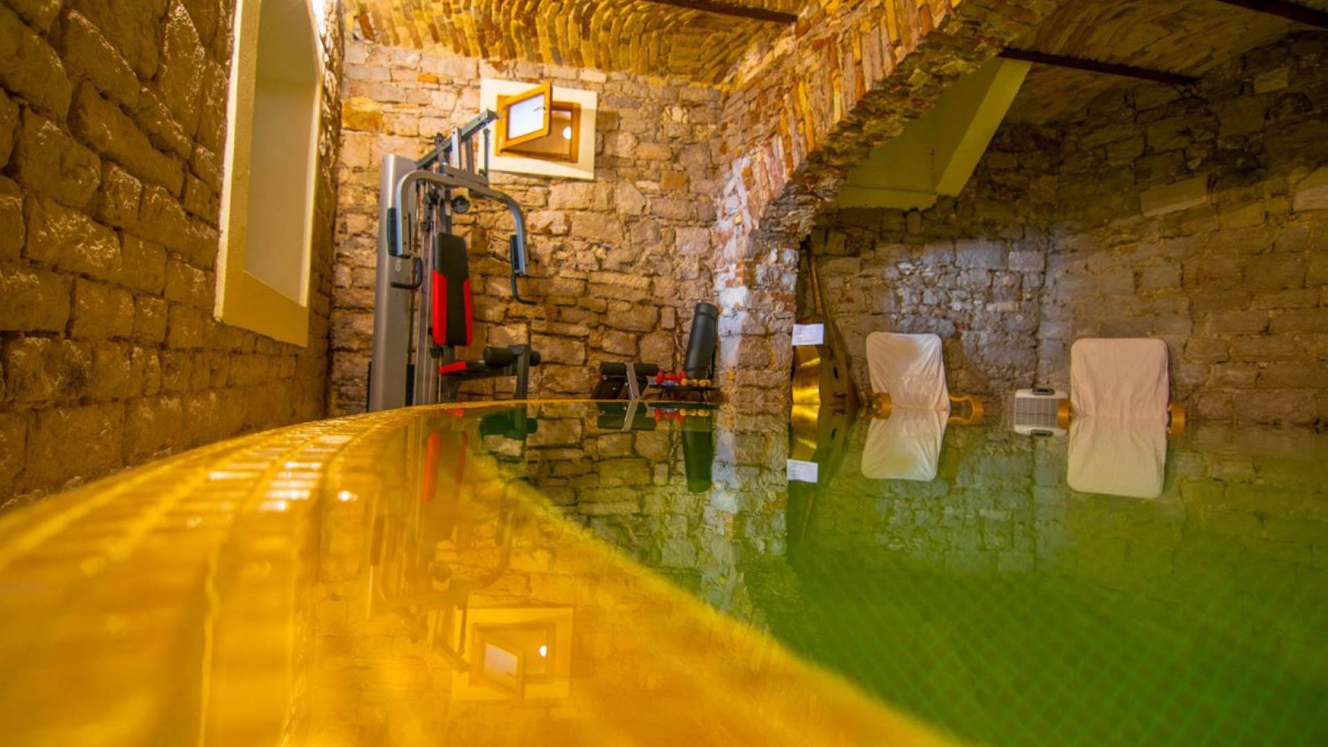 Μια εξωτερική βεράντα είναι επίσης εξοπλισμένη με μεγάλο τραπέζι και καρέκλες, μπάρμπεκιου αερίου, έπιπλα κήπου, ξαπλώστρες, ντους εξωτερικού χώρου. Στο ισόγειο έχει διαμορφωθεί ένα εξαιρετικό ηχοσύστημα, το οποίο είναι υπέροχο αν θέλετε να κάνετε ένα ιδιωτικό πάρτι. Το παλάτι περιβάλλεται από ψηλούς πέτρινους τοίχους, η απόλυτη ιδιωτικότητα είναι εγγυημένη.
