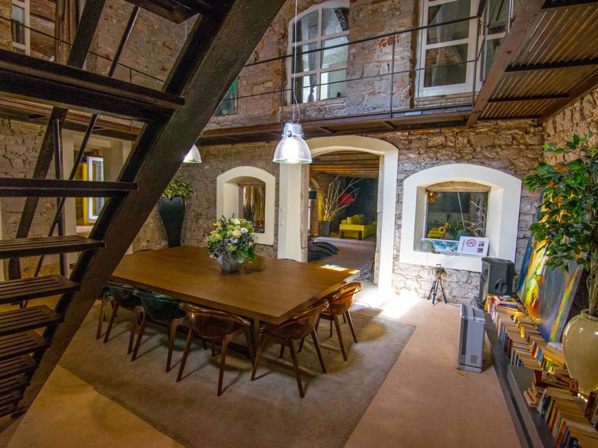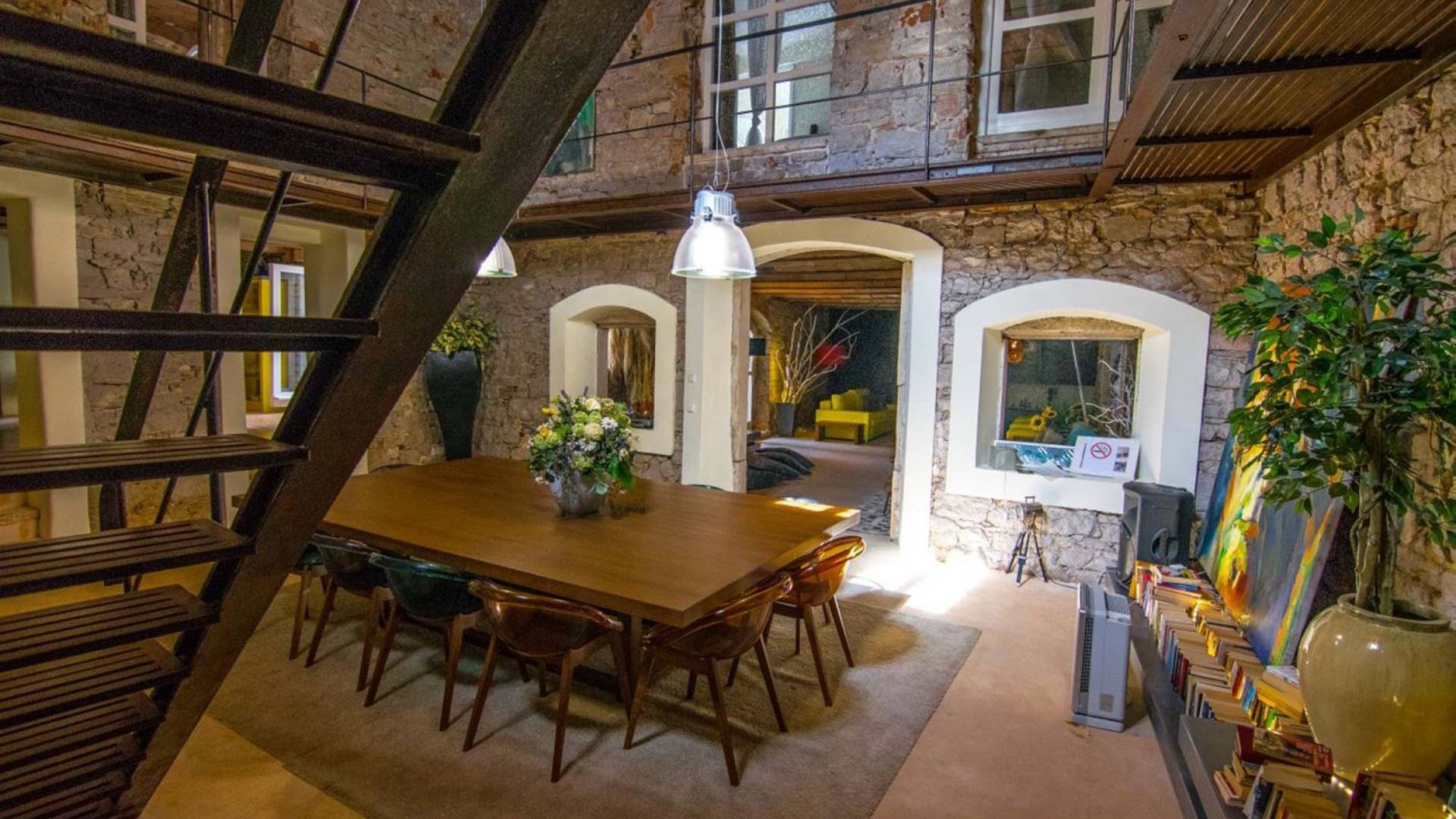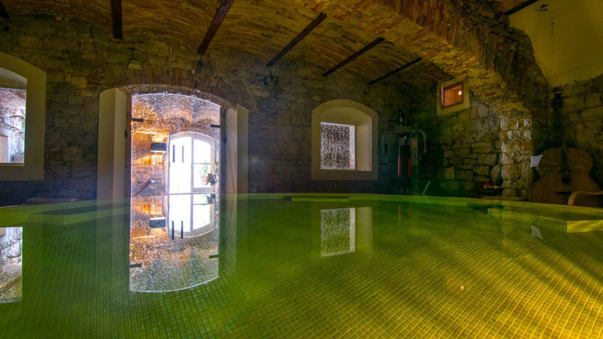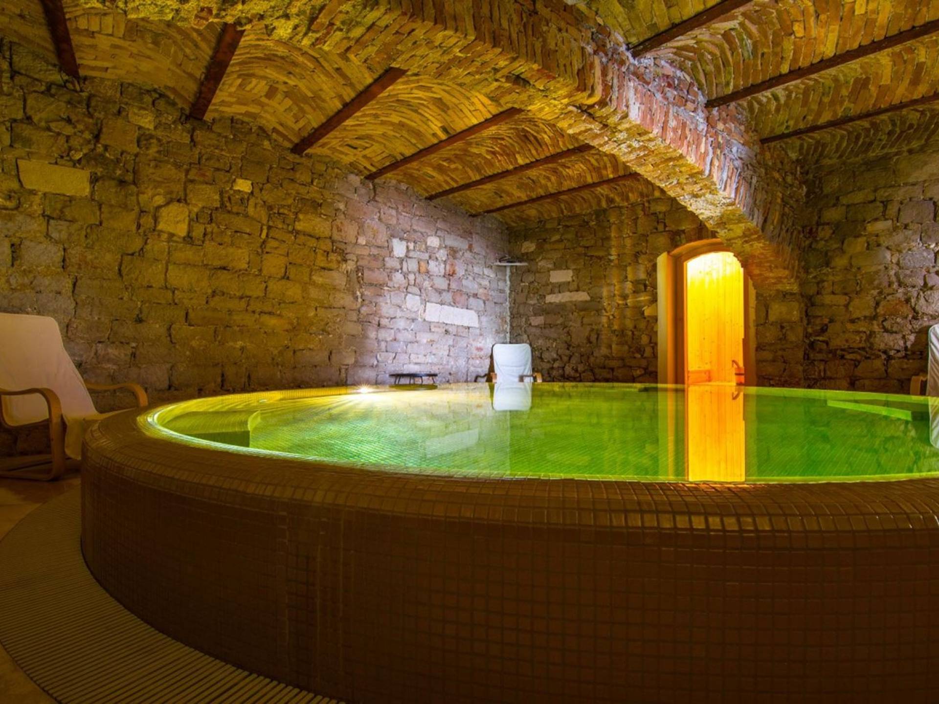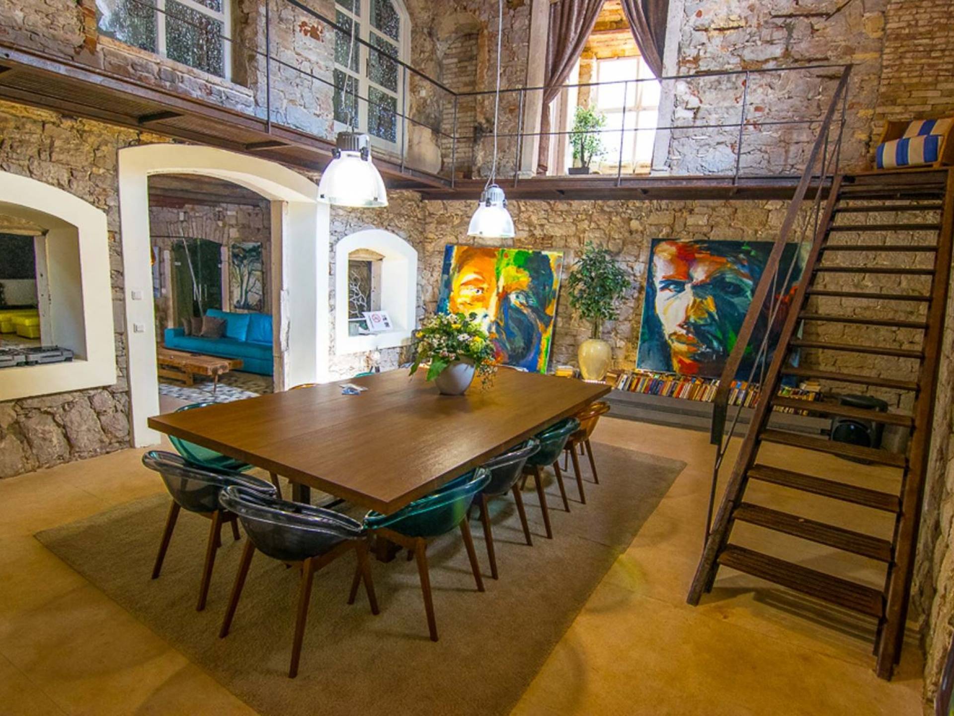 Μια εξωτερική βεράντα είναι επίσης εξοπλισμένη με μεγάλο τραπέζι και καρέκλες, μπάρμπεκιου αερίου, έπιπλα κήπου, ξαπλώστρες, ντους εξωτερικού χώρου. Στο ισόγειο έχει διαμορφωθεί ένα εξαιρετικό ηχοσύστημα, το οποίο είναι υπέροχο αν θέλετε να κάνετε ένα ιδιωτικό πάρτι. Το παλάτι περιβάλλεται από ψηλούς πέτρινους τοίχους, η απόλυτη ιδιωτικότητα είναι εγγυημένη.