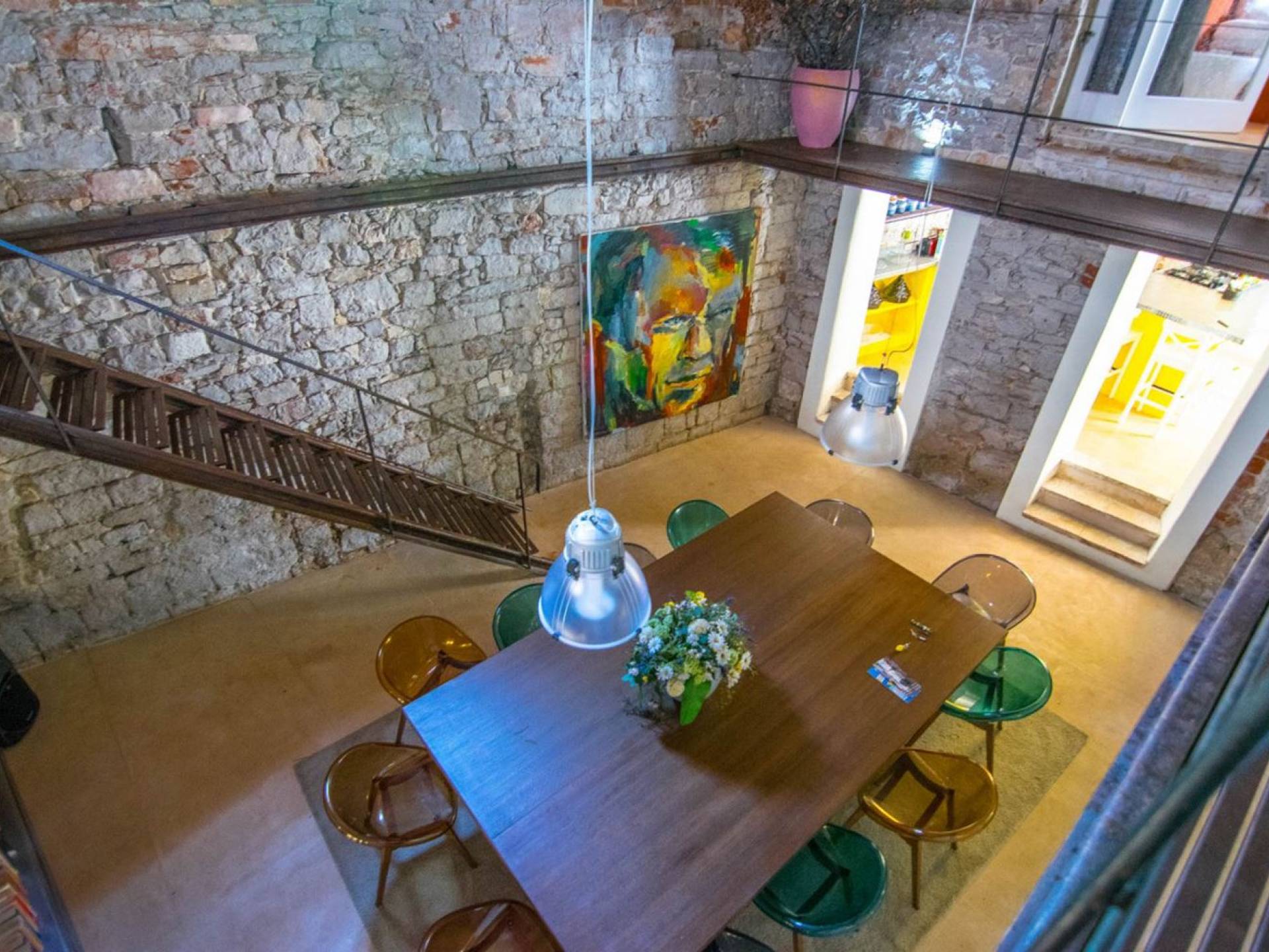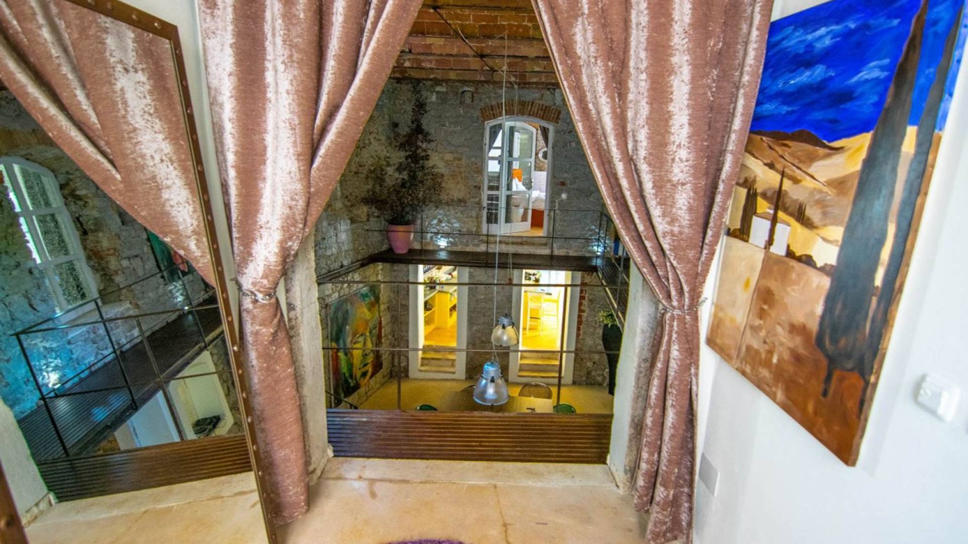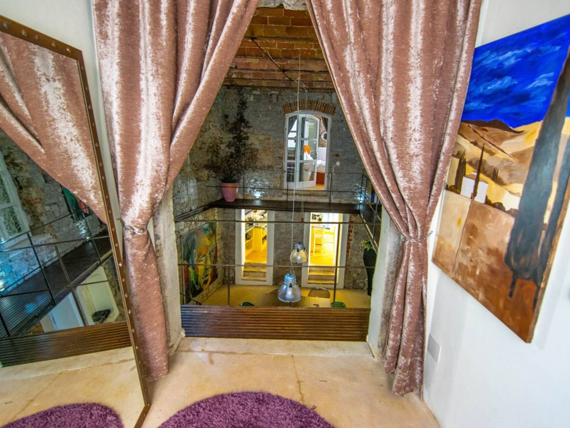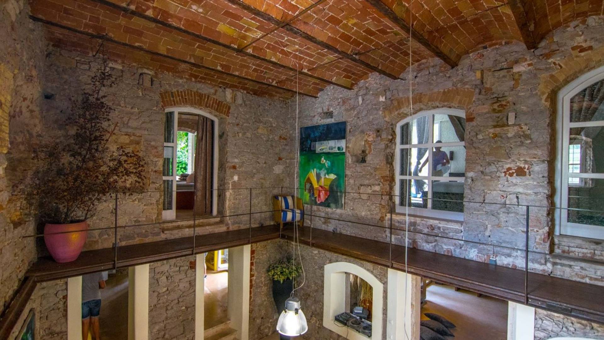 Στον πρώτο όροφο υπάρχουν υπνοδωμάτια. Κάθε υπνοδωμάτιο έχει ένα διπλό κρεβάτι και με δικό του μπάνιο. Όλα τα δωμάτια είναι κλιματιζόμενα και όμορφα διακοσμημένα. Σε κάθε δωμάτιο έχει αφεθεί μια πινελιά από τις ξεχασμένες εποχές, μπορεί να φανεί μέσα από την παλιά οροφή από τούβλα, μέσα από τον πέτρινο τοίχο στο μπάνιο ή μια μεσαιωνική σιδερένια κρεμάστρα για πετσέτες.