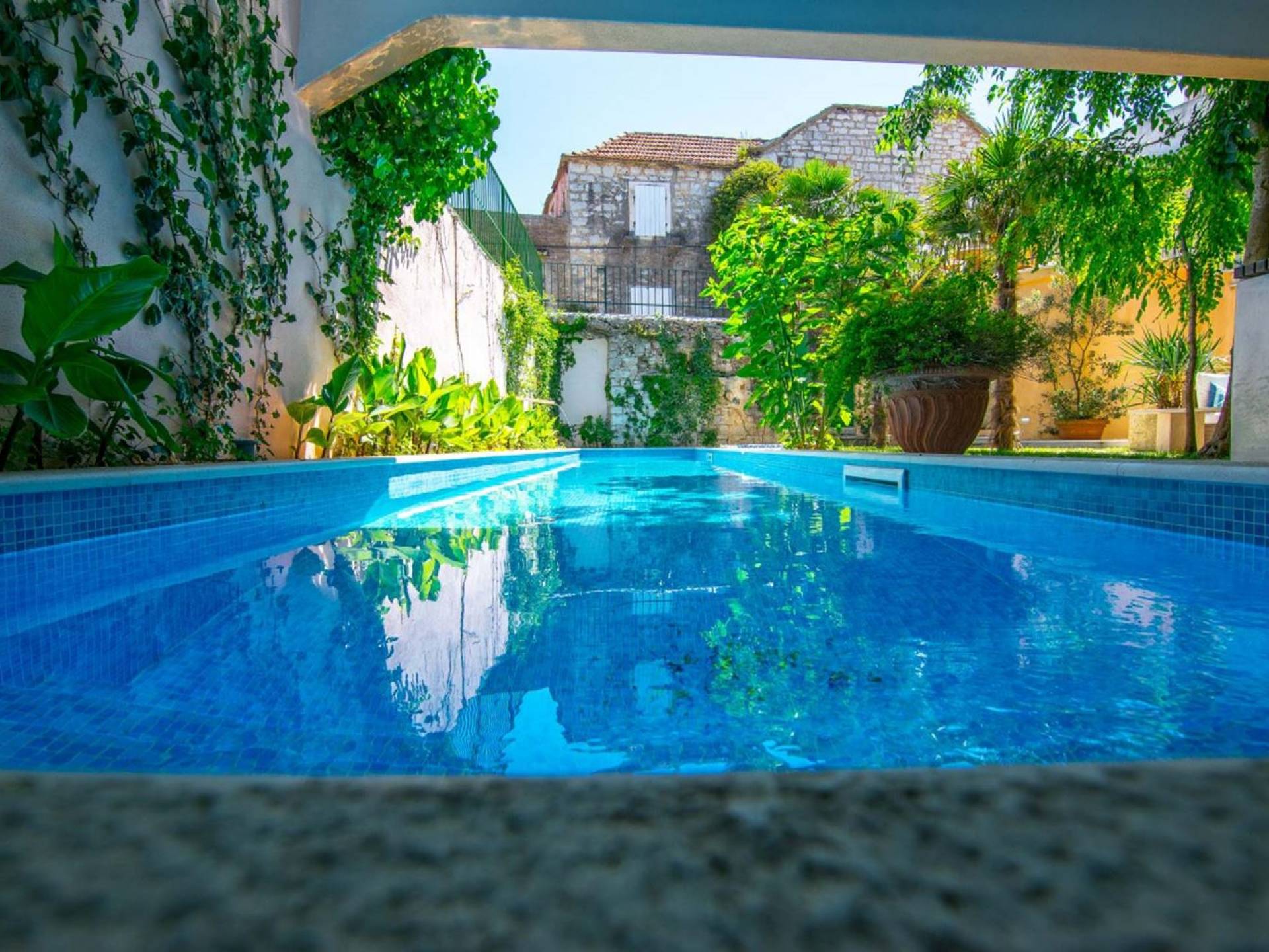 Η βίλα Jelsa Palace Hvar είναι μια πολυτελής βίλα που ενοικιάζεται με 4 υπνοδωμάτια και ιδιωτική πισίνα. Το Villa Jelsa Palace είναι ένα πολυτελές κτήμα, που βρίσκεται στο κέντρο της πόλης Jelsa στο νησί Hvar, όπου οι καμπάνες των εκκλησιών ακούγονται το μεσημέρι και το μουρμουρητό των οικιακών ανθρώπων στους δρόμους. Όλα αυτά είναι λίγα μόλις λεπτά μακριά από την προκυμαία, όπου βρίσκονται όλα τα μπαρ, τα εστιατόρια, τα καταστήματα, οι τράπεζες. Το Villa Jelsa Palace είναι μια τέλεια απόδραση για όσους θέλουν να νιώσουν τον ρυθμό μιας τυπικής μικρής μεσογειακής πόλης, αλλά είναι πρόθυμοι να έχουν κρυμμένες οάσεις ακριβώς εκεί, μέσα στα τείχη της. Αυτό το μέρος είναι ιδανικό για διακοπές με φίλους, για οικογένειες με παιδιά, για ερωτευμένους και για όσους δεν το έχουν κάνει.
