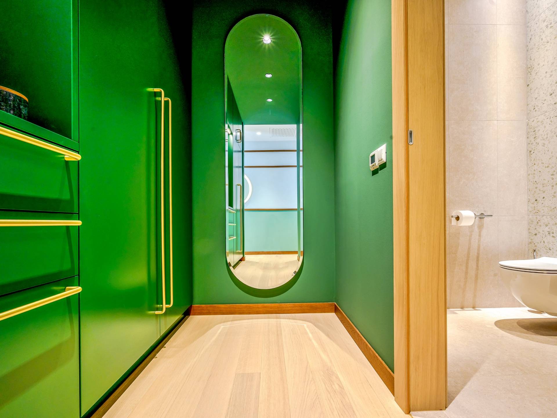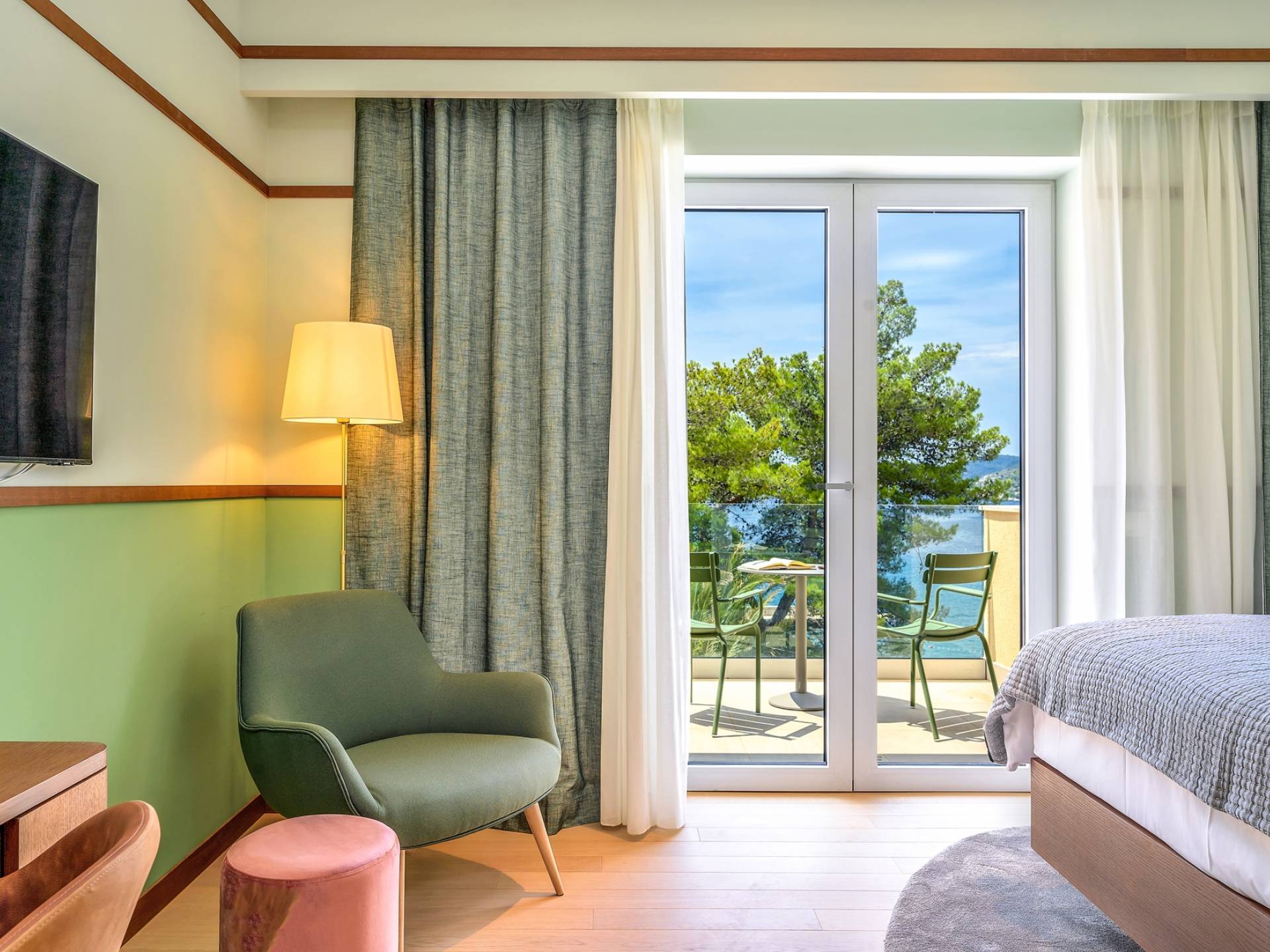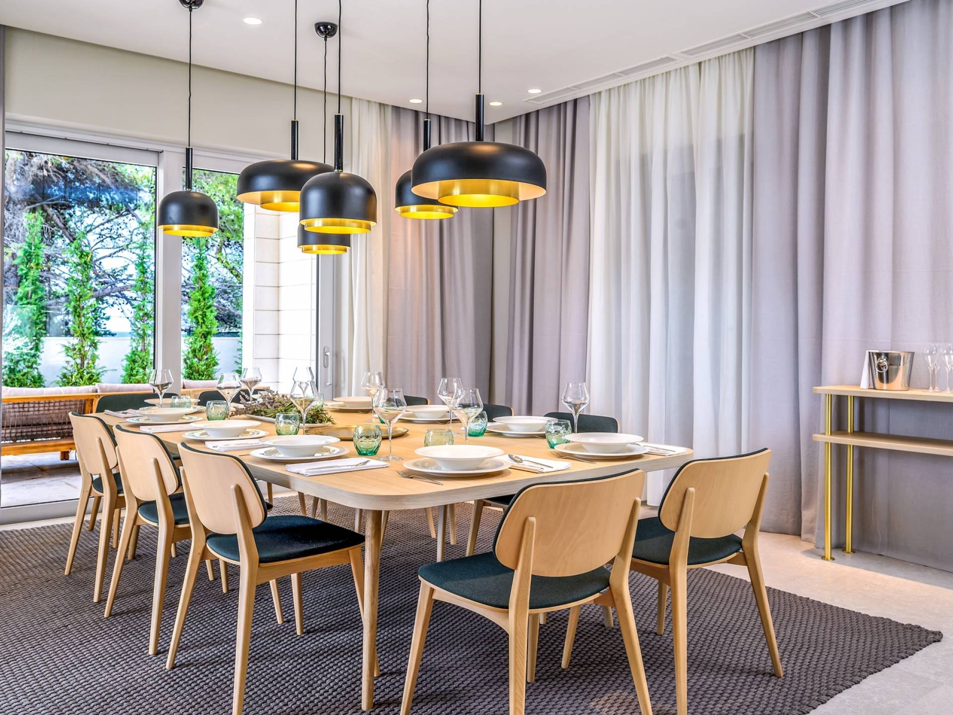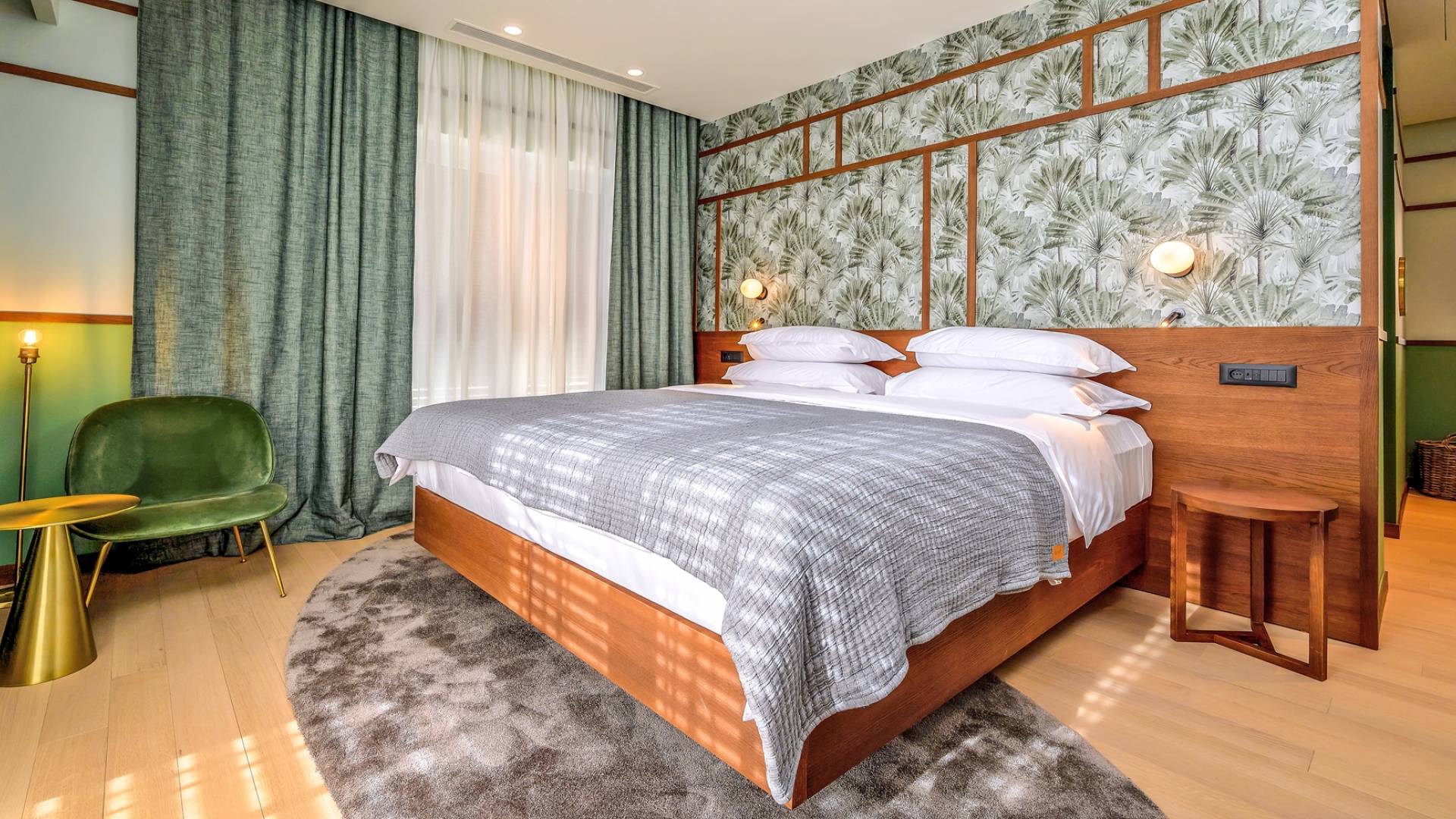 Από το χαλί στην ταπετσαρία, από τις κουρτίνες στα έπιπλα επώνυμων σχεδιαστών: τα πέντε υπνοδωμάτια με συντονισμένα φυτικά μοτίβα περιέχουν μόνο την υψηλότερη ποιότητα και την πιο προσεκτικά επιλεγμένη εσωτερική διακόσμηση σε δύο ορόφους. Το ισόγειο της εξοχικής κατοικίας στη νότια Δαλματία που φιλοξενεί 10 άτομα διαθέτει ευρύχωρο σαλόνι και τραπεζαρία, επαγγελματικά εξοπλισμένη κουζίνα καθώς και τουαλέτα επισκεπτών και ένα υπνοδωμάτιο με ιδιωτικό μπάνιο.