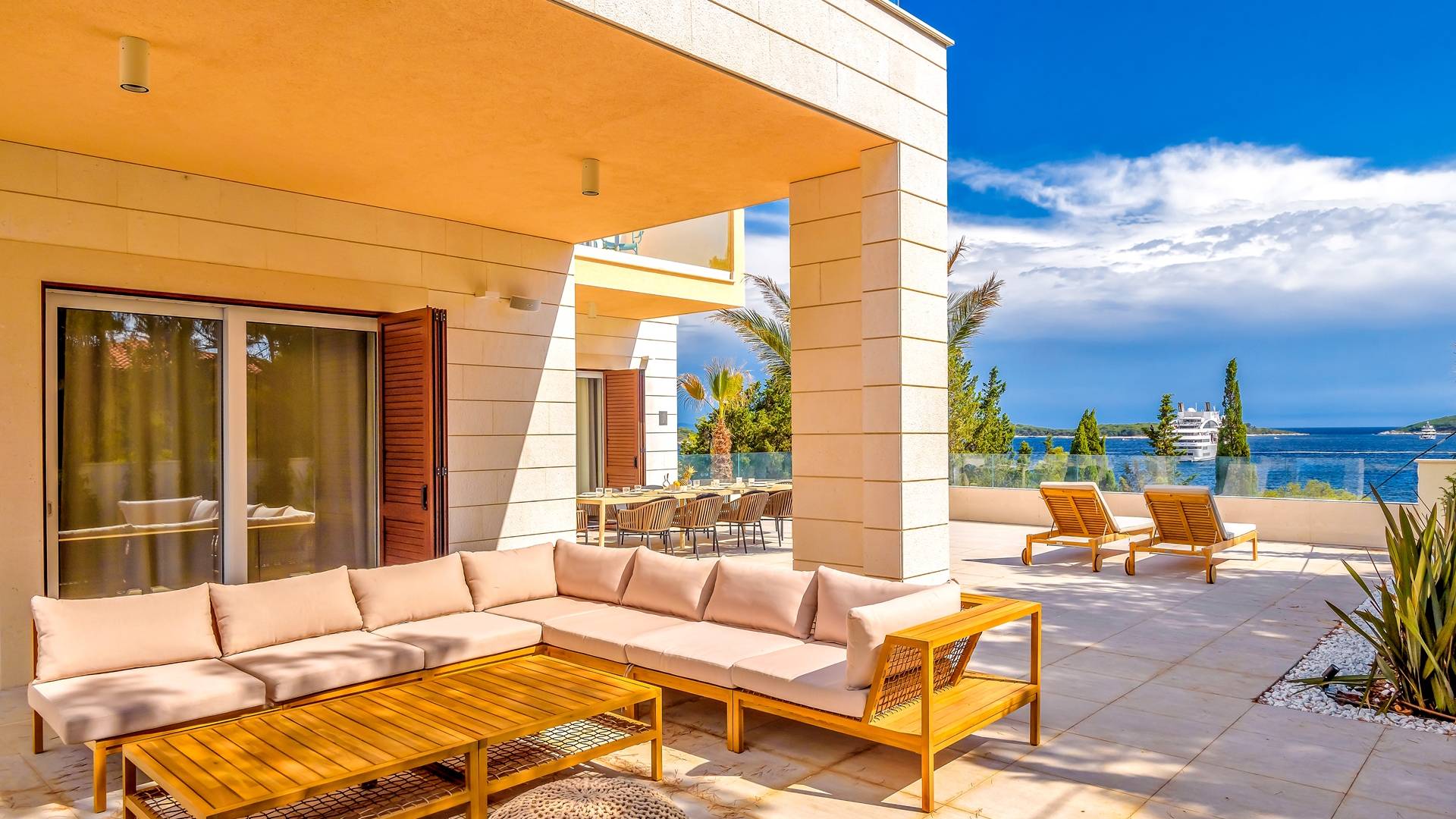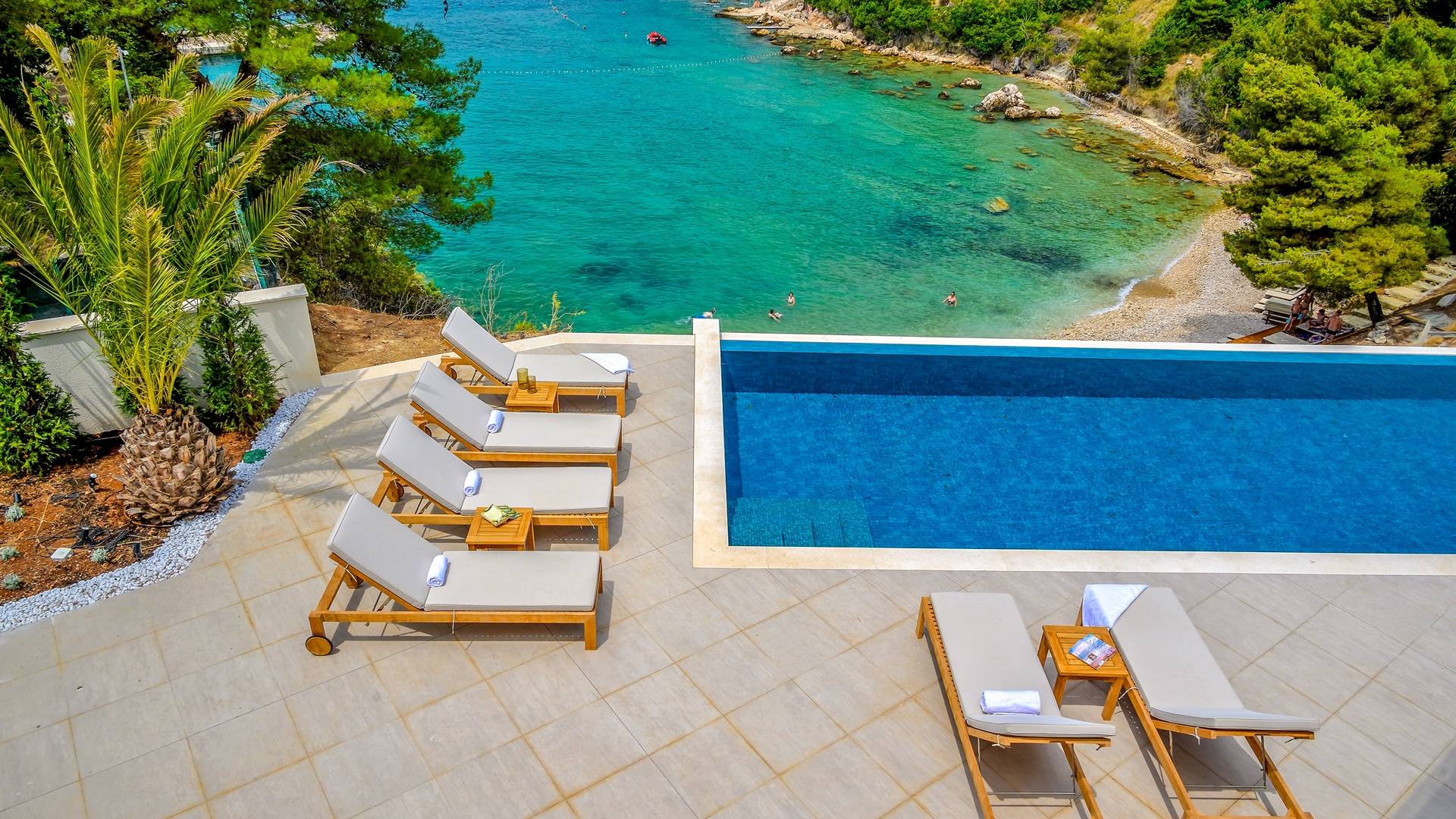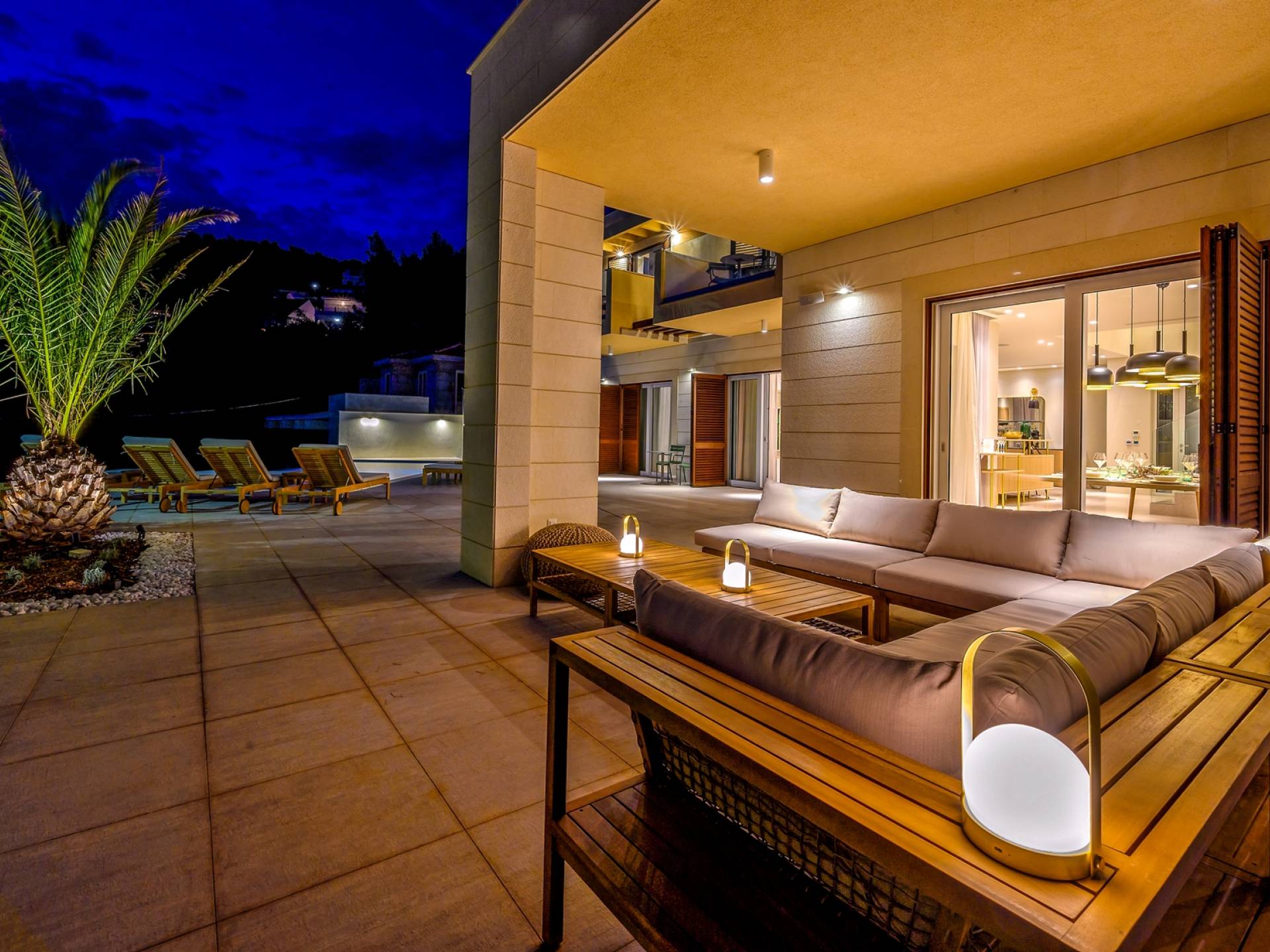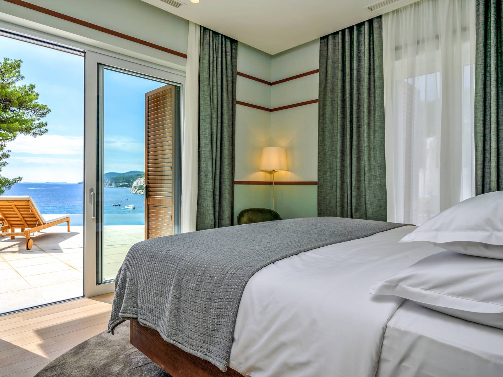 Τα υπόλοιπα τέσσερα υπνοδωμάτια βρίσκονται στον πρώτο όροφο, το καθένα με ιδιωτικό μπάνιο και μπαλκόνι με θέα στη μαγευτική νότια ακτή της Δαλματίας που κόβει την ανάσα. Ο εξωτερικός χώρος είναι εξοπλισμένος με ξαπλώστρες και ομπρέλες, υπαίθριο ντους και υπαίθριο γυμναστήριο. Το υπαίθριο σαλόνι είναι το τέλειο μέρος για να απολαύσετε τον ήλιο με ένα δροσιστικό κοκτέιλ καθώς αγναντεύετε την αστραφτερή, απέραντη γαλάζια θάλασσα. Έχετε επίσης την επιλογή να προσλάβετε έναν ιδιωτικό σεφ που θα ετοιμάσει τα πιο νόστιμα πιάτα, θα σερβίρει τα πιο απολαυστικά ποτά και θα ικανοποιήσει κάθε σας ιδιοτροπία όταν πρόκειται για γαστρονομική απόλαυση. Τελευταίο αλλά εξίσου σημαντικό: η ενοικιαζόμενη βίλα διαθέτει τρεις ιδιωτικές θέσεις στάθμευσης