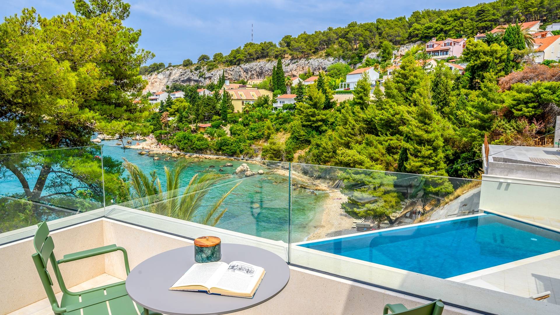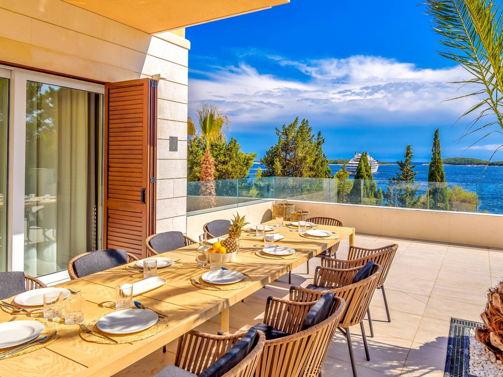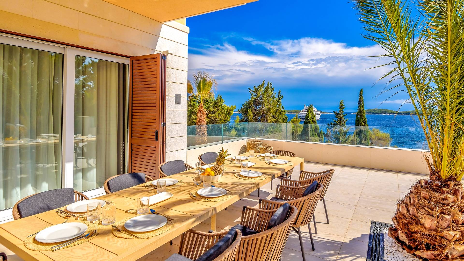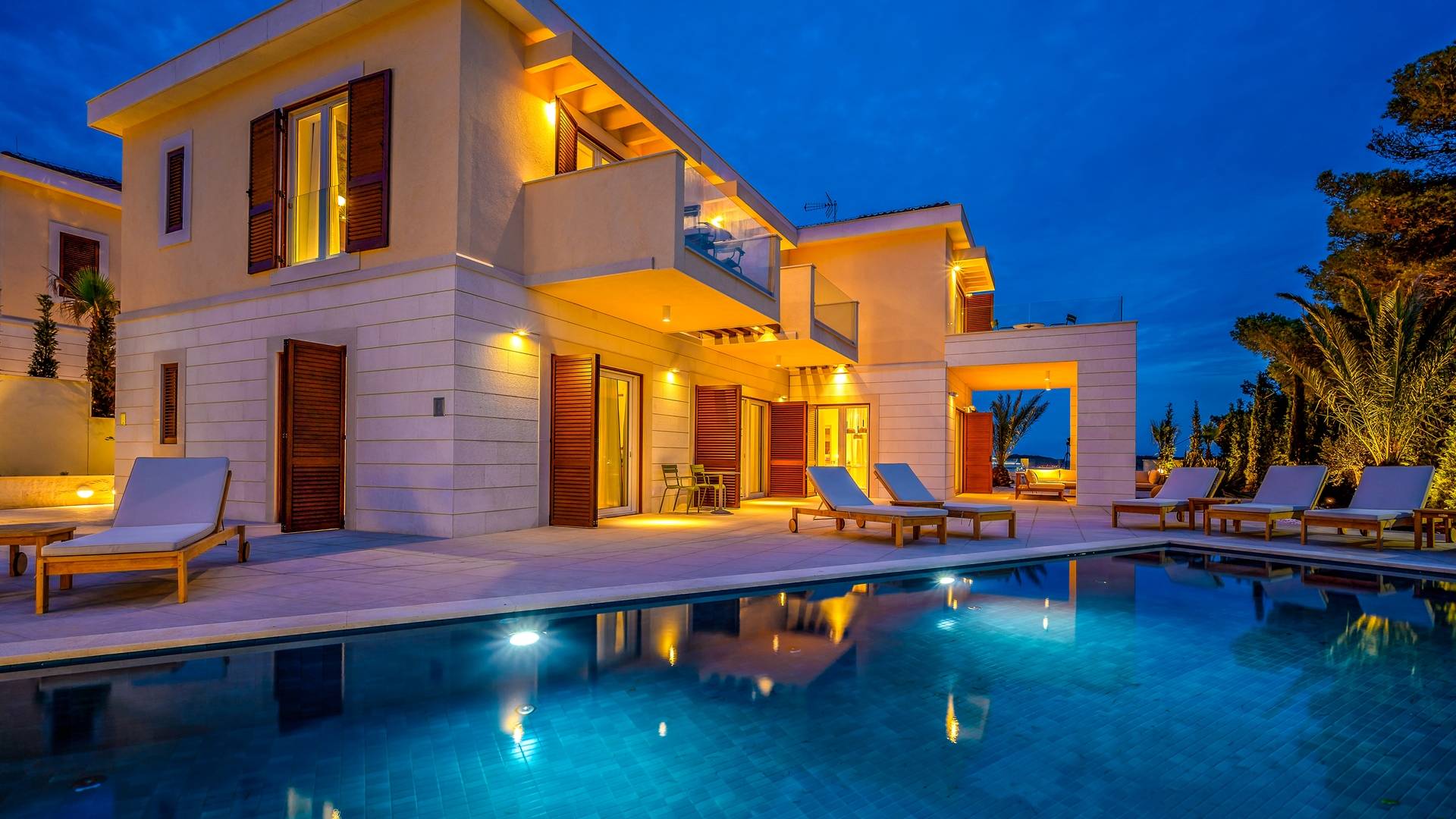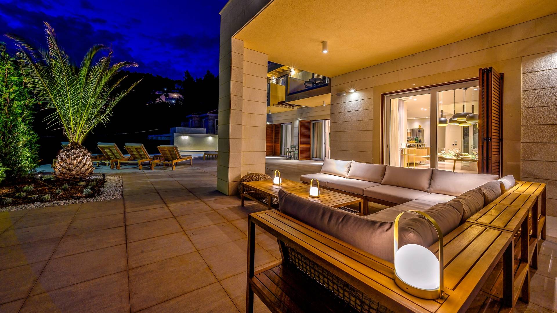 Τα υπόλοιπα τέσσερα υπνοδωμάτια βρίσκονται στον πρώτο όροφο, το καθένα με ιδιωτικό μπάνιο και μπαλκόνι με θέα στη μαγευτική νότια ακτή της Δαλματίας που κόβει την ανάσα. Ο εξωτερικός χώρος είναι εξοπλισμένος με ξαπλώστρες και ομπρέλες, υπαίθριο ντους και υπαίθριο γυμναστήριο. Το υπαίθριο σαλόνι είναι το τέλειο μέρος για να απολαύσετε τον ήλιο με ένα δροσιστικό κοκτέιλ καθώς αγναντεύετε την αστραφτερή, απέραντη γαλάζια θάλασσα. Έχετε επίσης την επιλογή να προσλάβετε έναν ιδιωτικό σεφ που θα ετοιμάσει τα πιο νόστιμα πιάτα, θα σερβίρει τα πιο απολαυστικά ποτά και θα ικανοποιήσει κάθε σας ιδιοτροπία όταν πρόκειται για γαστρονομική απόλαυση. Τελευταίο αλλά εξίσου σημαντικό: η ενοικιαζόμενη βίλα διαθέτει τρεις ιδιωτικές θέσεις στάθμευσης