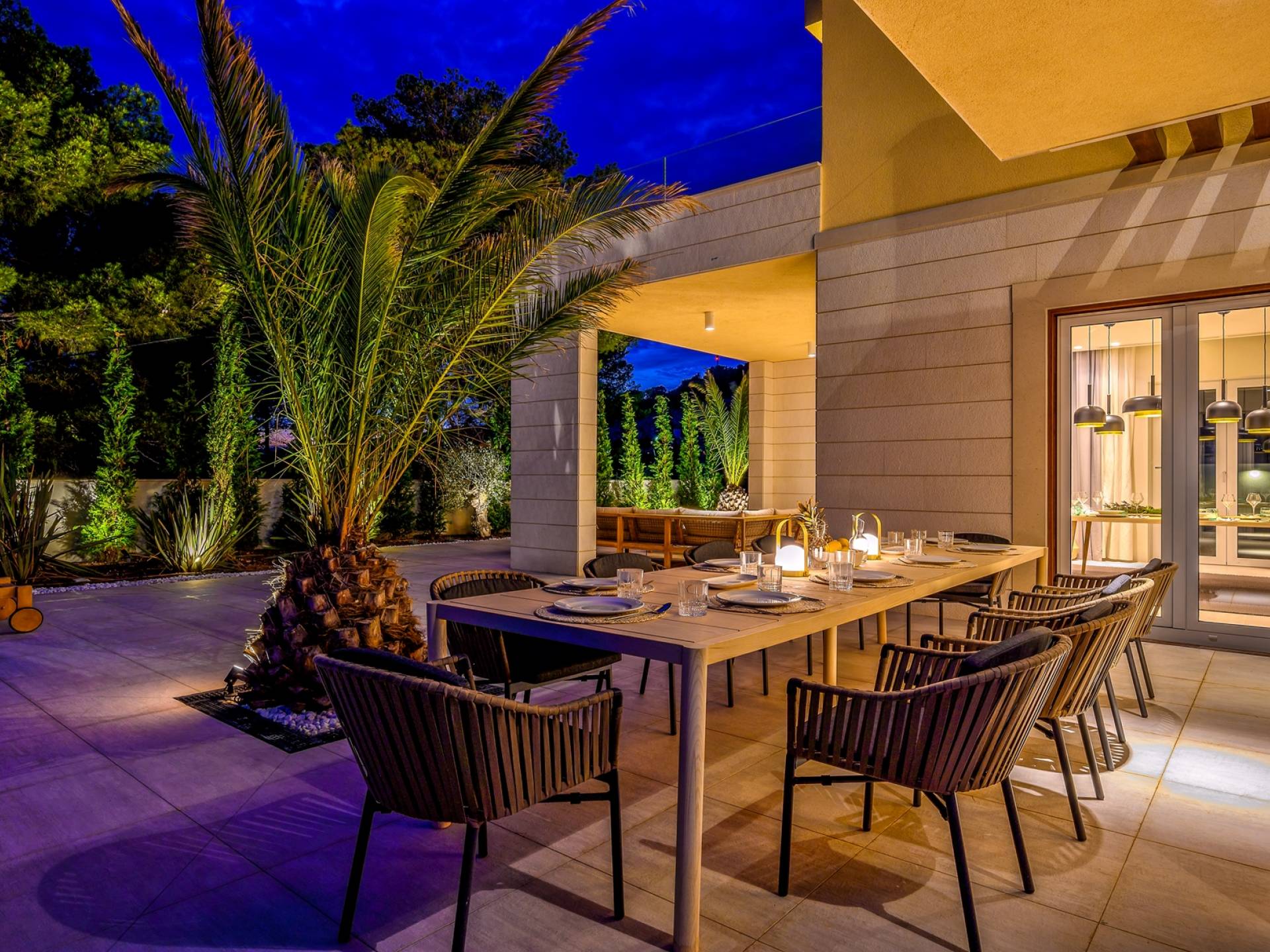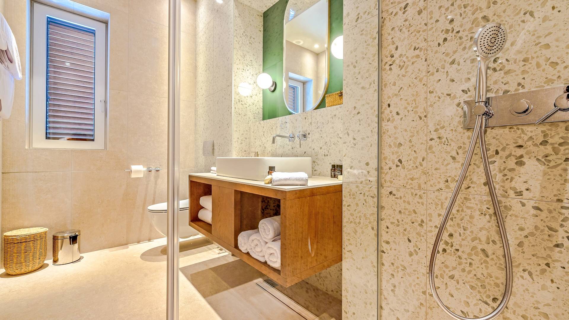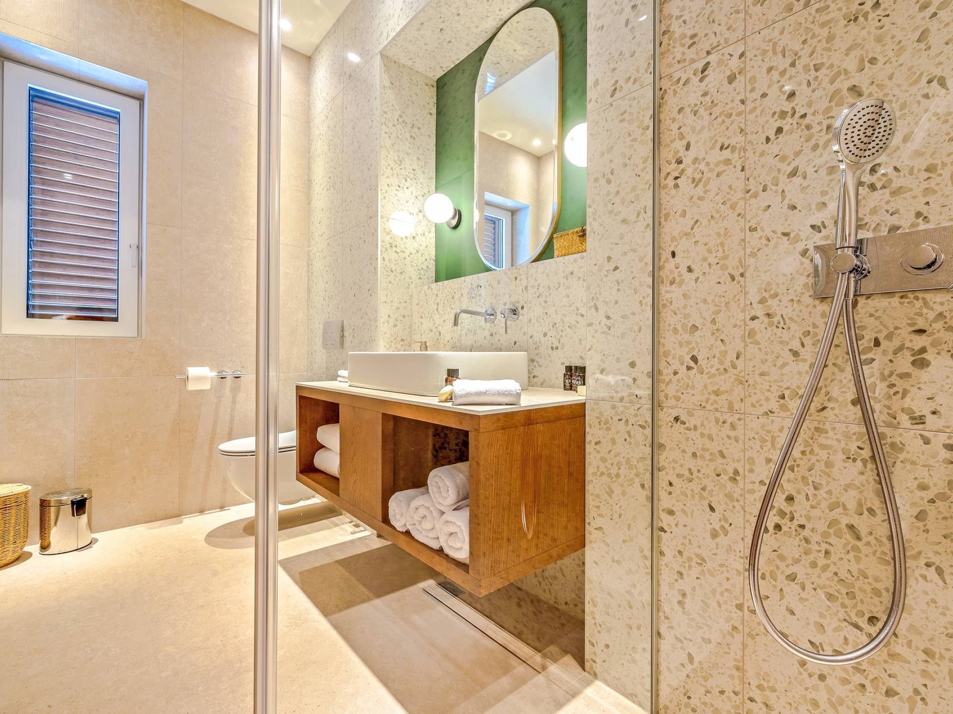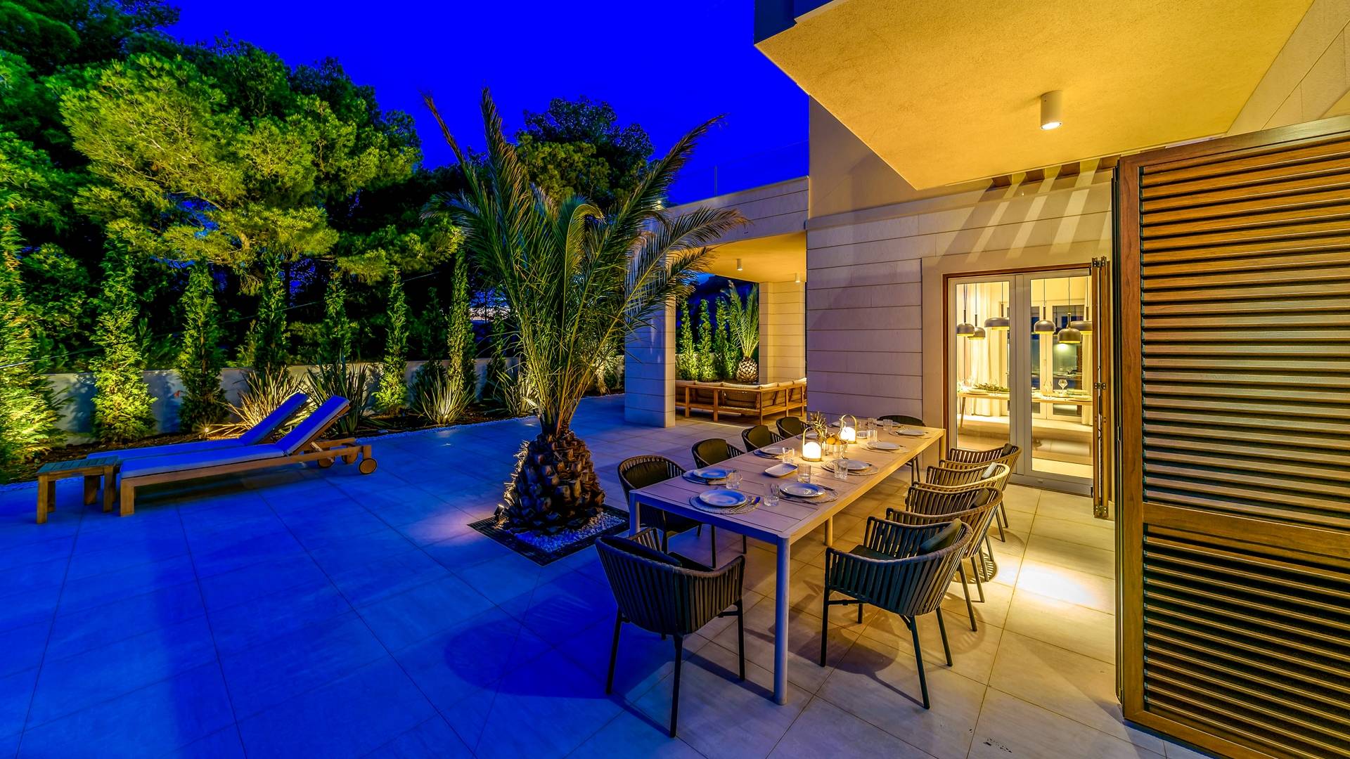 Τα υπόλοιπα τέσσερα υπνοδωμάτια βρίσκονται στον πρώτο όροφο, το καθένα με ιδιωτικό μπάνιο και μπαλκόνι με θέα στη μαγευτική νότια ακτή της Δαλματίας που κόβει την ανάσα. Ο εξωτερικός χώρος είναι εξοπλισμένος με ξαπλώστρες και ομπρέλες, υπαίθριο ντους και υπαίθριο γυμναστήριο. Το υπαίθριο σαλόνι είναι το τέλειο μέρος για να απολαύσετε τον ήλιο με ένα δροσιστικό κοκτέιλ καθώς αγναντεύετε την αστραφτερή, απέραντη γαλάζια θάλασσα. Έχετε επίσης την επιλογή να προσλάβετε έναν ιδιωτικό σεφ που θα ετοιμάσει τα πιο νόστιμα πιάτα, θα σερβίρει τα πιο απολαυστικά ποτά και θα ικανοποιήσει κάθε σας ιδιοτροπία όταν πρόκειται για γαστρονομική απόλαυση. Τελευταίο αλλά εξίσου σημαντικό: η ενοικιαζόμενη βίλα διαθέτει τρεις ιδιωτικές θέσεις στάθμευσης