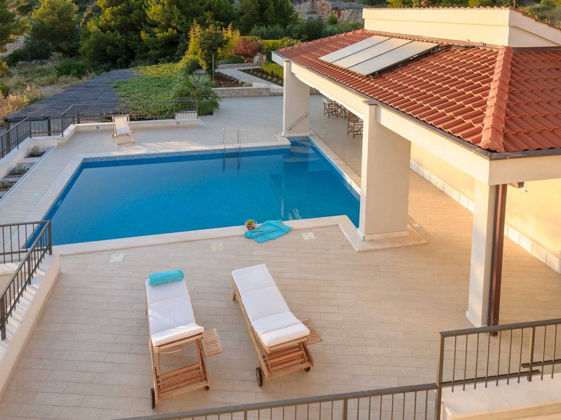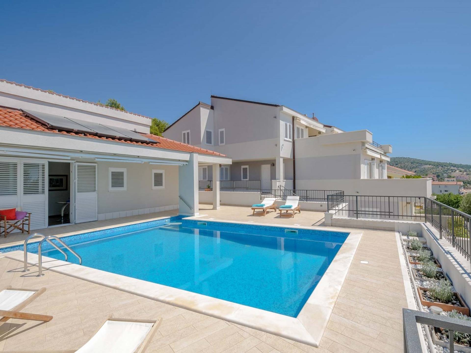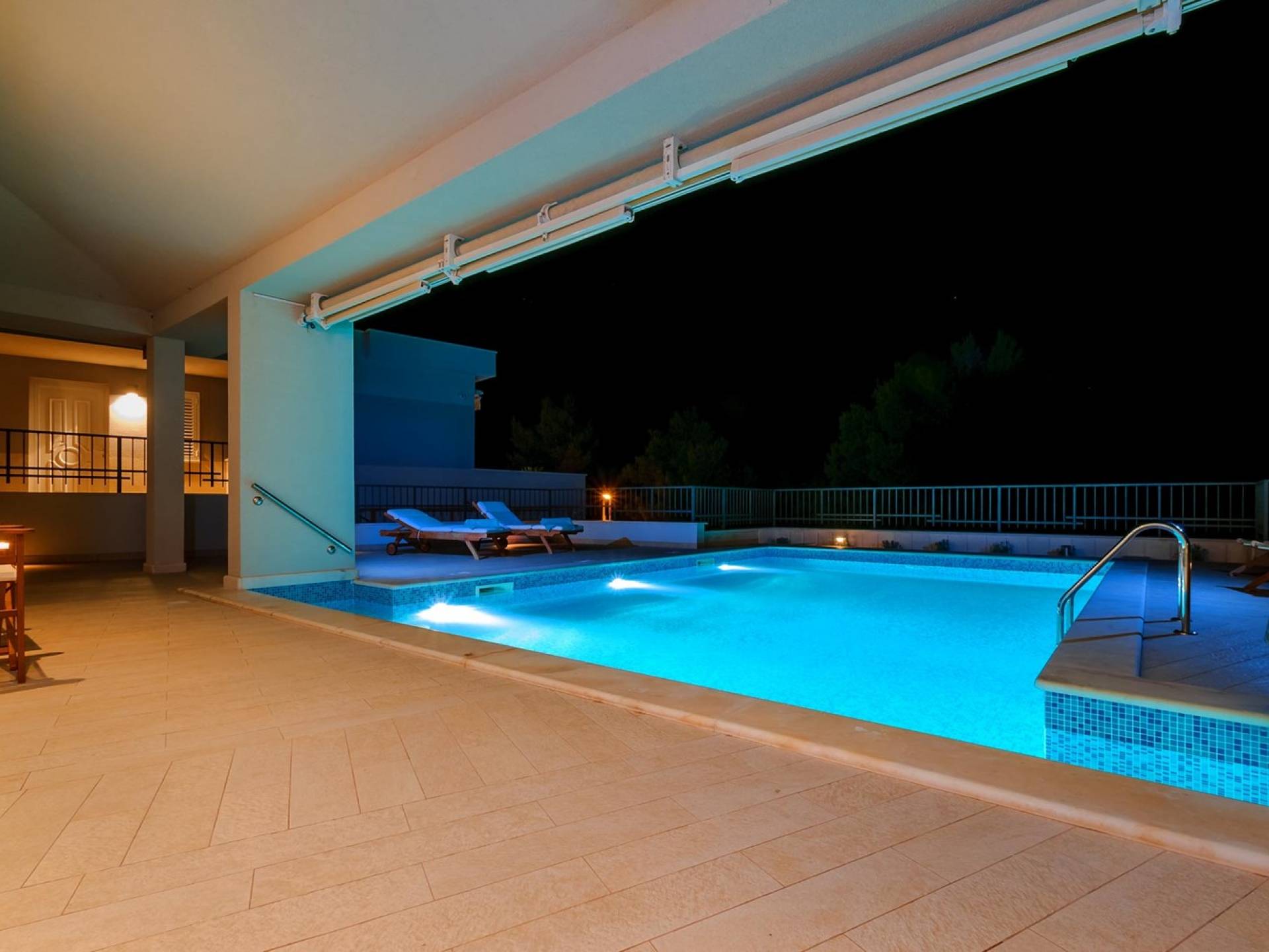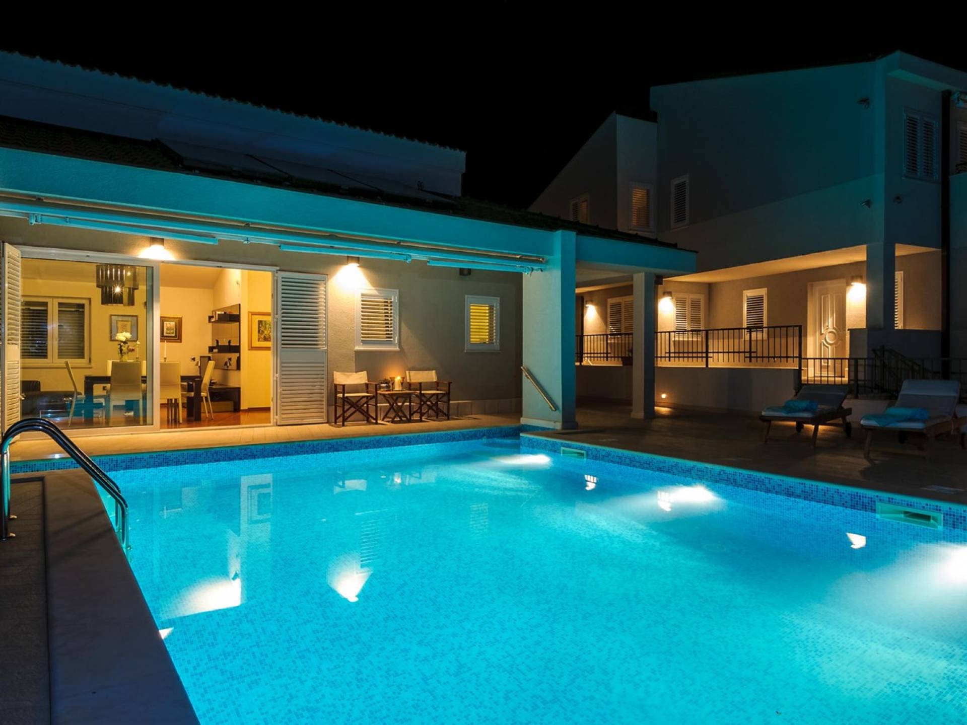 Ο εξωτερικός χώρος είναι όμορφα διαρρυθμισμένος με πολλά έπιπλα εξωτερικού χώρου στις μεγάλες βεράντες για να αξιοποιήσετε στο έπακρο την απίστευτη θέα στη θάλασσα. Η πισίνα (50 m²) περιβάλλεται από πολλές ξαπλώστρες. Κάτω από τη σκεπαστή βεράντα υπάρχουν επιπλέον ξύλινα έπιπλα εξωτερικού χώρου. Ένα μικρότερο εξοχικό έχει σαλόνι και όμορφη και μοντέρνα κουζίνα, καλά εξοπλισμένη με ηλεκτρική κουζίνα, φούρνο, απορροφητήρα, ψυγείο, καταψύκτη, φούρνο μικροκυμάτων, βραστήρα, καφετιέρα, μπλέντερ και τοστιέρα. Ο χώρος της πισίνας μπορεί να φωτίζεται τη νύχτα για να επιτρέψει στους επισκέπτες να περάσουν στο έπακρο τα ζεστά βράδια έξω. Καλής ποιότητας πέτρινες βεράντες περιβάλλουν τη βίλα και οδηγούν από τα διαμερίσματα στον χώρο της πισίνας. Το Villa Primosten Palace θα κάνει τις διακοπές σας αξέχαστες...