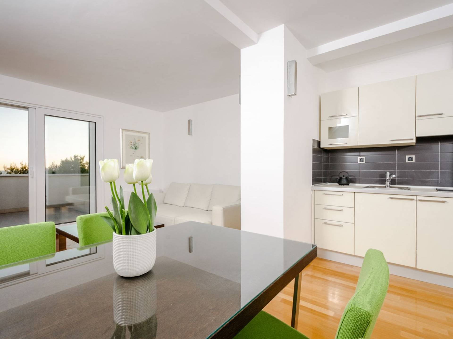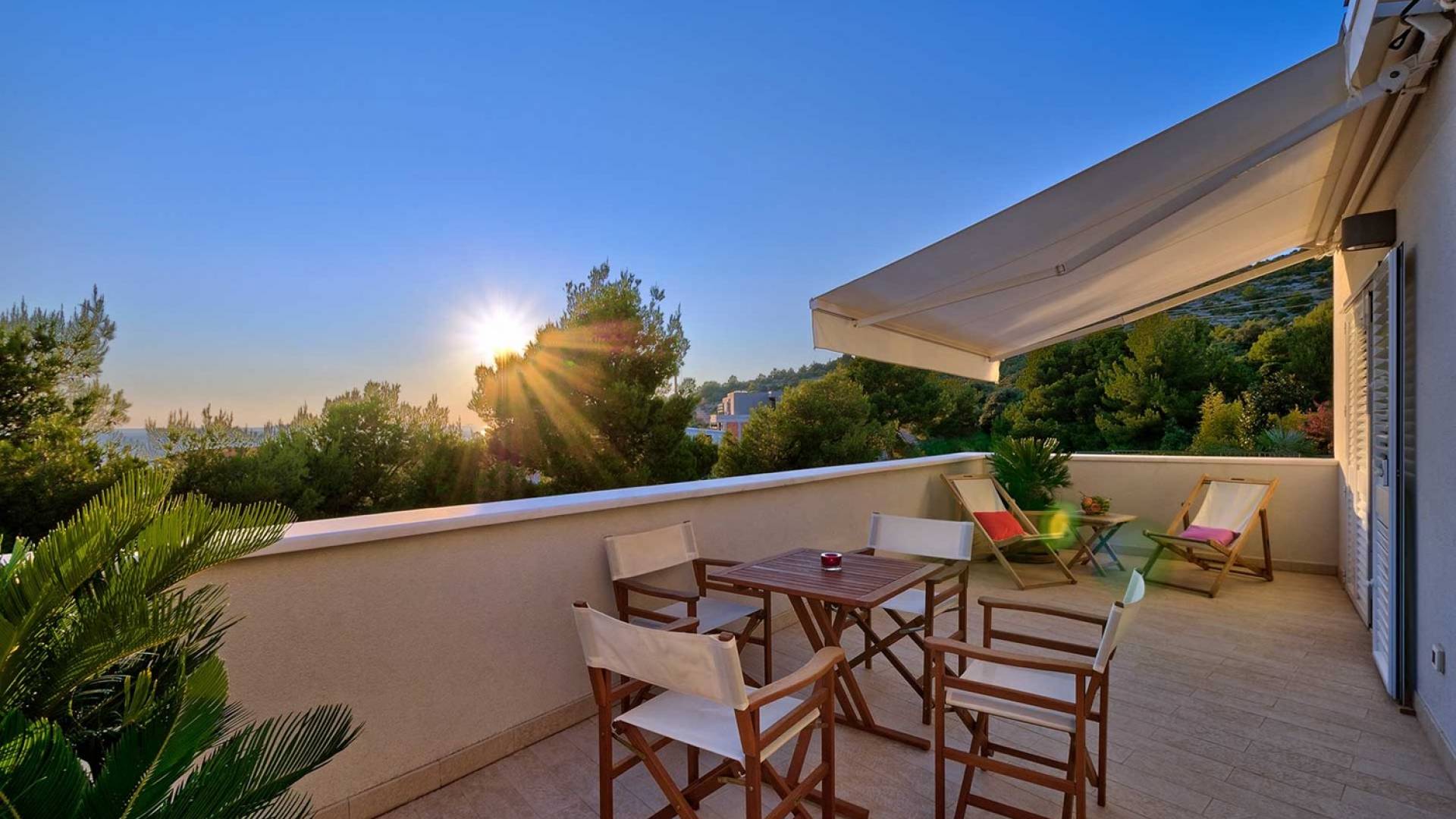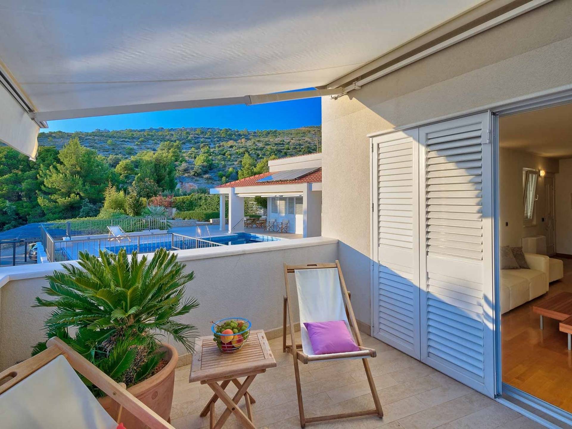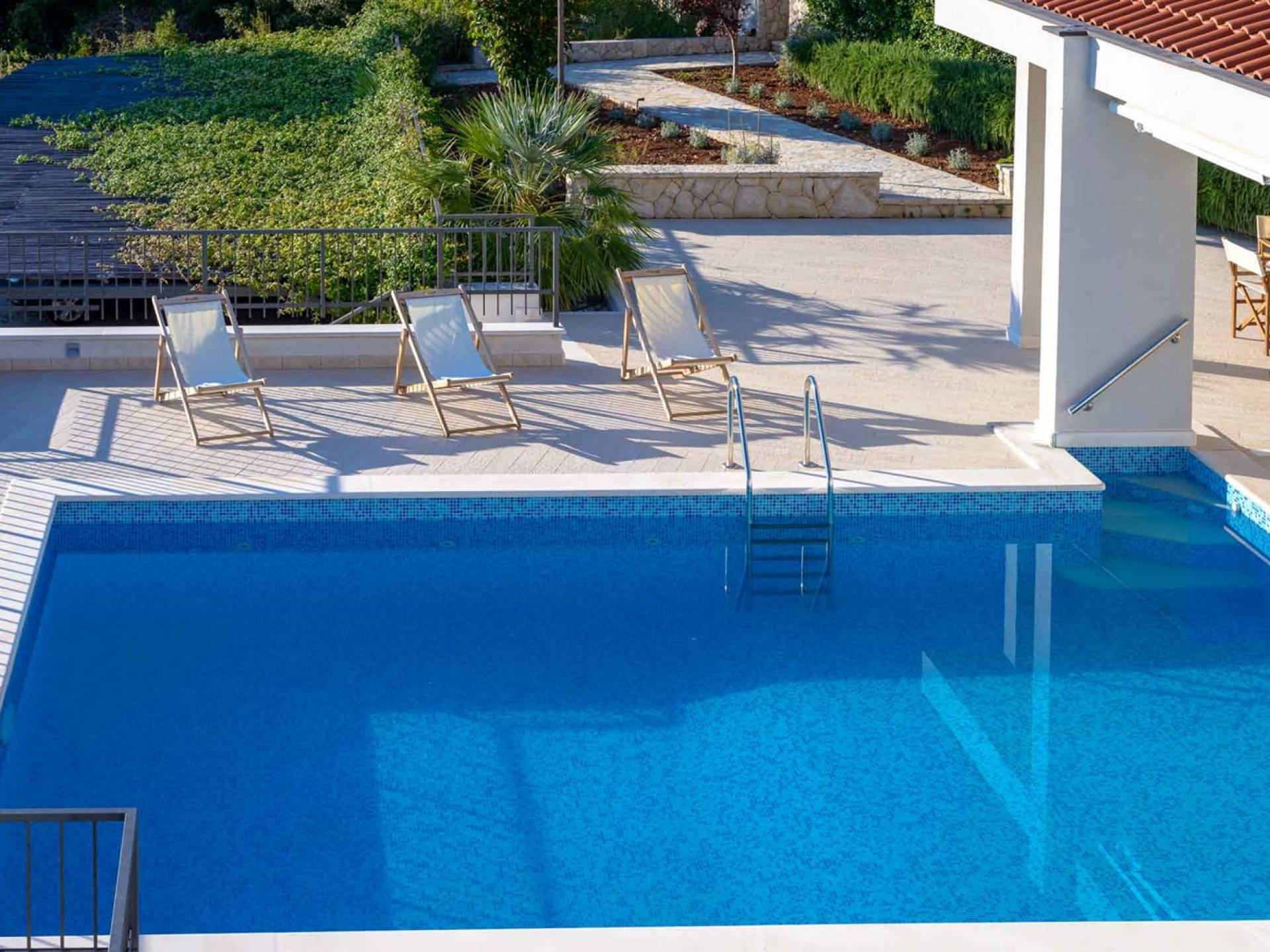 Ο εξωτερικός χώρος είναι όμορφα διαρρυθμισμένος με πολλά έπιπλα εξωτερικού χώρου στις μεγάλες βεράντες για να αξιοποιήσετε στο έπακρο την απίστευτη θέα στη θάλασσα. Η πισίνα (50 m²) περιβάλλεται από πολλές ξαπλώστρες. Κάτω από τη σκεπαστή βεράντα υπάρχουν επιπλέον ξύλινα έπιπλα εξωτερικού χώρου. Ένα μικρότερο εξοχικό έχει σαλόνι και όμορφη και μοντέρνα κουζίνα, καλά εξοπλισμένη με ηλεκτρική κουζίνα, φούρνο, απορροφητήρα, ψυγείο, καταψύκτη, φούρνο μικροκυμάτων, βραστήρα, καφετιέρα, μπλέντερ και τοστιέρα. Ο χώρος της πισίνας μπορεί να φωτίζεται τη νύχτα για να επιτρέψει στους επισκέπτες να περάσουν στο έπακρο τα ζεστά βράδια έξω. Καλής ποιότητας πέτρινες βεράντες περιβάλλουν τη βίλα και οδηγούν από τα διαμερίσματα στον χώρο της πισίνας. Το Villa Primosten Palace θα κάνει τις διακοπές σας αξέχαστες...