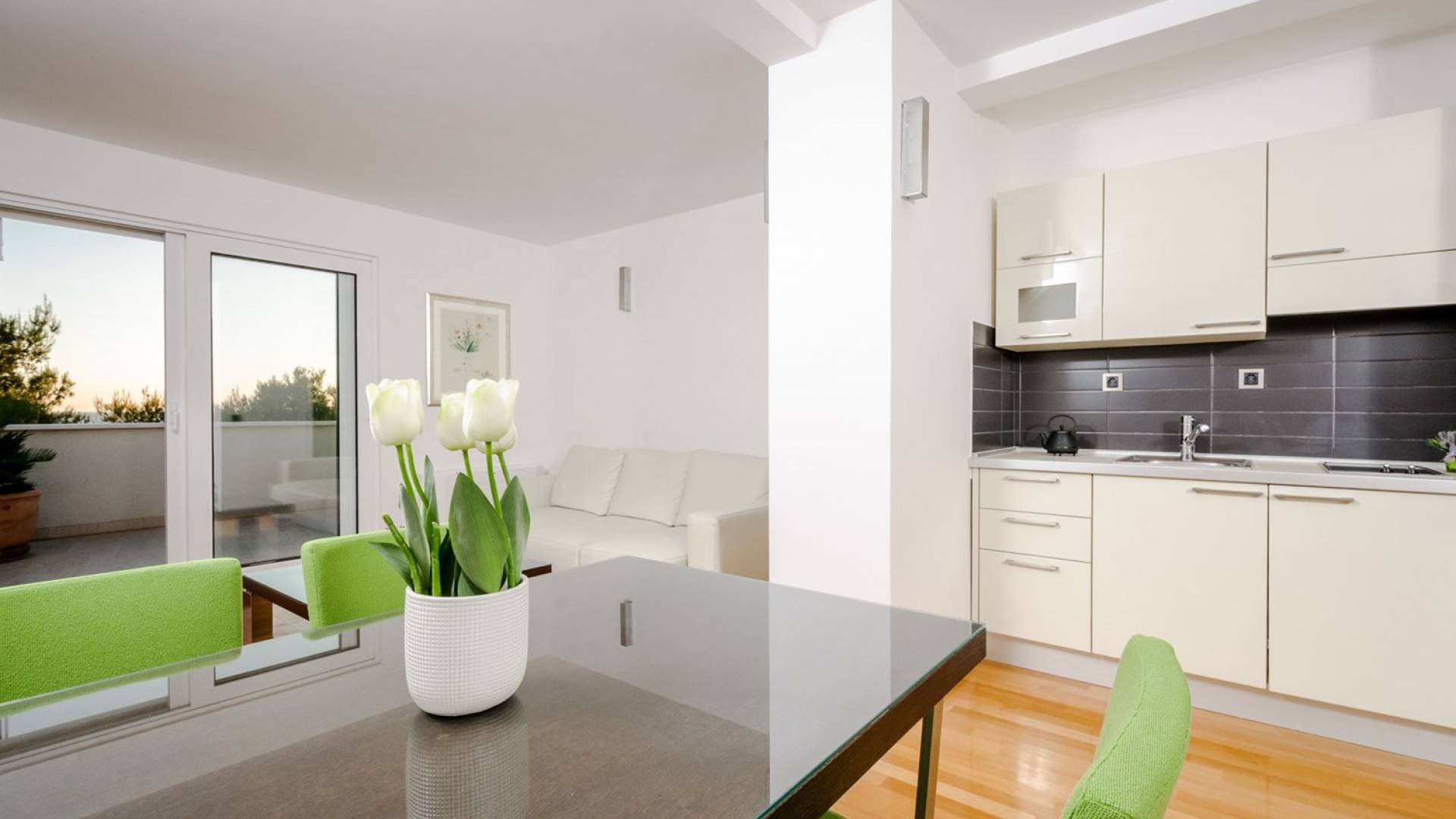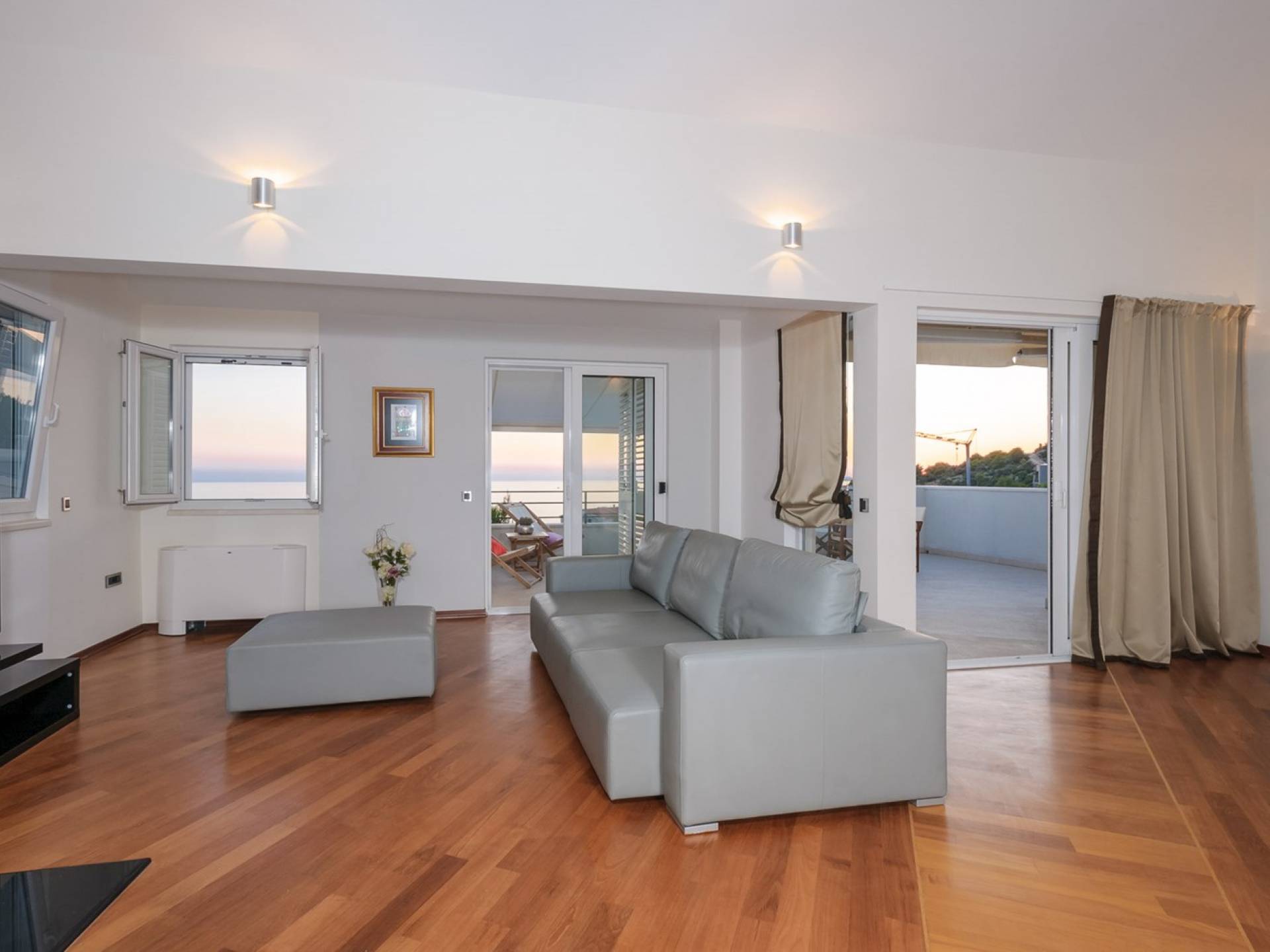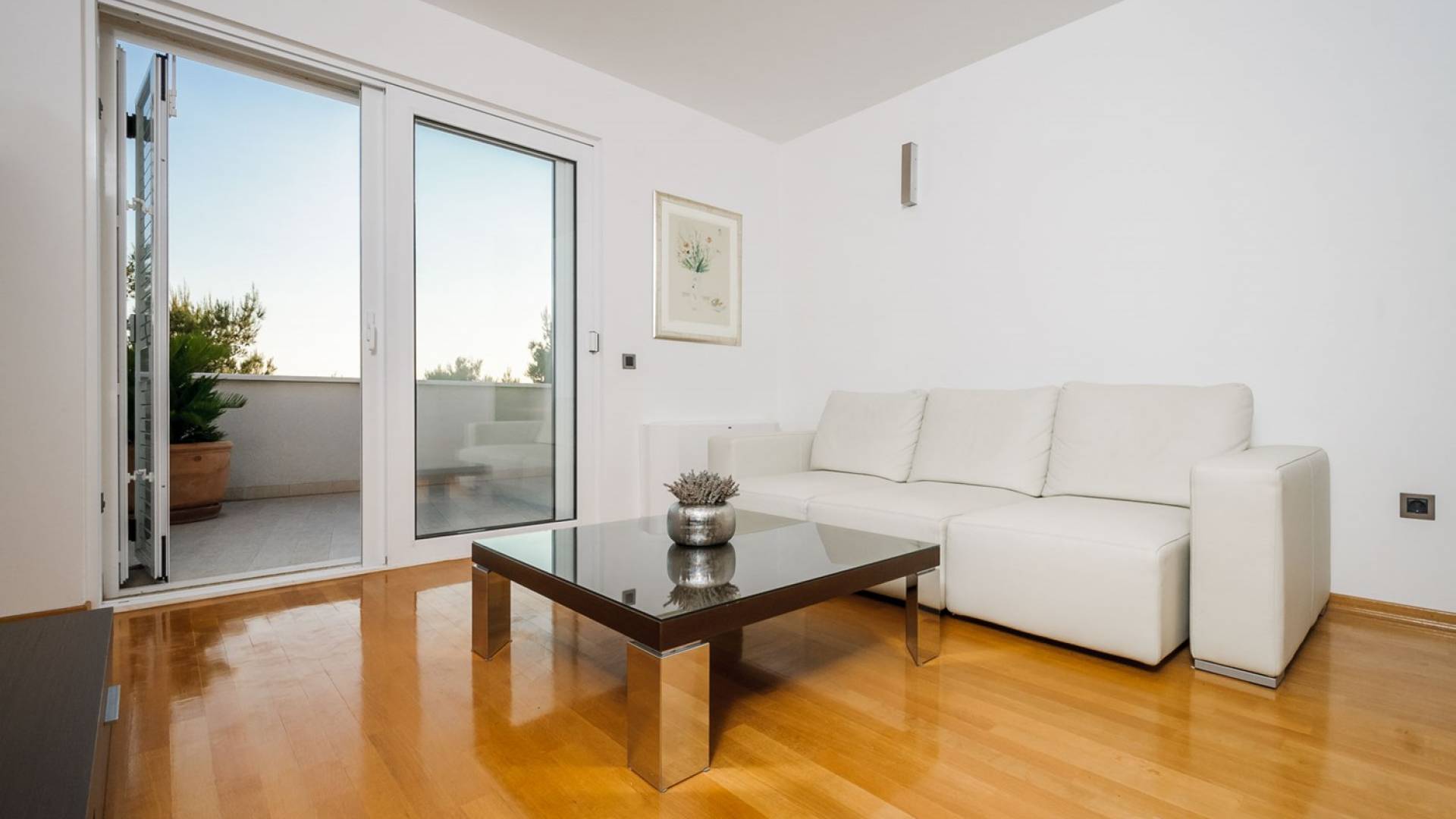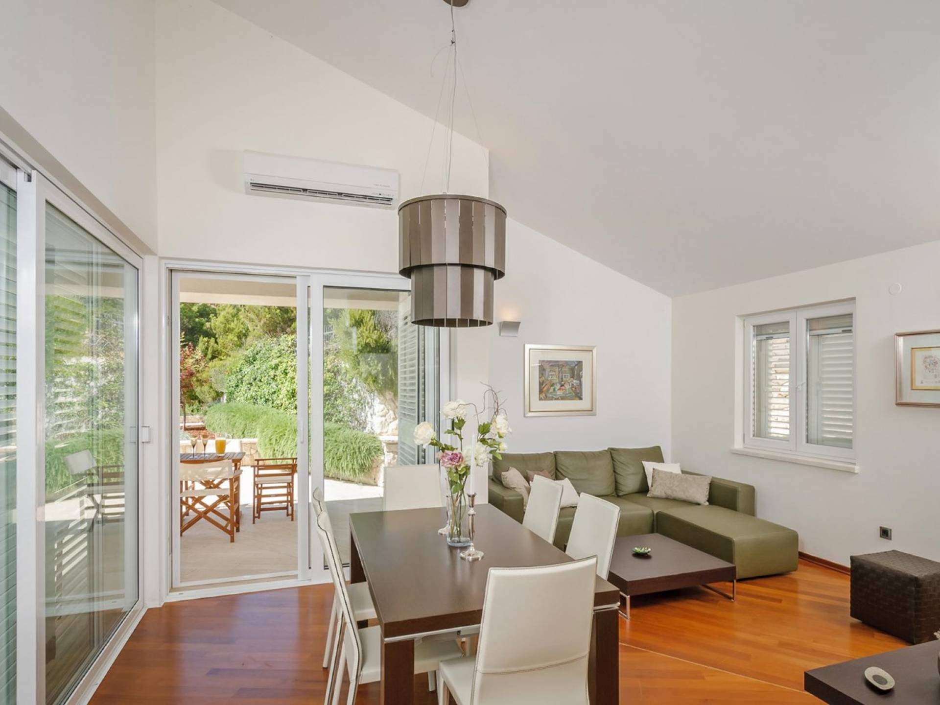 Η βίλα διαθέτει 7 υπνοδωμάτια, 5 μπάνια και μια επιπλέον τουαλέτα. Το κτίριο κατοικιών αποτελείται από 3 πλήρως επιπλωμένα διαμερίσματα. Στον πρώτο όροφο, υπάρχουν 2 πολύ παρόμοια διαμερίσματα το καθένα με 2 υπνοδωμάτια, κουζίνα, τραπεζαρία, μπάνιο με ντουζιέρα και καθιστικό με βεράντες. Οι βεράντες είναι εξοπλισμένες με έπιπλα καθιστικού όπου μπορείτε να απολαύσετε τον πρωινό καφέ. Στον δεύτερο όροφο, υπάρχει ένα άλλο πολυτελές διαμέρισμα με 3 υπνοδωμάτια, δύο υπνοδωμάτια έχουν διπλά κρεβάτια και το τρίτο δωμάτιο έχει κουκέτες. Το διαμέρισμα διαθέτει επίσης πλήρως εξοπλισμένη κουζίνα, μοντέρνο σαλόνι με τζάκι, μπάνιο με ντους μασάζ, μπάνιο με μπανιέρα τζακούζι και βεράντα με έπιπλα κήπου και ωραία θέα στη θάλασσα.