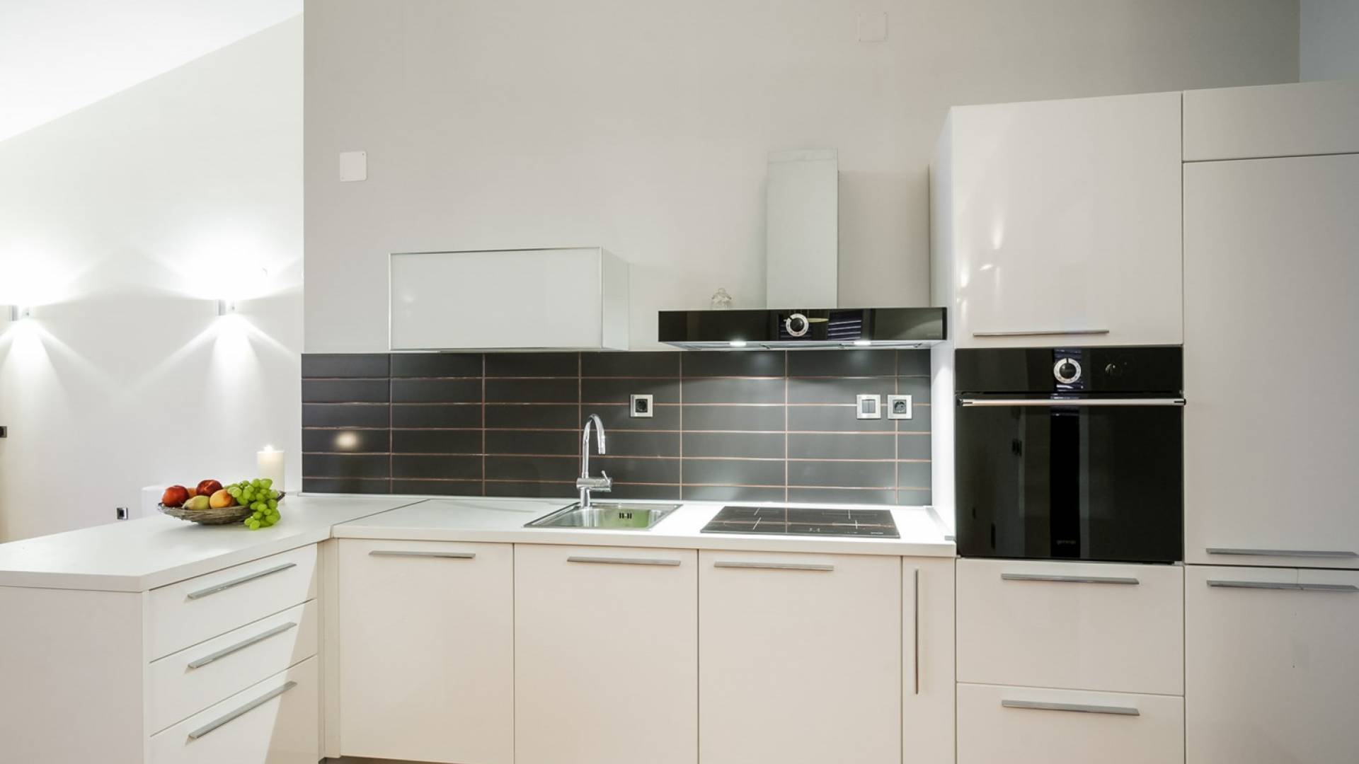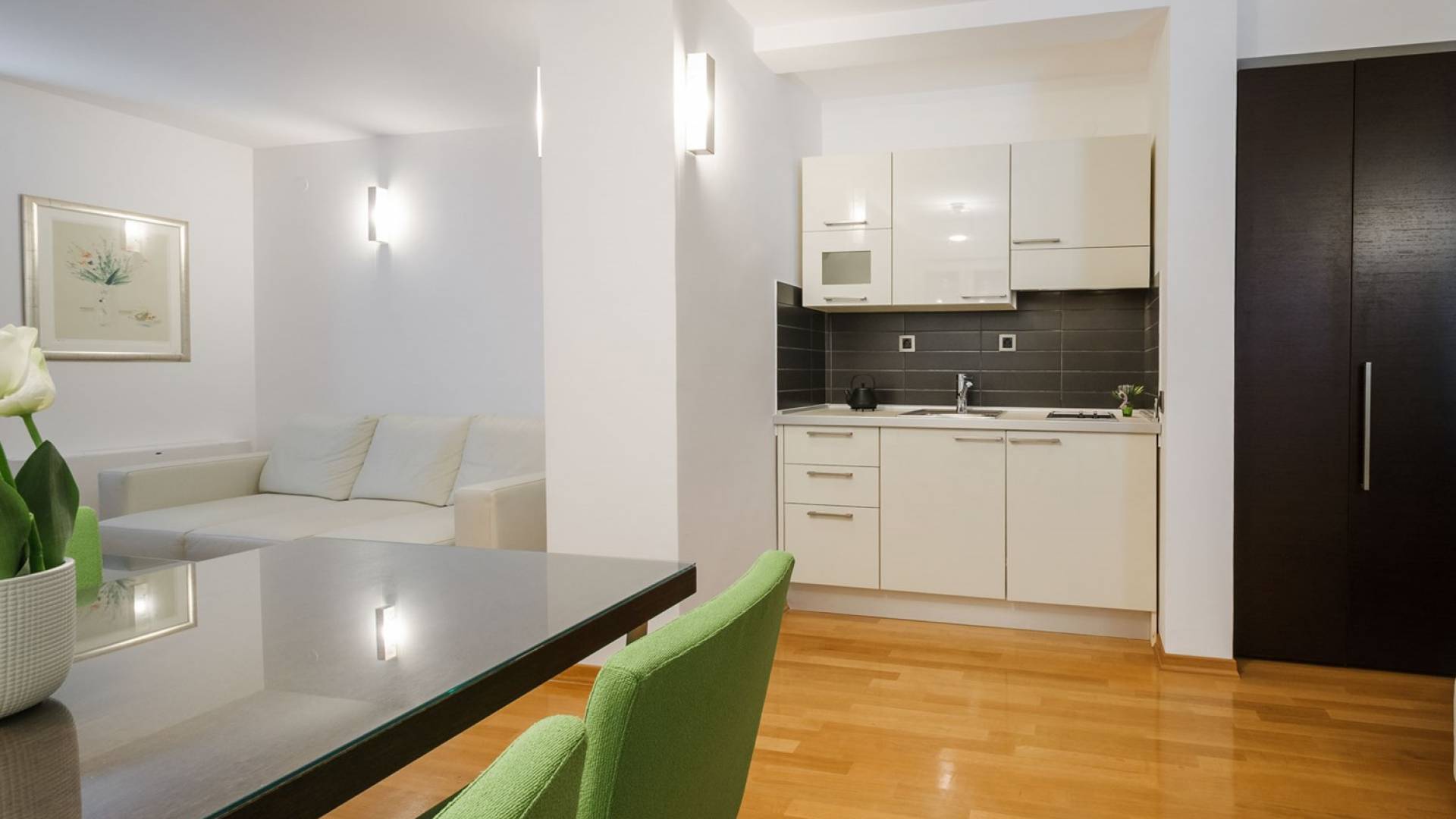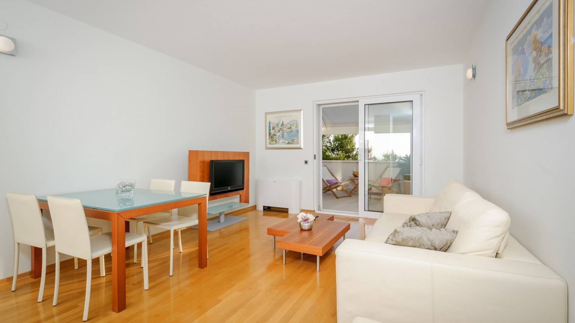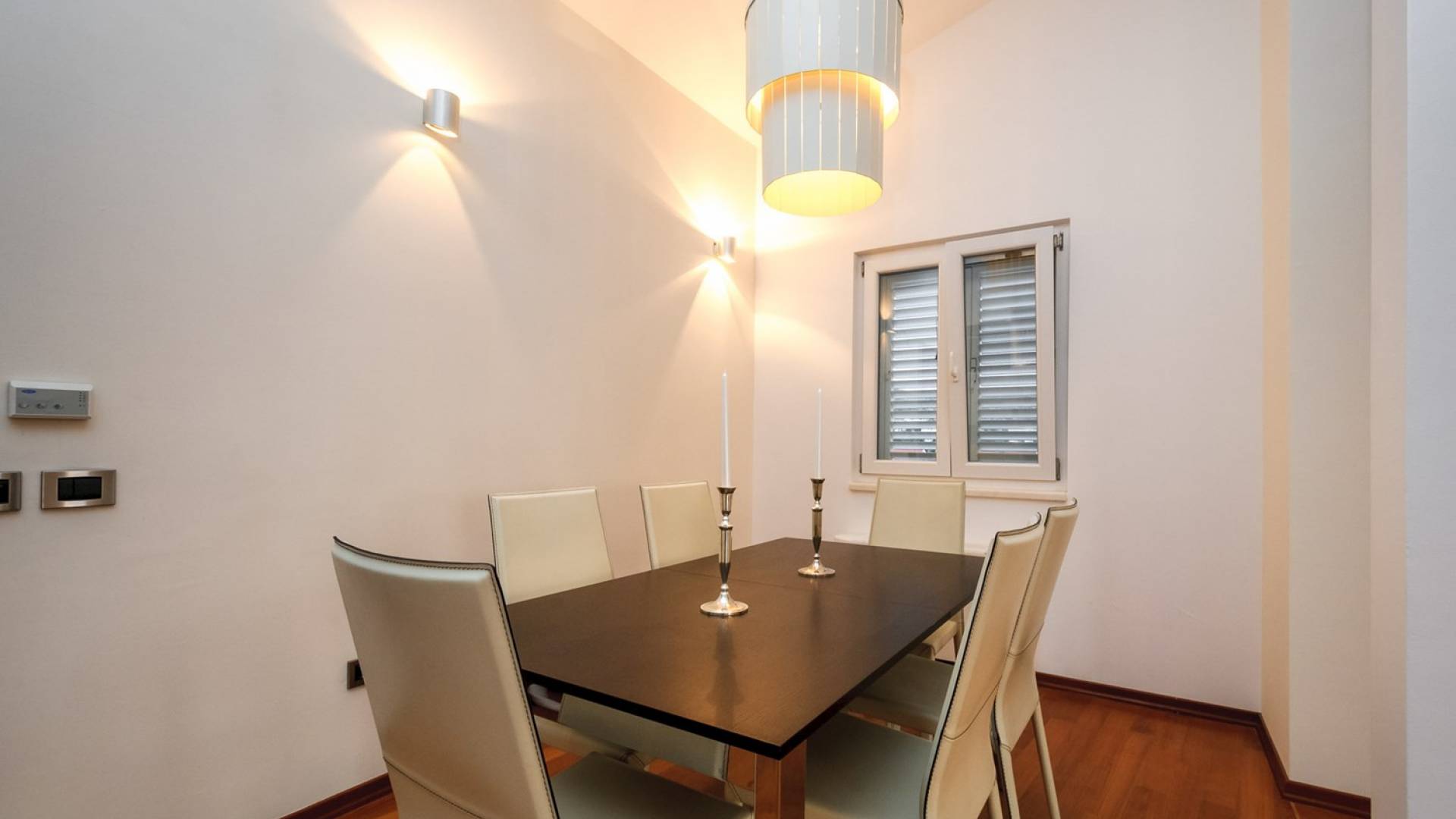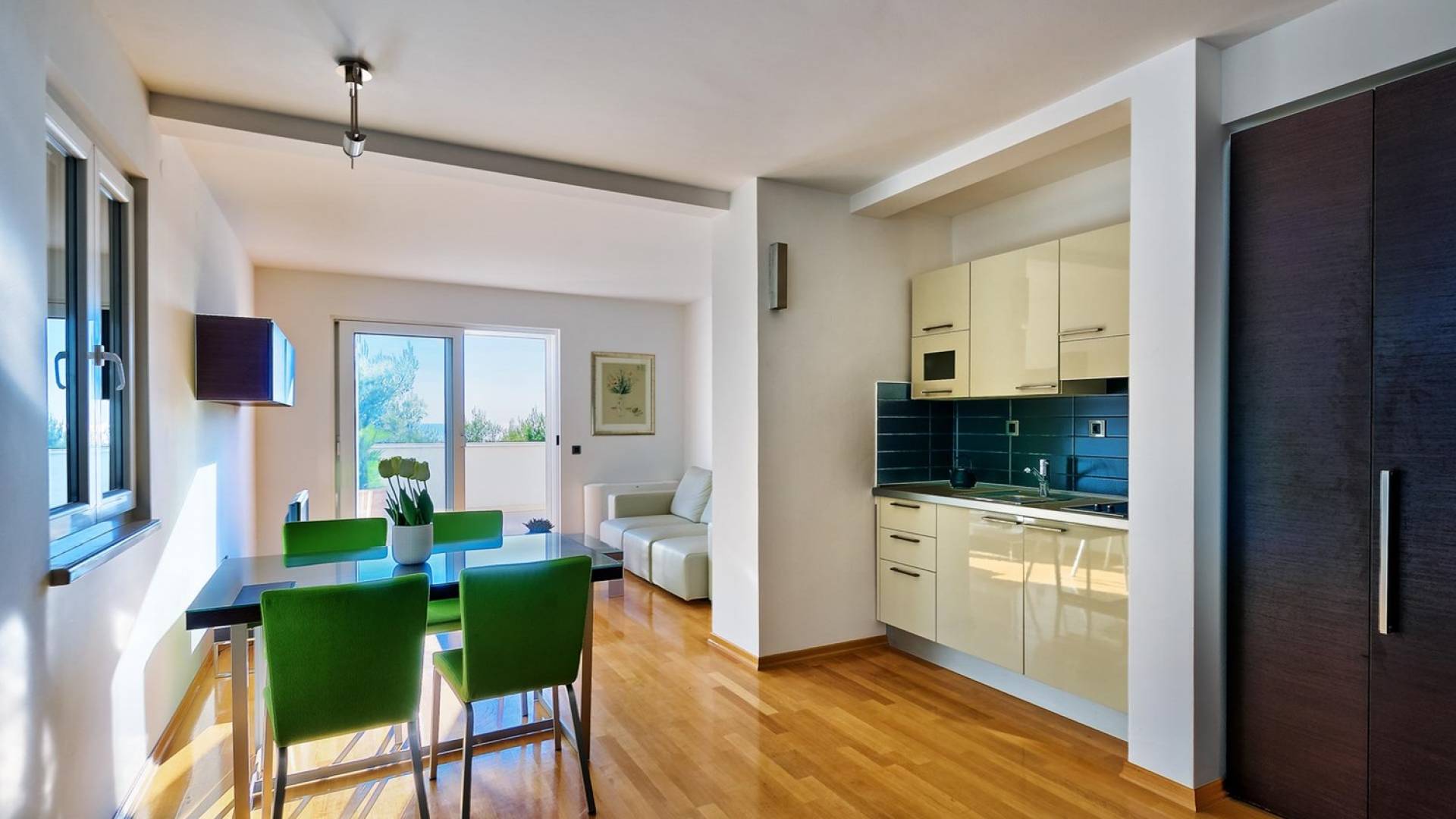 Η βίλα διαθέτει 7 υπνοδωμάτια, 5 μπάνια και μια επιπλέον τουαλέτα. Το κτίριο κατοικιών αποτελείται από 3 πλήρως επιπλωμένα διαμερίσματα. Στον πρώτο όροφο, υπάρχουν 2 πολύ παρόμοια διαμερίσματα το καθένα με 2 υπνοδωμάτια, κουζίνα, τραπεζαρία, μπάνιο με ντουζιέρα και καθιστικό με βεράντες. Οι βεράντες είναι εξοπλισμένες με έπιπλα καθιστικού όπου μπορείτε να απολαύσετε τον πρωινό καφέ. Στον δεύτερο όροφο, υπάρχει ένα άλλο πολυτελές διαμέρισμα με 3 υπνοδωμάτια, δύο υπνοδωμάτια έχουν διπλά κρεβάτια και το τρίτο δωμάτιο έχει κουκέτες. Το διαμέρισμα διαθέτει επίσης πλήρως εξοπλισμένη κουζίνα, μοντέρνο σαλόνι με τζάκι, μπάνιο με ντους μασάζ, μπάνιο με μπανιέρα τζακούζι και βεράντα με έπιπλα κήπου και ωραία θέα στη θάλασσα.