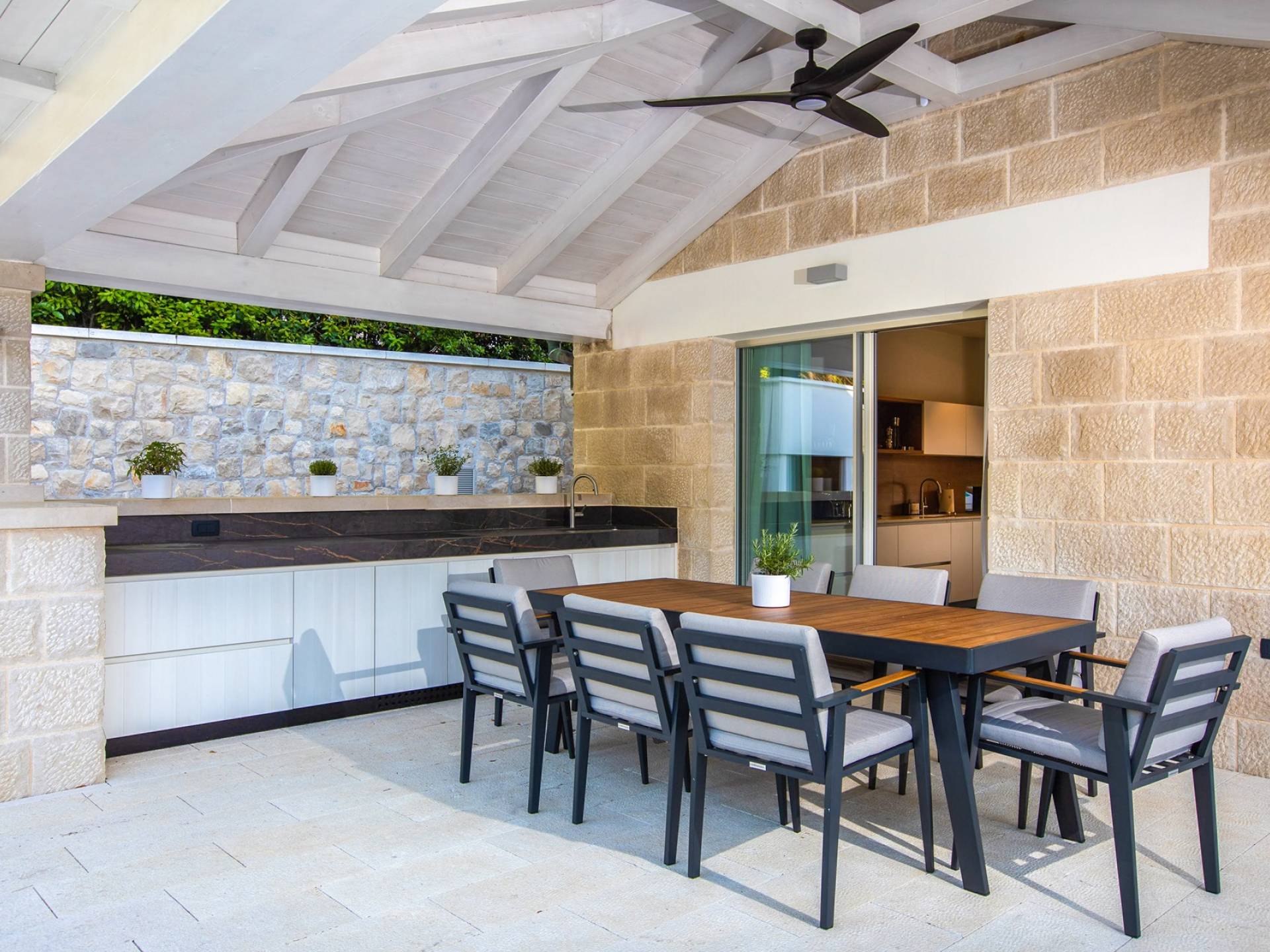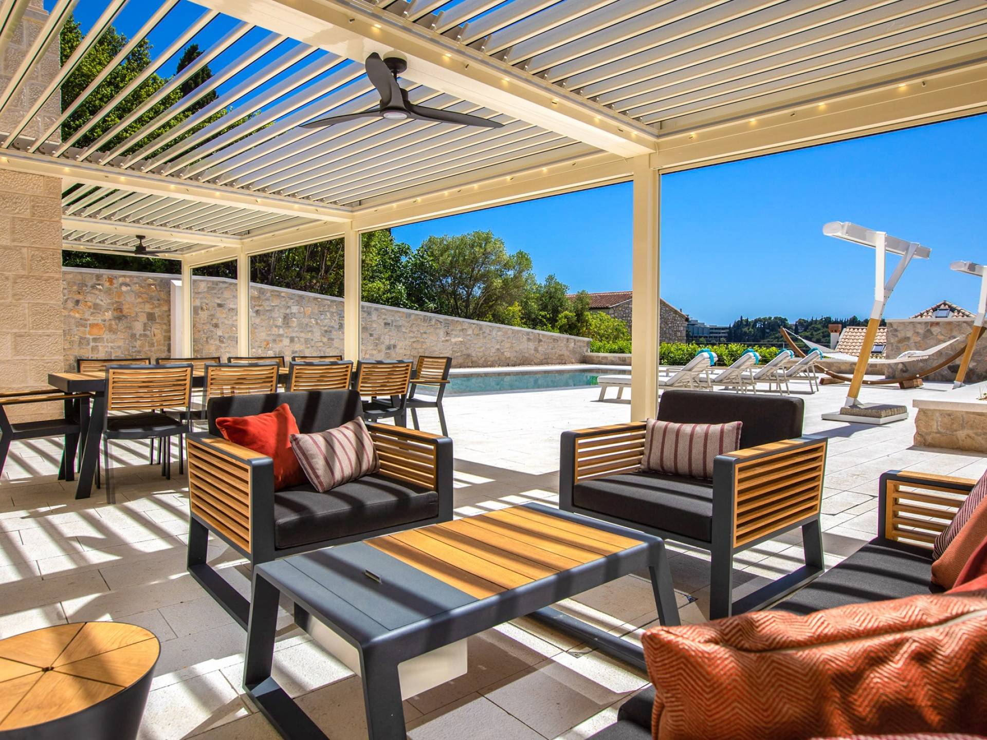 Η Luxury Villa Hera εμπνέει τους πάντες με τον συνδυασμό της καθαρής θάλασσας, του γαλάζιου του ουρανού και της όμορφης μεσογειακής φύσης - το ιδανικό μέρος για μια μοναδική εμπειρία. Φτάνοντας στην παραμυθένια πόλη Cavtat και σε μικρή απόσταση οδικώς προς την πολυτελή Villa Hera, θα μαγευτείτε από τα μεθυστικά αρώματα πεύκων και την ομορφιά του θαλάσσιου ορίζοντα. Εφιστάται η προσοχή στον καλά διατηρημένο κήπο και την πολυτελή πισίνα υπερχείλισης, η οποία είναι σίγουρα στο επίκεντρο της εξωτερικής βεράντας. Περιβάλλεται από ξαπλώστρες και σαλόνι με άνετο καναπέ που σας επιτρέπει να απολαύσετε τις απογευματινές ακτίνες του μεσογειακού ήλιου. Υπάρχει επίσης μια καλυμμένη καλοκαιρινή κουζίνα με τραπεζαρία και καρέκλες.