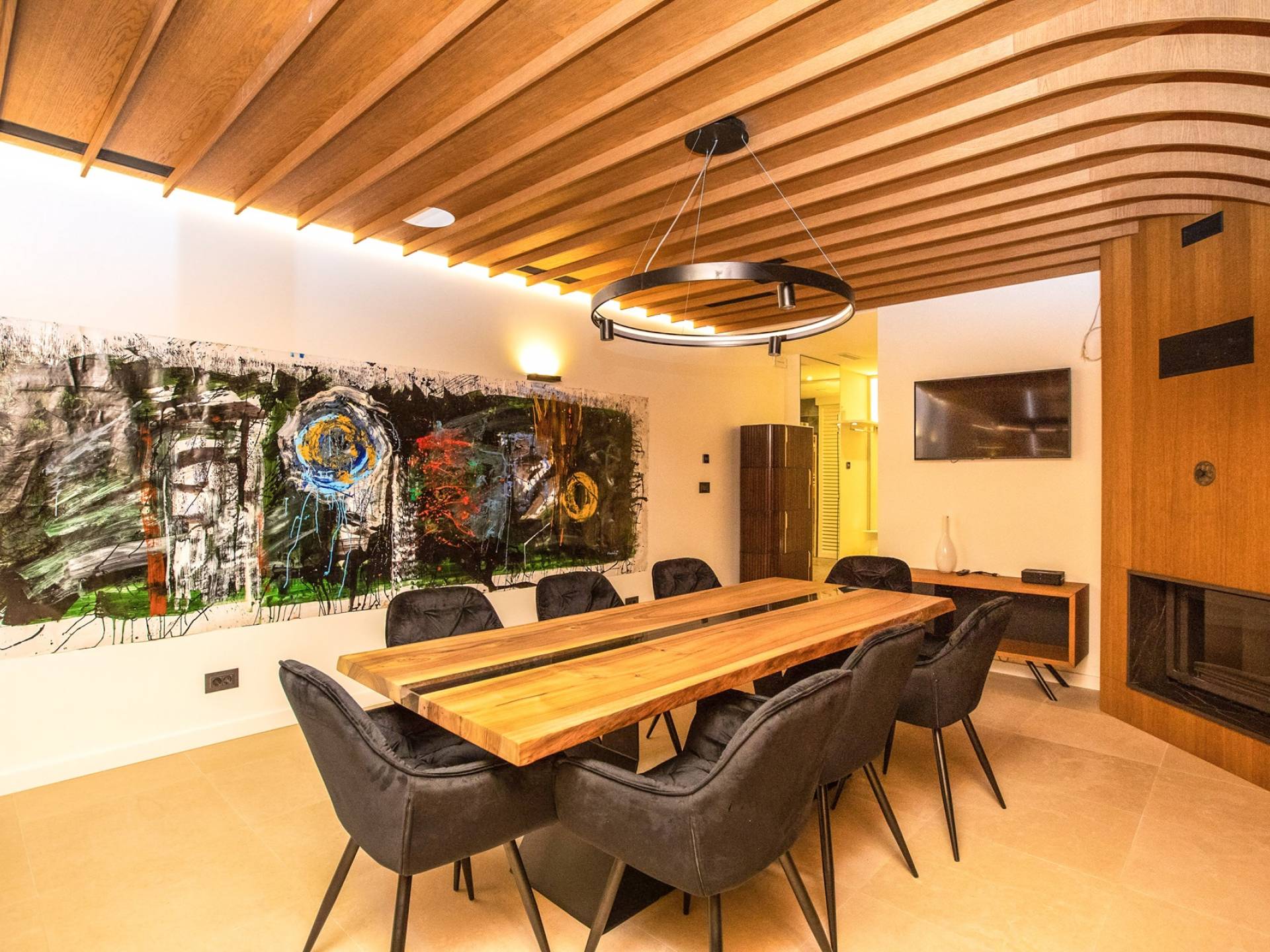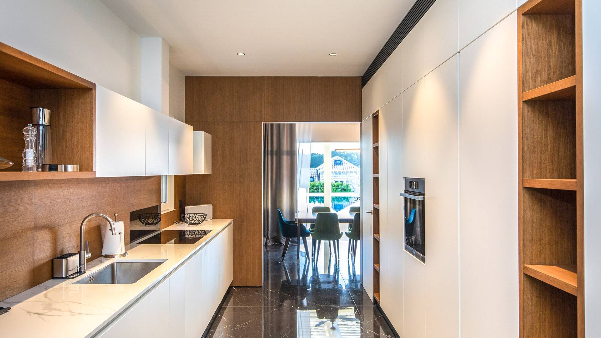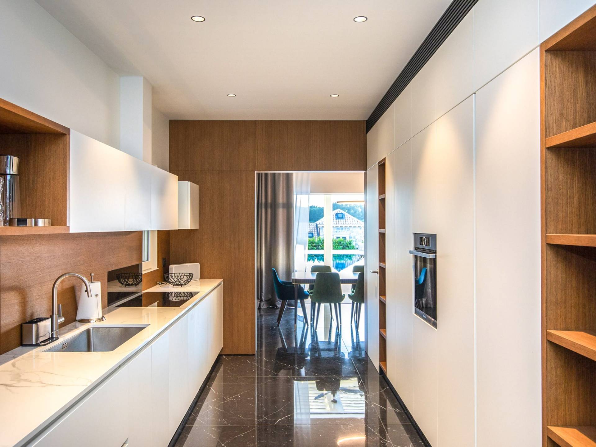 Το ισόγειο της πολυτελούς Villa Hera χωρίζεται από τη βεράντα με έναν συρόμενο γυάλινο τοίχο που επιτρέπει επαρκή ποσότητα φωτός ημέρας. Αποτελείται από ένα σχεδιαστικό σαλόνι με κομψούς καναπέδες και δορυφορική τηλεόραση. Στη συνέχεια, η ανοιχτή ιδέα συνδυάζει μια πλήρως εξοπλισμένη μοντέρνα κουζίνα με μινιμαλιστικό σχεδιασμό και γοητευτικό φαγητό. Από το κεντρικό ισόγειο - το πρώτο μέρος του ορόφου, μπορείτε επίσης να πάρετε τις σκάλες στο κάτω ισόγειο της βίλας που είναι πλήρως εξοπλισμένο για χαλάρωση. Υπάρχει κελάρι κρασιού, σάουνα και ατμόλουτρο. Το ισόγειο και ο πρώτος όροφος της βίλας χωρίζονται από το ισόγειο με εσωτερικές σκάλες. Υπάρχουν 4 πολυτελή υπνοδωμάτια με κρεβάτια king size και ιδιωτικό μπάνιο.