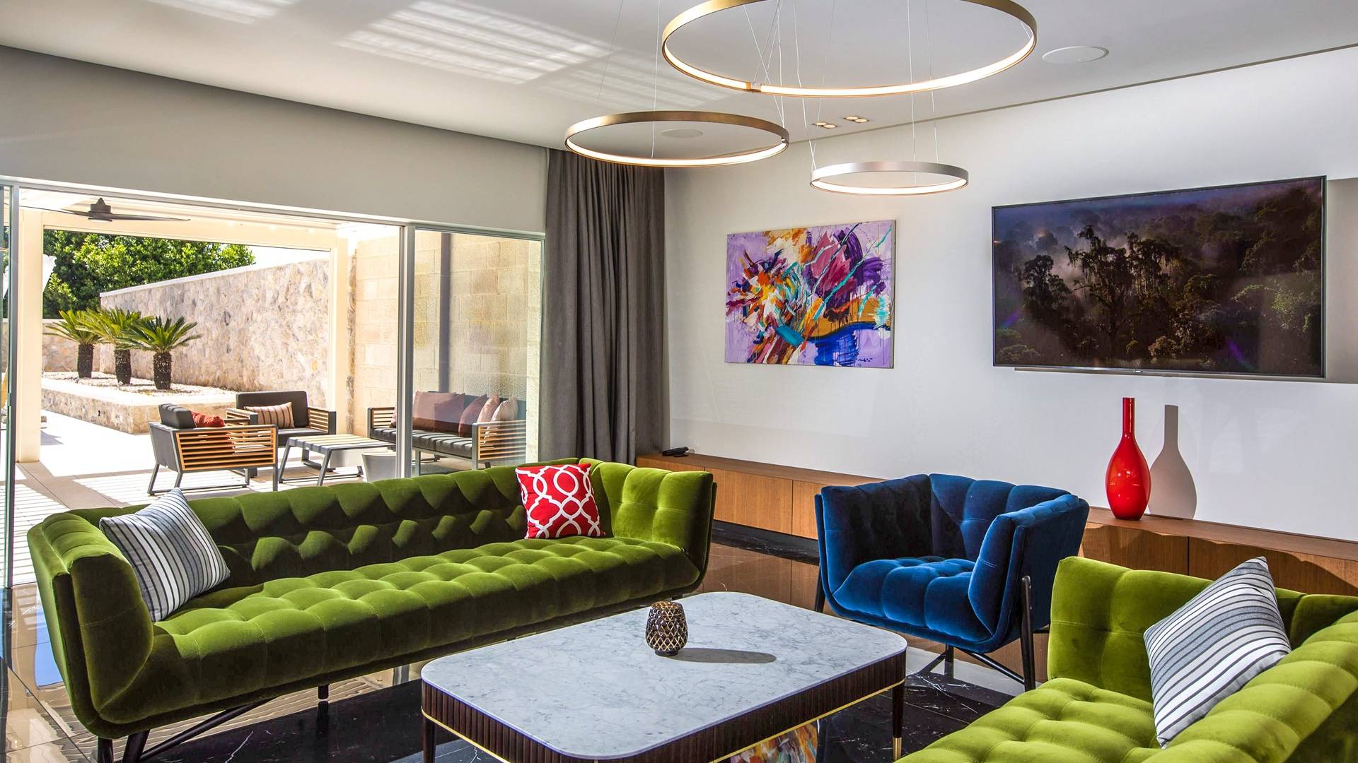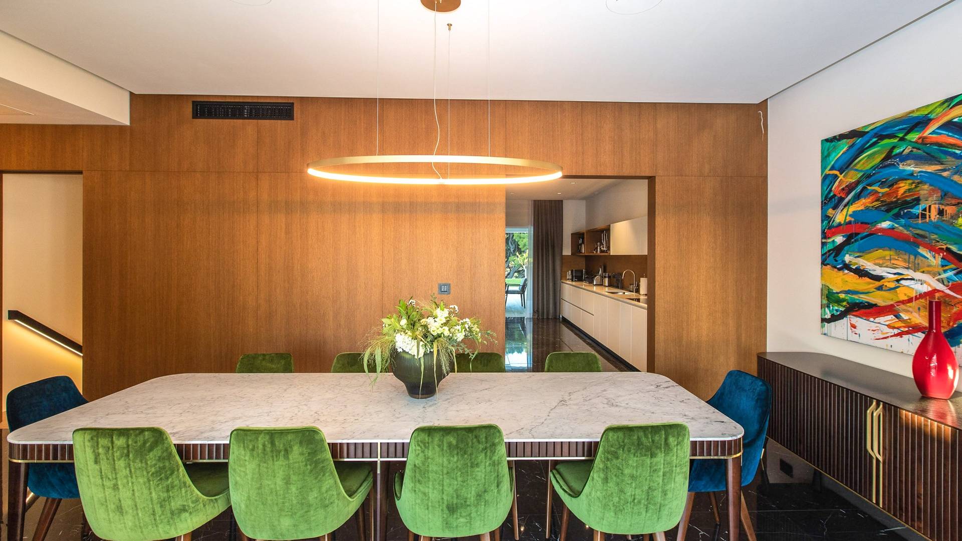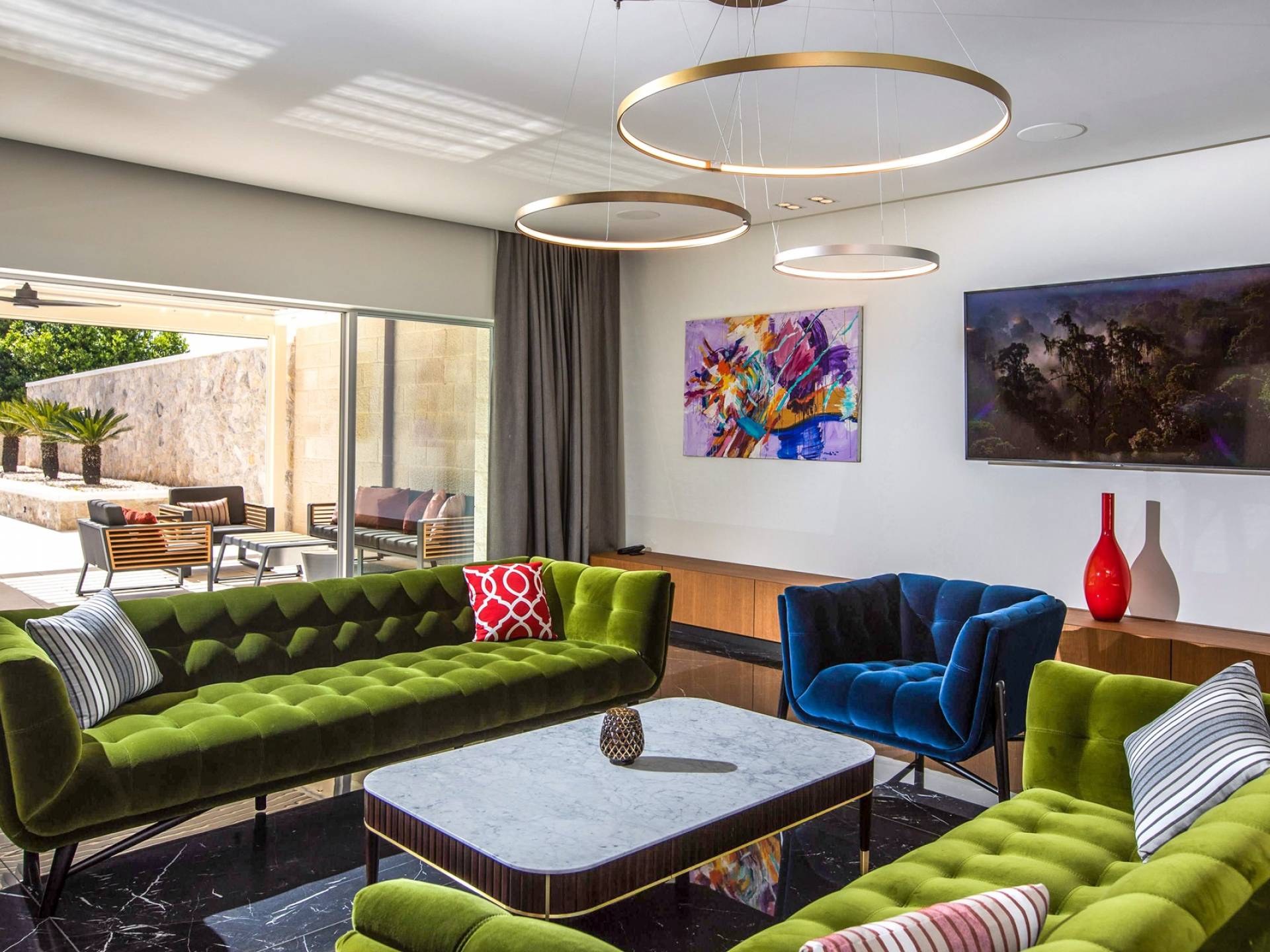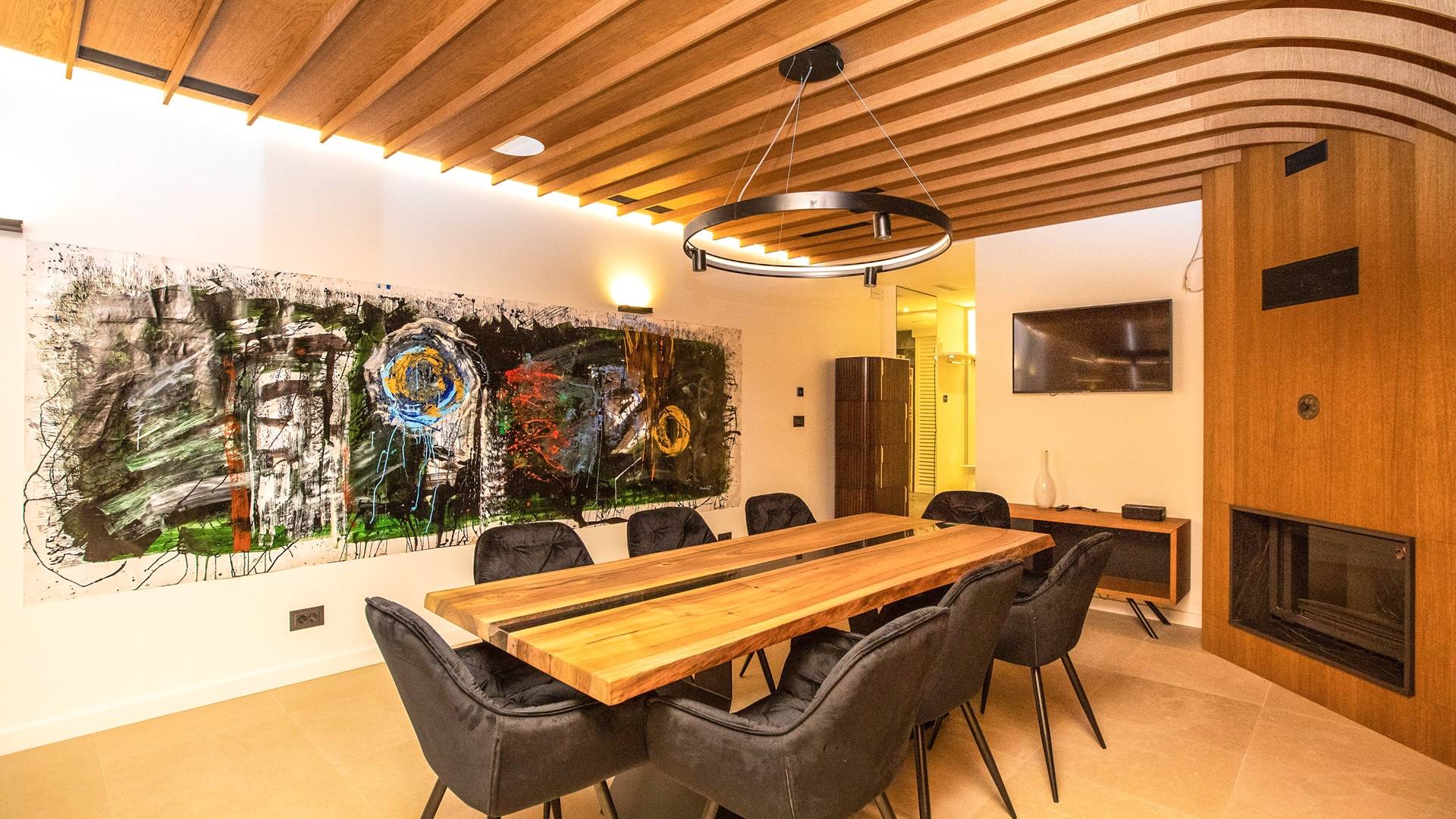 Το ισόγειο της πολυτελούς Villa Hera χωρίζεται από τη βεράντα με έναν συρόμενο γυάλινο τοίχο που επιτρέπει επαρκή ποσότητα φωτός ημέρας. Αποτελείται από ένα σχεδιαστικό σαλόνι με κομψούς καναπέδες και δορυφορική τηλεόραση. Στη συνέχεια, η ανοιχτή ιδέα συνδυάζει μια πλήρως εξοπλισμένη μοντέρνα κουζίνα με μινιμαλιστικό σχεδιασμό και γοητευτικό φαγητό. Από το κεντρικό ισόγειο - το πρώτο μέρος του ορόφου, μπορείτε επίσης να πάρετε τις σκάλες στο κάτω ισόγειο της βίλας που είναι πλήρως εξοπλισμένο για χαλάρωση. Υπάρχει κελάρι κρασιού, σάουνα και ατμόλουτρο. Το ισόγειο και ο πρώτος όροφος της βίλας χωρίζονται από το ισόγειο με εσωτερικές σκάλες. Υπάρχουν 4 πολυτελή υπνοδωμάτια με κρεβάτια king size και ιδιωτικό μπάνιο.