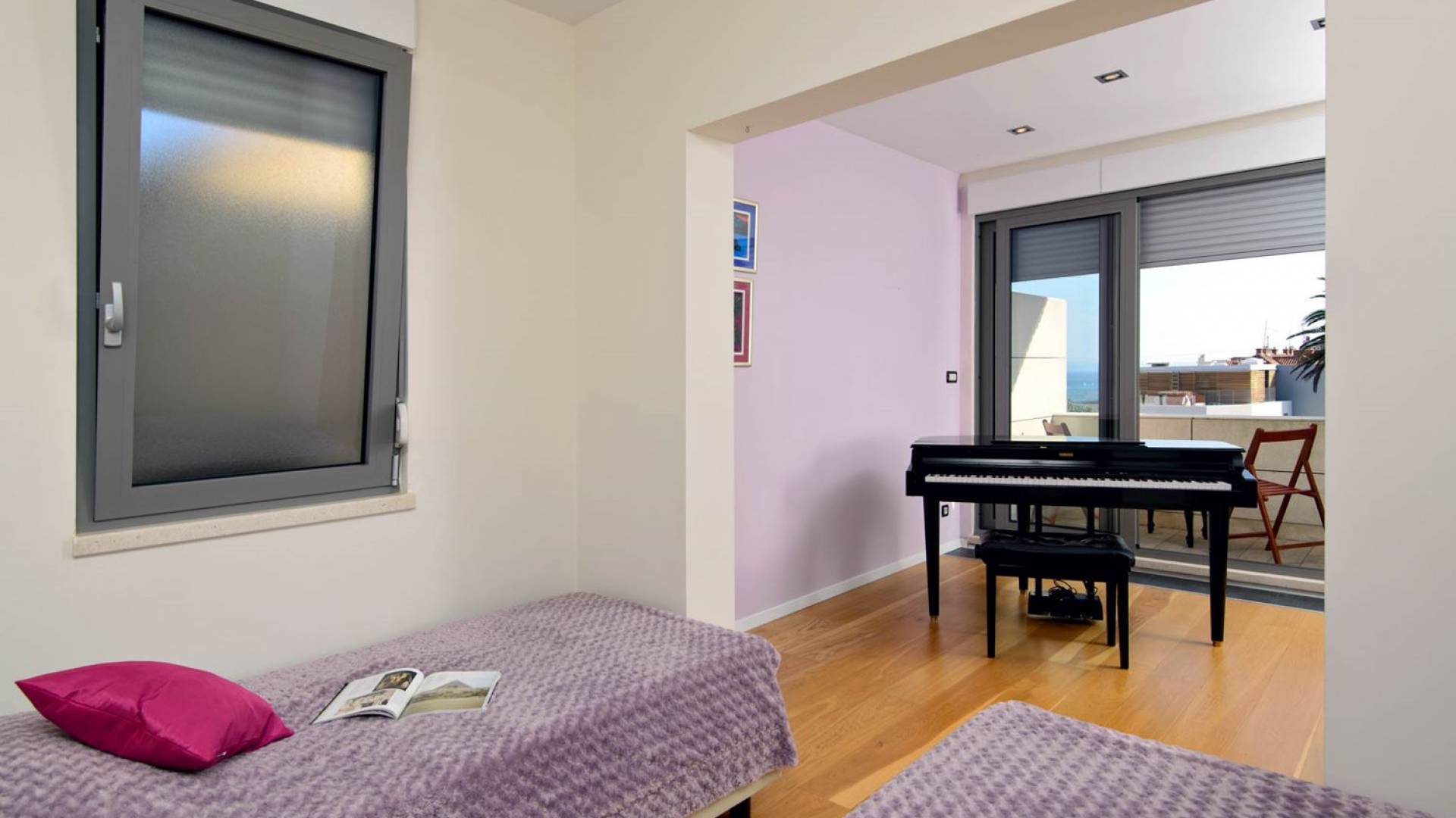 Υπάρχει επίσης μια μεγάλη και ευρύχωρη ντουλάπα – το όνειρο κάθε γυναίκας. Σε αυτόν τον όροφο, υπάρχει επίσης ένα μπάνιο με μπανιέρα. Στον δεύτερο όροφο, θα βρείτε ένα μεγάλο υπνοδωμάτιο με διπλό κρεβάτι και μια όμορφη βεράντα. Η θέα είναι μια εκπληκτική θέα στη θάλασσα. Η βεράντα, εξοπλισμένη με σετ καθιστικού, προσφέρει αξέχαστες στιγμές ηρεμίας και χαλάρωσης. Στον δεύτερο όροφο της Villa Marcellina, υπάρχει επίσης ένα δωμάτιο με δύο μονά κρεβάτια, το οποίο διαθέτει ξεχωριστό μπαλκόνι με θέα στη θάλασσα. Ένα μπάνιο με δύο ντους και μια μπανιέρα έχει βρει την ιδανική του θέση σε αυτό το επίπεδο.