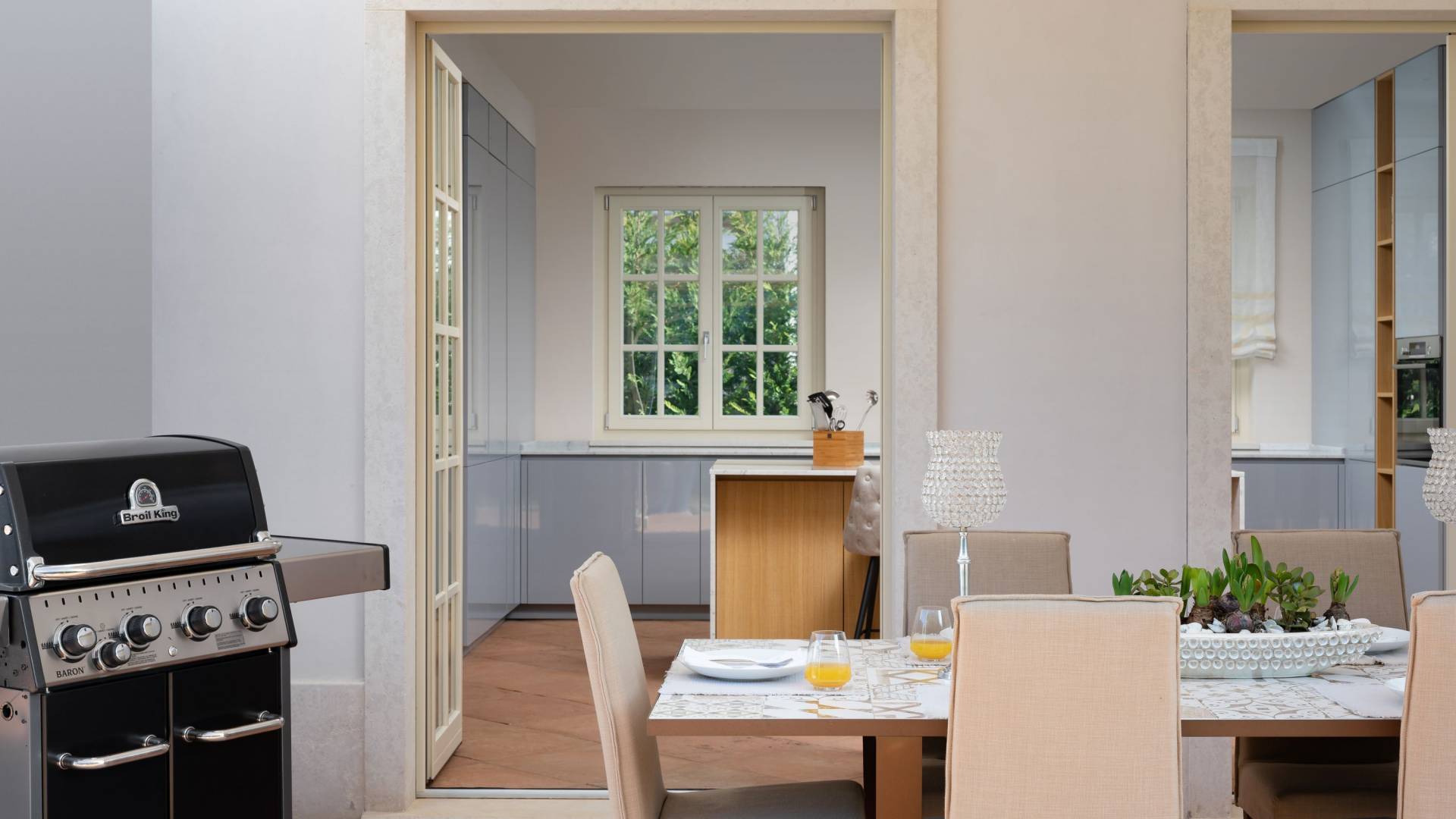 Στο ισόγειο, υπάρχει ένα φωτεινό σαλόνι με δορυφορική τηλεόραση, που συνδέεται με μια εξίσου πολυτελή τραπεζαρία και πλήρως εξοπλισμένη κουζίνα. Από το σαλόνι, μπορείτε να μπείτε στον επαγγελματικά διακοσμημένο κήπο. Ένα υπνοδωμάτιο με διπλό κρεβάτι, ιδιωτικό μπάνιο και άμεση πρόσβαση στην πισίνα βρίσκεται στο ισόγειο. Στον πρώτο όροφο, υπάρχουν άλλα δύο υπνοδωμάτια, το καθένα με ένα άνετο διπλό κρεβάτι και ιδιωτικό μπάνιο, και το ένα από αυτά έχει μεγάλο μπαλκόνι. Το σπίτι είναι πλήρως κλιματιζόμενο, διαθέτει ασύρματο internet και προσφέρει απόλυτη ιδιωτικότητα.
