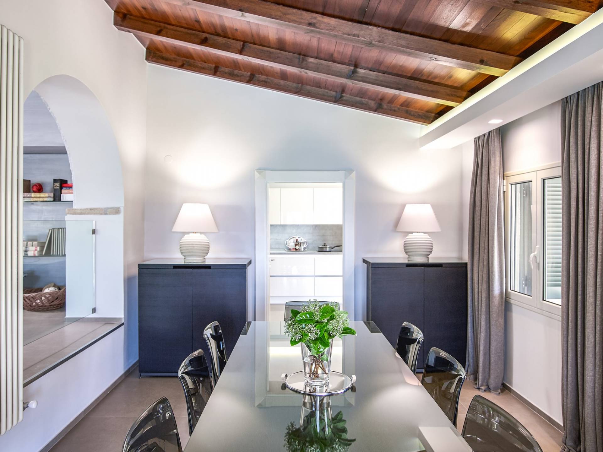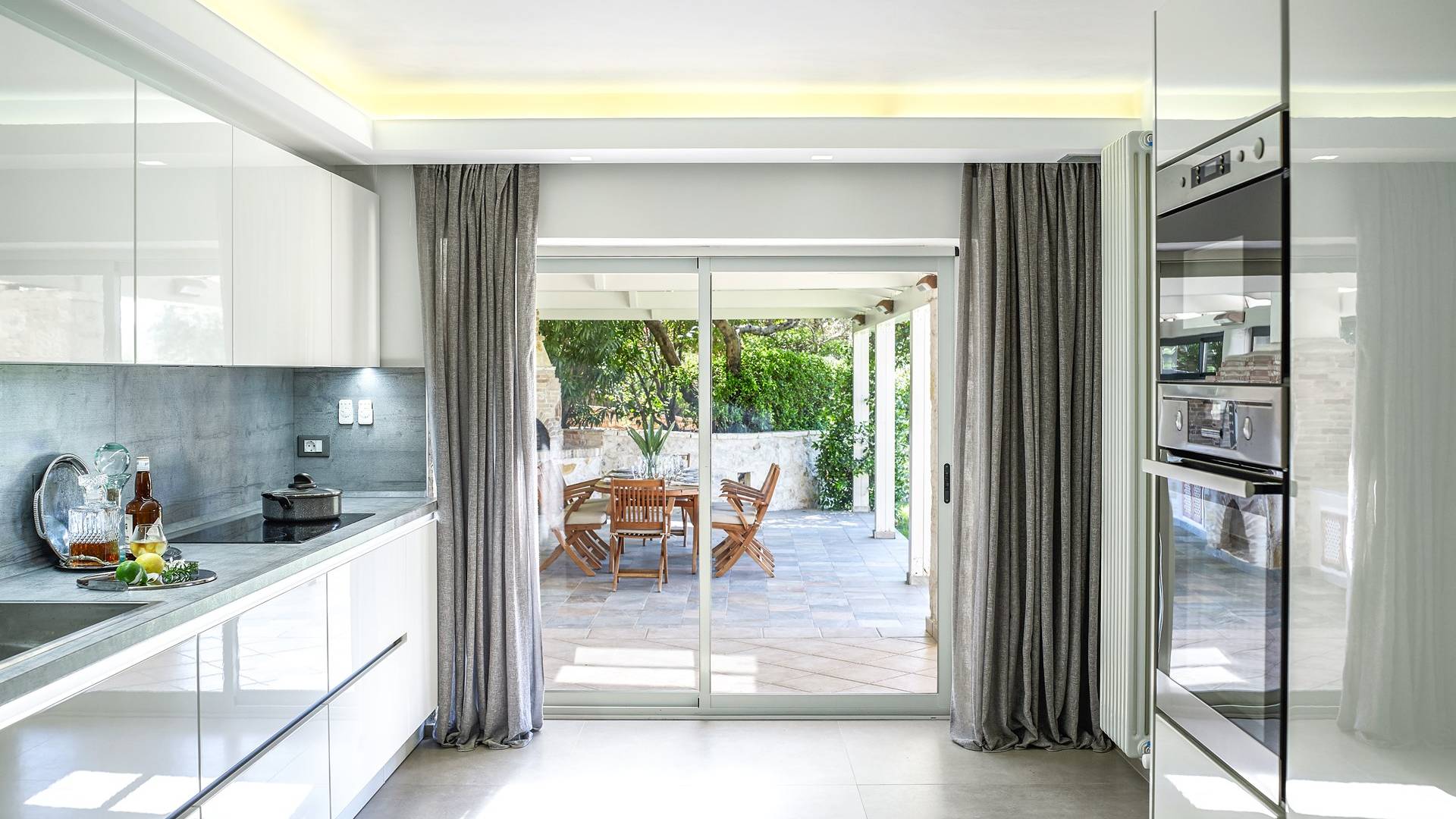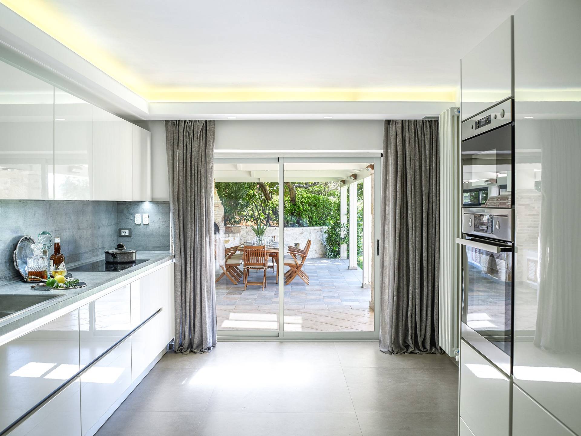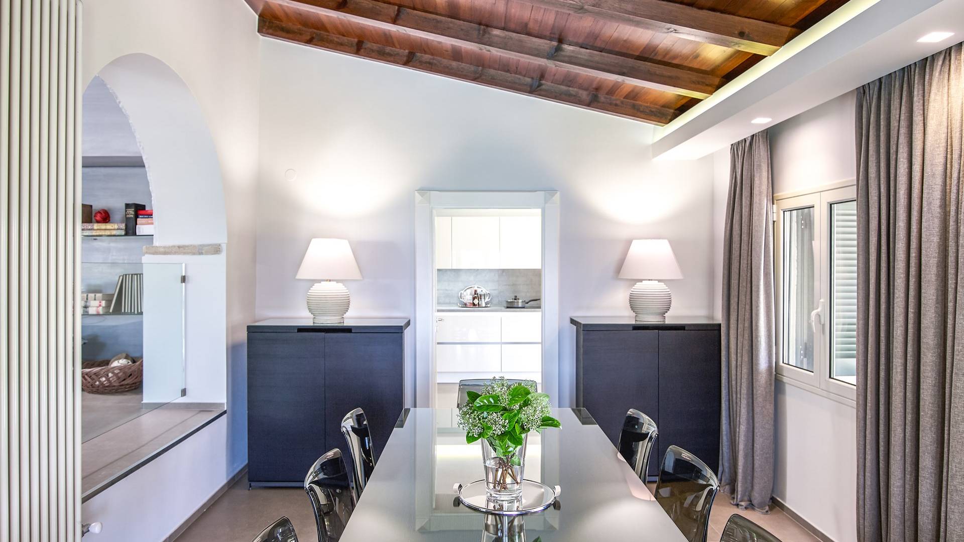 Το στολίδι στο στέμμα αυτής της βίλας είναι η εντυπωσιακή πισίνα και το υδρομασάζ που βρίσκονται υπέροχα στην κορυφή του κήπου - που φαίνεται να συνδέουν απρόσκοπτα τα ζαφειρένια νερά με τον ασύνεφο μεσογειακό ουρανό. Η πισίνα υπερχείλισης θερμαίνεται (χωρίς χρέωση) τον Μάιο, τον Ιούνιο, τον Σεπτέμβριο και τον Οκτώβριο - ιδανική για πιτσιρίκια που πιτσιλίζουν στην πισίνα μέσα στα πιο δροσερά κλίματα στην αρχή και στο τέλος της σεζόν. Η Villa Christina έχει διακοσμηθεί κομψά με μεγάλη φαντασία και προσοχή στη λεπτομέρεια, αξιοποιώντας στο έπακρο την εντυπωσιακή τοποθεσία της. Αυτή η βίλα αποπνέει κομψότητα με ενιαίο χώρο καθιστικού και τραπεζαρίας στο ισόγειο, που αποπνέει μια διαχρονική ατμόσφαιρα με ταλαιπωρημένα λευκά ξύλινα δοκάρια και ένα γυάλινο κιγκλίδωμα για τις σκάλες στο σαλόνι, μια άψογη λαμπερή λευκή κουζίνα με επιτοίχιο φούρνο και φούρνο μικροκυμάτων , και μια ευρύχωρη ξεχωριστή τραπεζαρία.