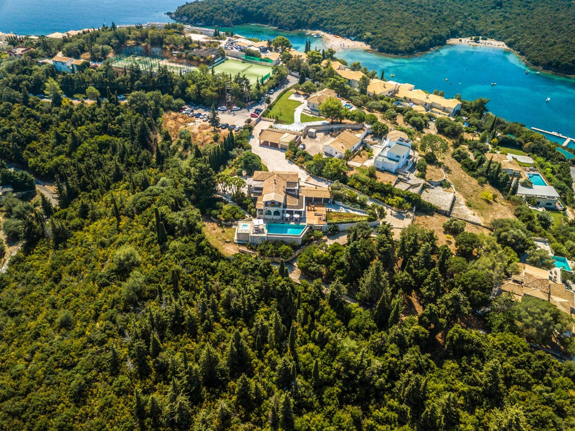 Το λιμάνι και το χωριό των Συβότων απέχουν 25 λεπτά με τα πόδια ή πέντε λεπτά με το αυτοκίνητο και έχουν μια μεγάλη ποικιλία από εστιατόρια και καταστήματα που βρίσκονται γύρω από τη δημοφιλή Μαρίνα για να επιλέξετε όλα περιτριγυρισμένα από βουνοπλαγιές καλυμμένες με πεύκα, κυπαρίσσια και ελιές. φτάνουν μέχρι την άκρη του νερού. Η απόκρημνη ακτογραμμή είναι γεμάτη με αμμώδεις κόλπους και βραχώδεις κολπίσκους με τη λεπτή λευκή χοντρή άμμο και τα γαλαζοπράσινα νερά. Η Μέγα Άμμος είναι μια από τις πιο γνωστές παραλίες και ο κόλπος του Βρακά φημίζεται για τις εγκαταστάσεις θαλάσσιων σπορ. Είναι μέρος της διασκέδασης να οδηγείτε ένα θαλάσσιο ταξί στις λιγότερο γνωστές παραλίες ή να νοικιάσετε ένα μικρό μηχανοκίνητο σκάφος, να κάνετε πικνίκ και να εξερευνήσετε αυτήν την υπέροχα καταπράσινη και καταπράσινη ακτογραμμή.