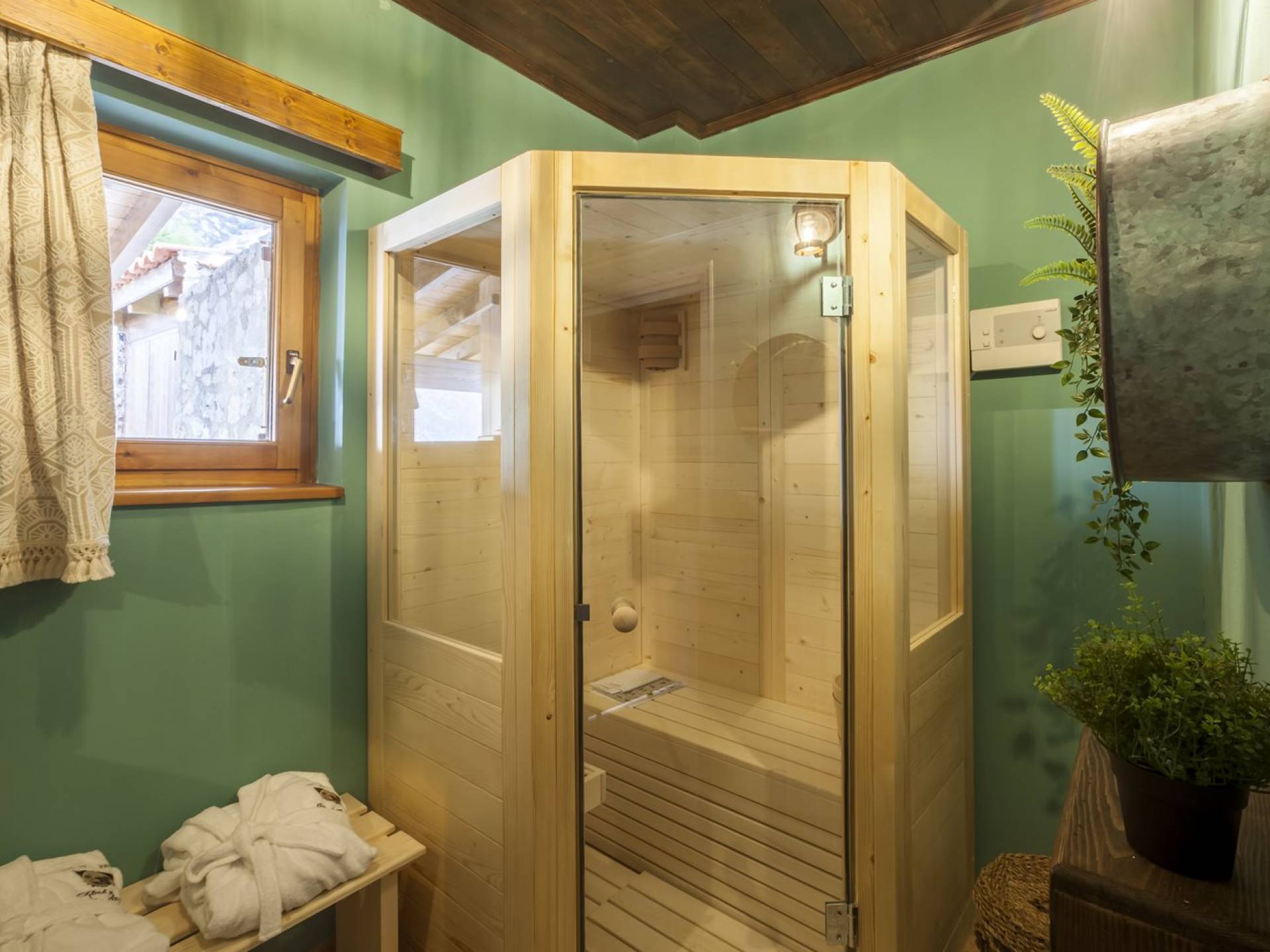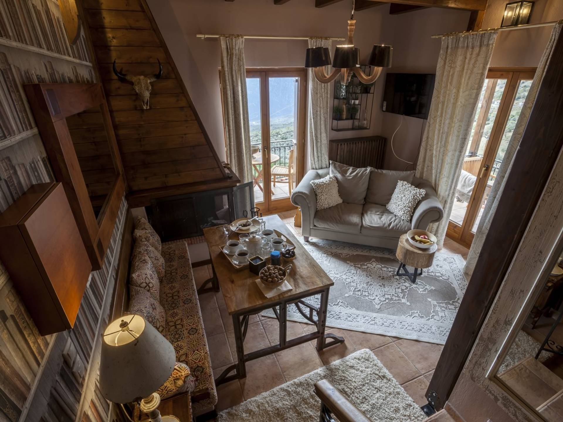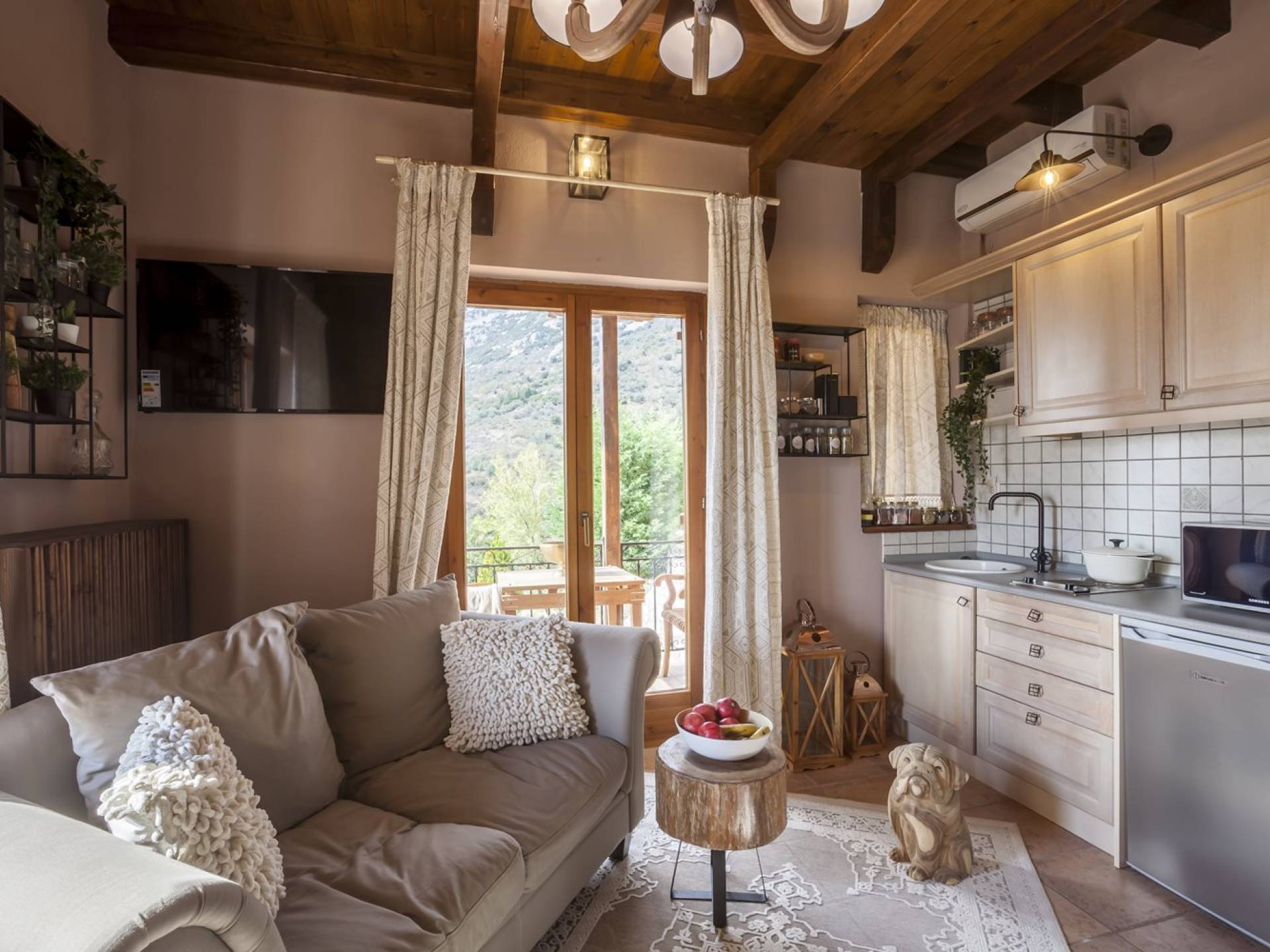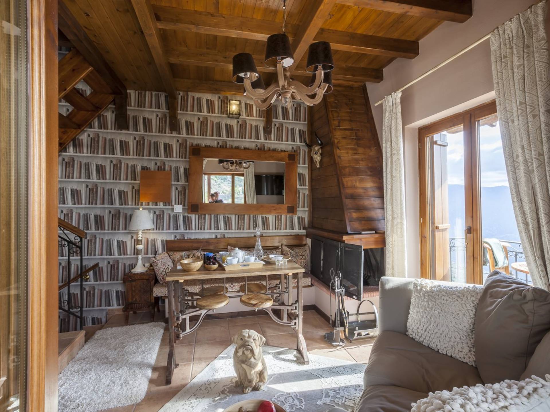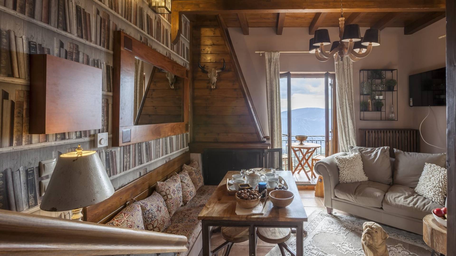 Η θέα από τα μπαλκόνια και τη βεράντα κόβει την ανάσα. Βρίσκεσαι σε υψόμετρο 900+ μέτρων και είναι σαν να απολαμβάνεις τον ήλιο και τα σύννεφα από πρώτη θέση. Η διακόσμηση είναι ιδιαίτερα εκλεπτυσμένη με την ενοχλητική πολυτέλεια που προκαλεί ζεστασιά και φινέτσα. Το σπίτι είναι εξοπλισμένο με hi-fi, τηλεοράσεις τελευταίου τύπου, ηλεκτρική κουζίνα, φούρνο μικροκυμάτων, κλιματισμό, τζάκι, τοστιέρα, μπόιλερ και όλων των ειδών τα μαγειρικά σκεύη, σάουνα και καμπίνα υδρομασάζ για όσους αναζητούν χαλάρωση και αποτοξίνωση 100%.