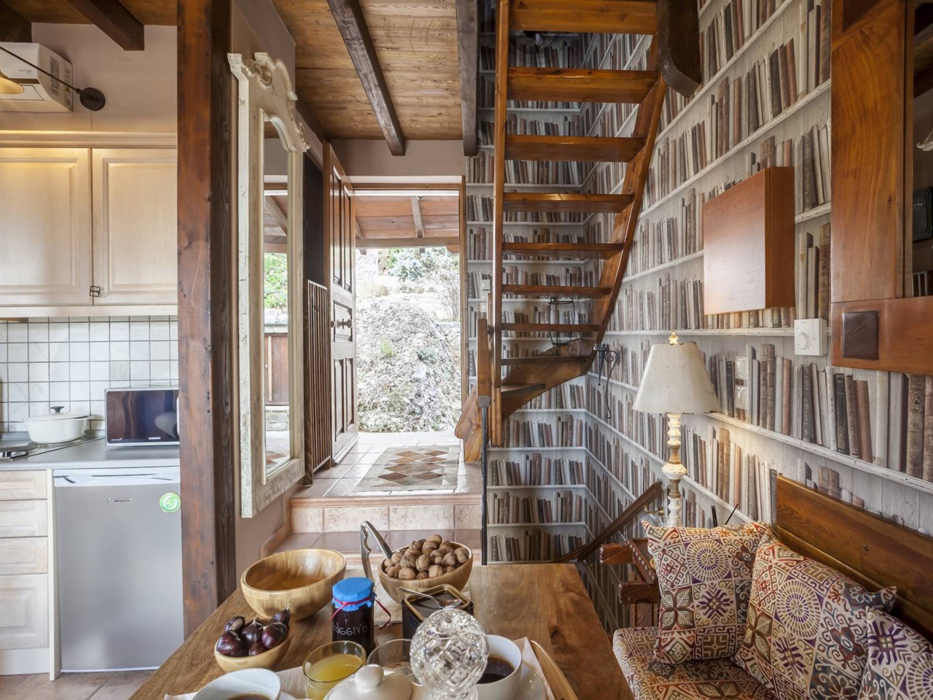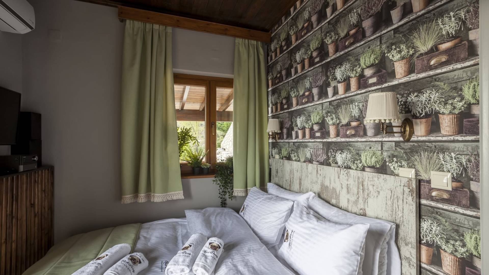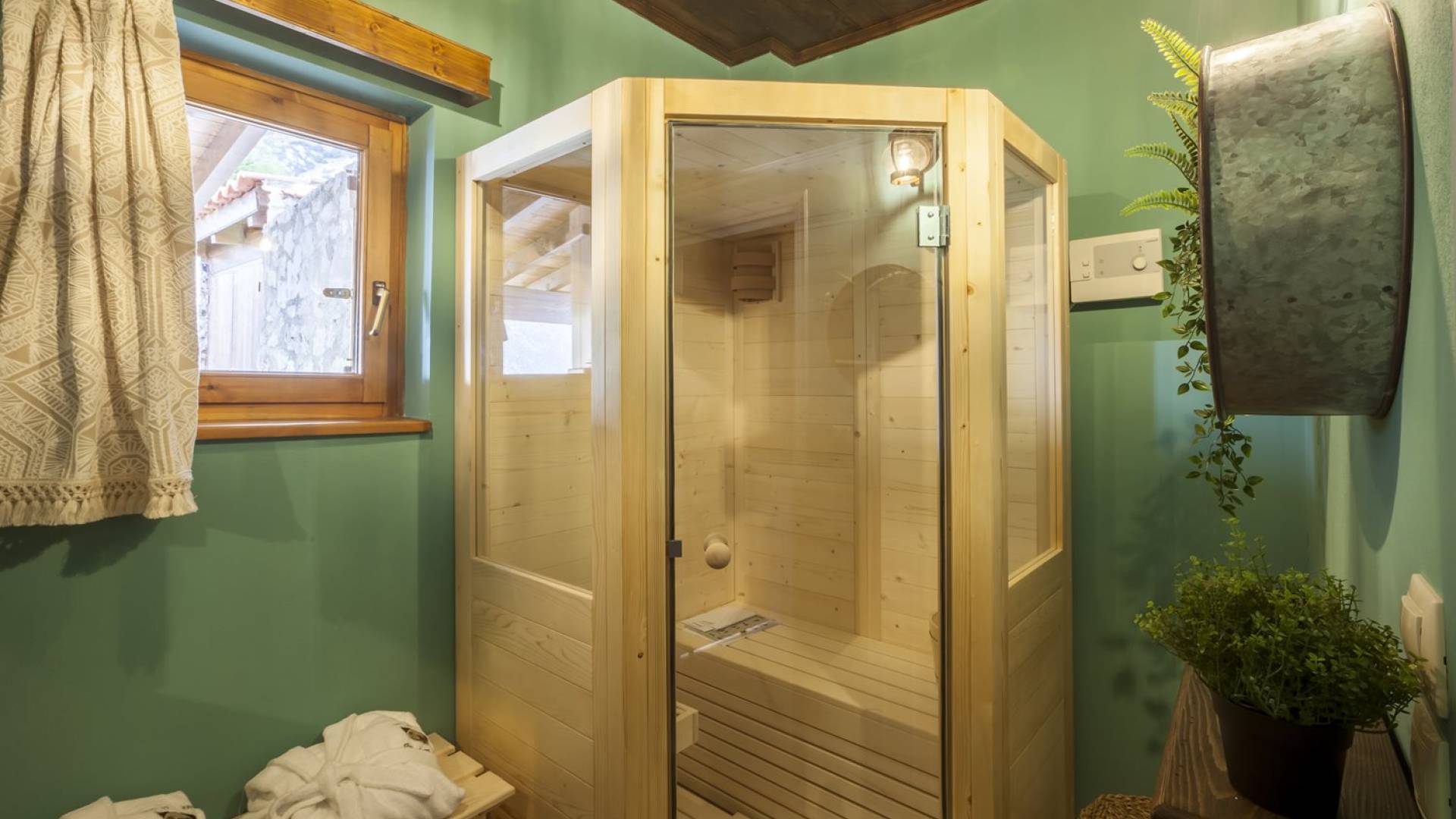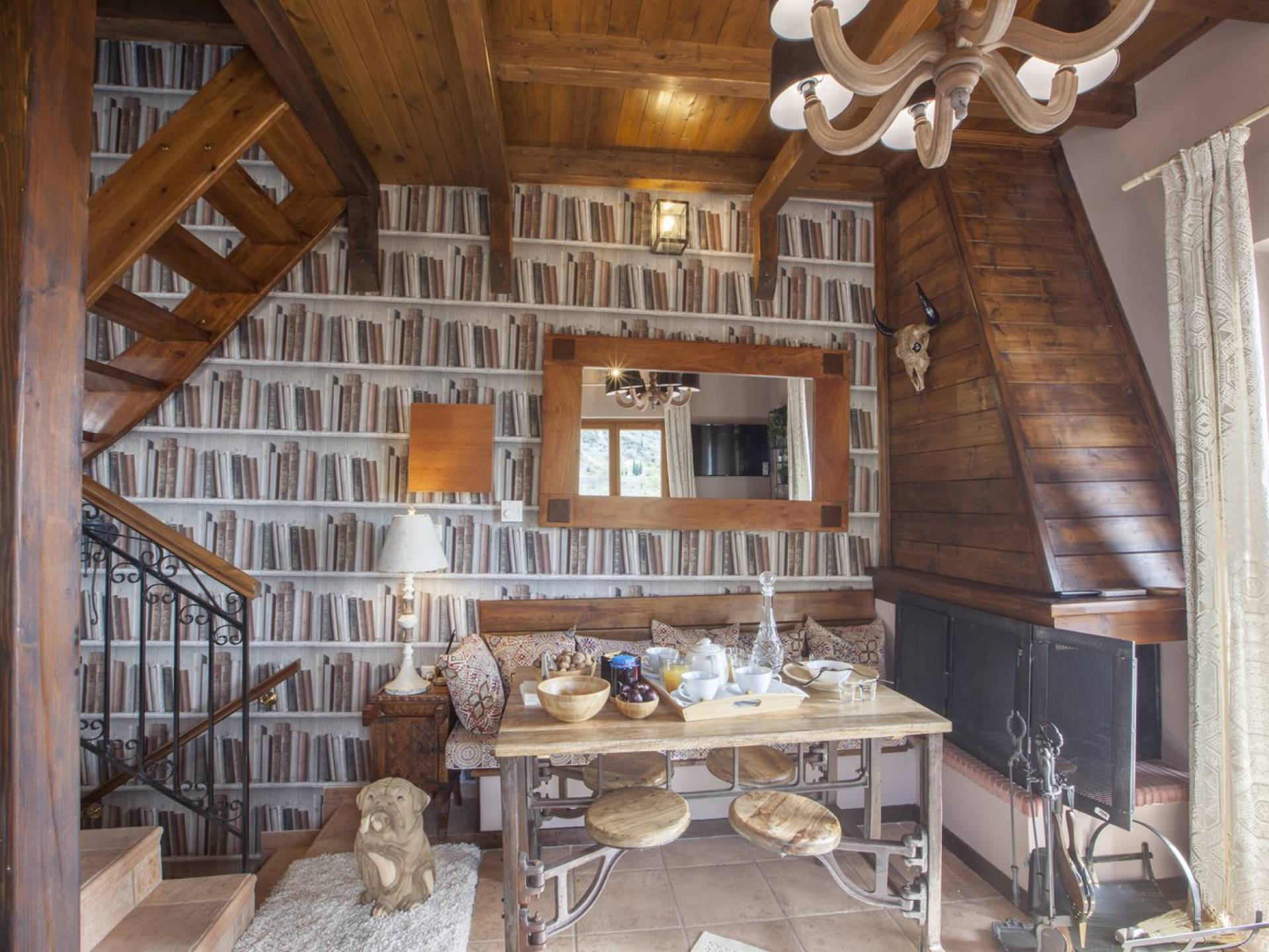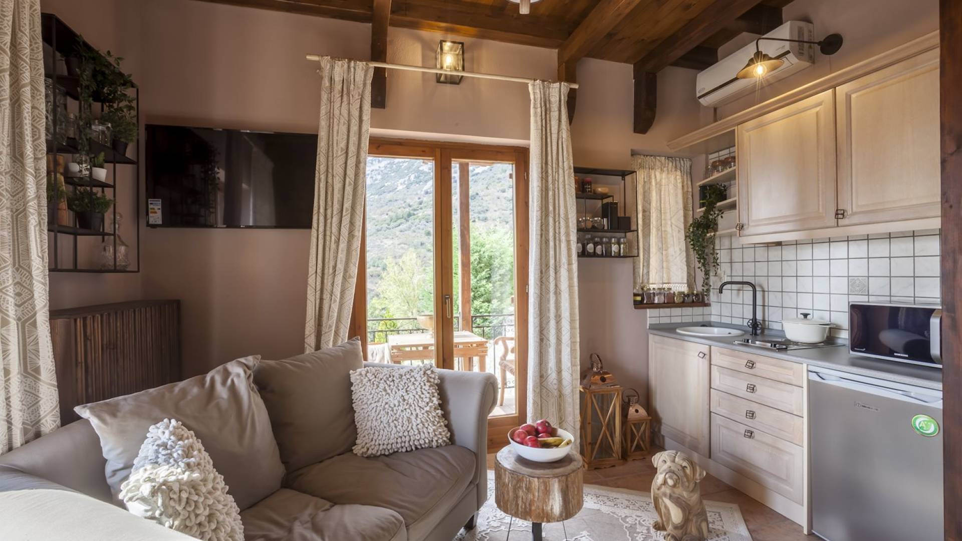 Η θέα από τα μπαλκόνια και τη βεράντα κόβει την ανάσα. Βρίσκεσαι σε υψόμετρο 900+ μέτρων και είναι σαν να απολαμβάνεις τον ήλιο και τα σύννεφα από πρώτη θέση. Η διακόσμηση είναι ιδιαίτερα εκλεπτυσμένη με την ενοχλητική πολυτέλεια που προκαλεί ζεστασιά και φινέτσα. Το σπίτι είναι εξοπλισμένο με hi-fi, τηλεοράσεις τελευταίου τύπου, ηλεκτρική κουζίνα, φούρνο μικροκυμάτων, κλιματισμό, τζάκι, τοστιέρα, μπόιλερ και όλων των ειδών τα μαγειρικά σκεύη, σάουνα και καμπίνα υδρομασάζ για όσους αναζητούν χαλάρωση και αποτοξίνωση 100%.