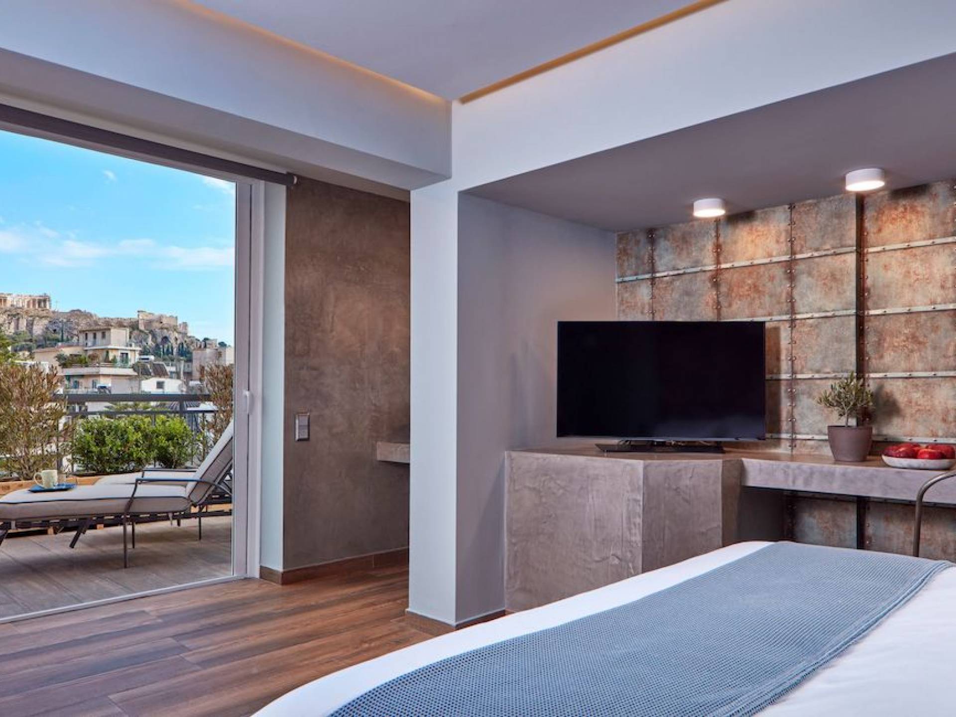 Το Acropolis Loft είναι μια deluxe σουίτα με θέα στην ακρόπολη (25m2/270ft2 - χωρισμένο σε δύο επίπεδα) μπορεί να φιλοξενήσει έως 2 άτομα, διαθέτει κρεβάτι king size, γραφείο, μονό νιπτήρα, ντους και Smart TV 40 ιντσών με μπαλκόνι και θέα στην ακρόπολη. Δωρεάν WiFi, εσπρέσο και τσάι. Μοναδικά διακοσμημένο με χειροποίητα έπιπλα και επιλεγμένα διακοσμητικά αντικείμενα, αυτή η σοφίτα σε χωριστά επίπεδα ανοίγει σε μια ευρύχωρη βεράντα με εκπληκτική θέα στην Ακρόπολη. Οι επισκέπτες μπορούν επίσης να απολαύσουν μια μοναδική θέα στην Ακρόπολη από το κρεβάτι τους.